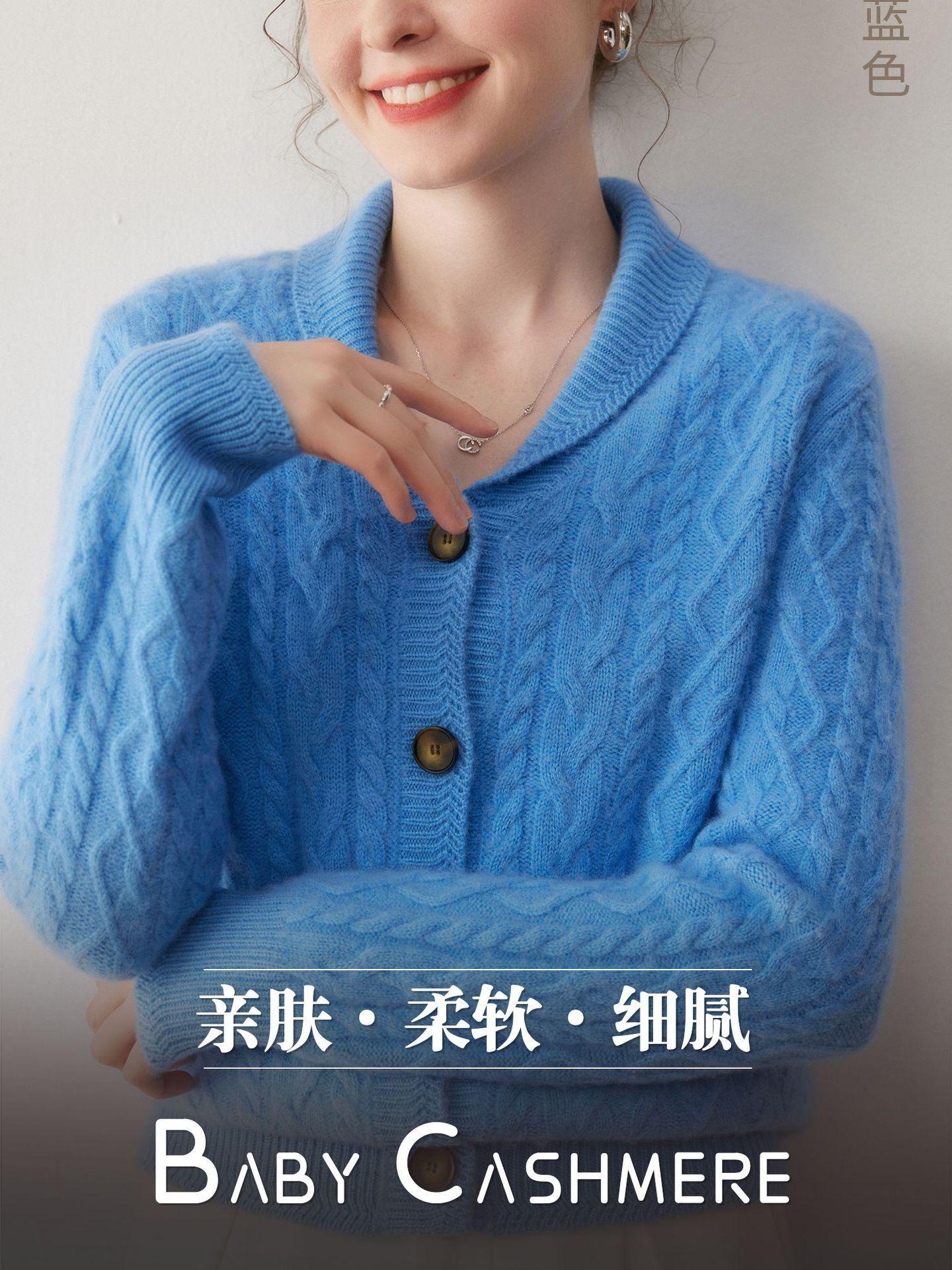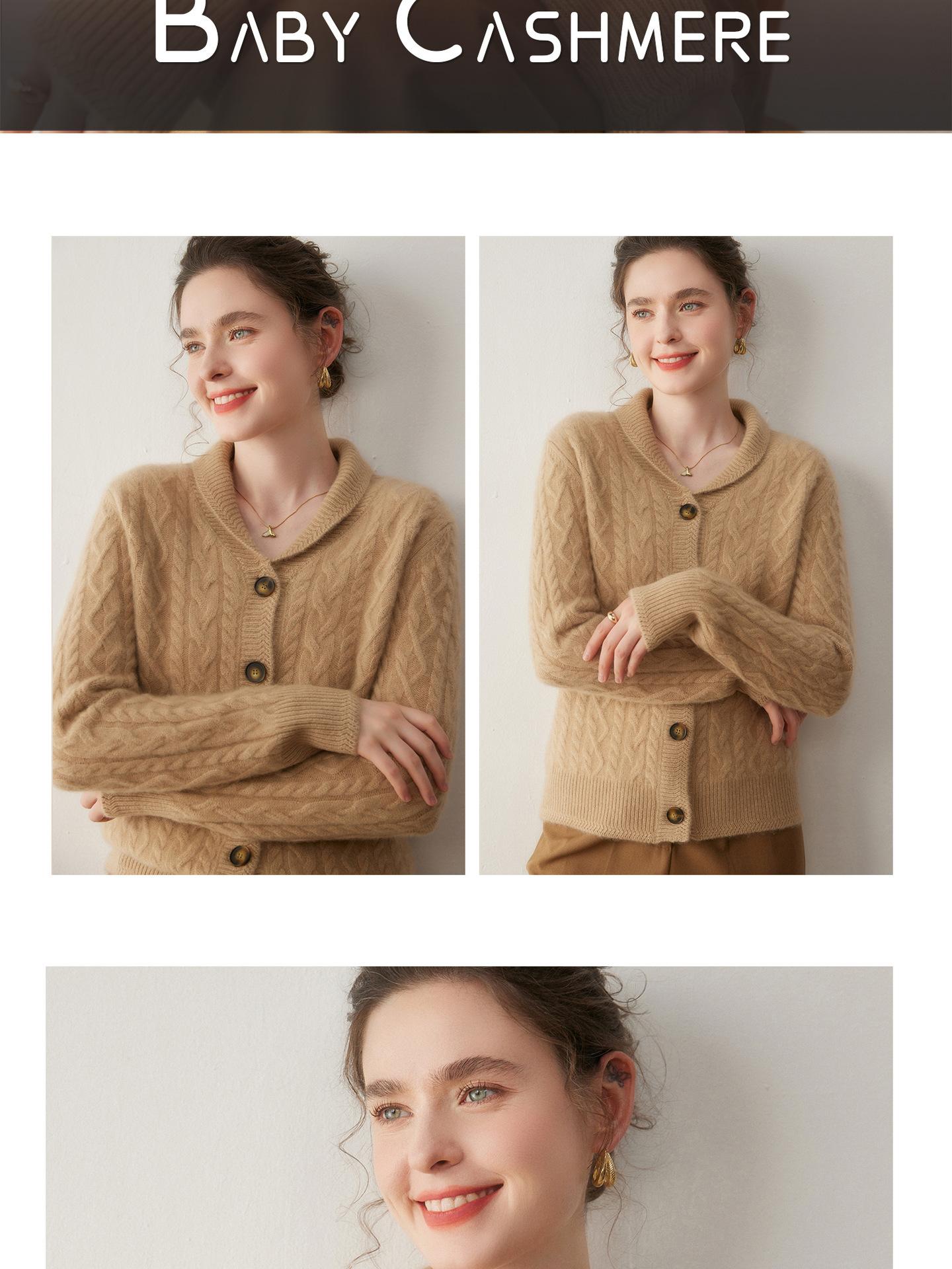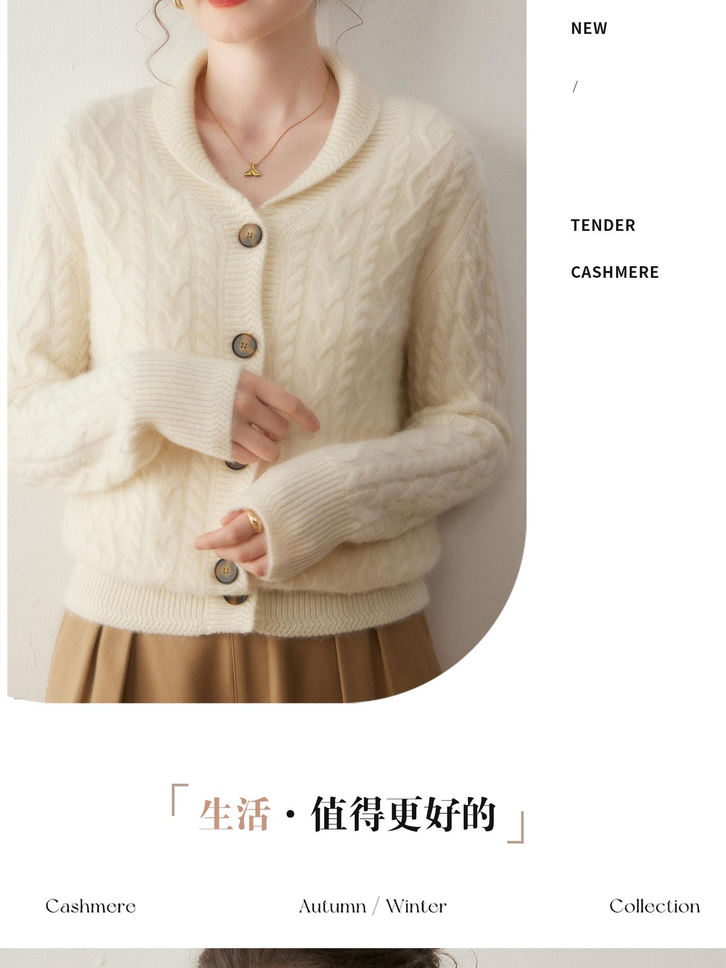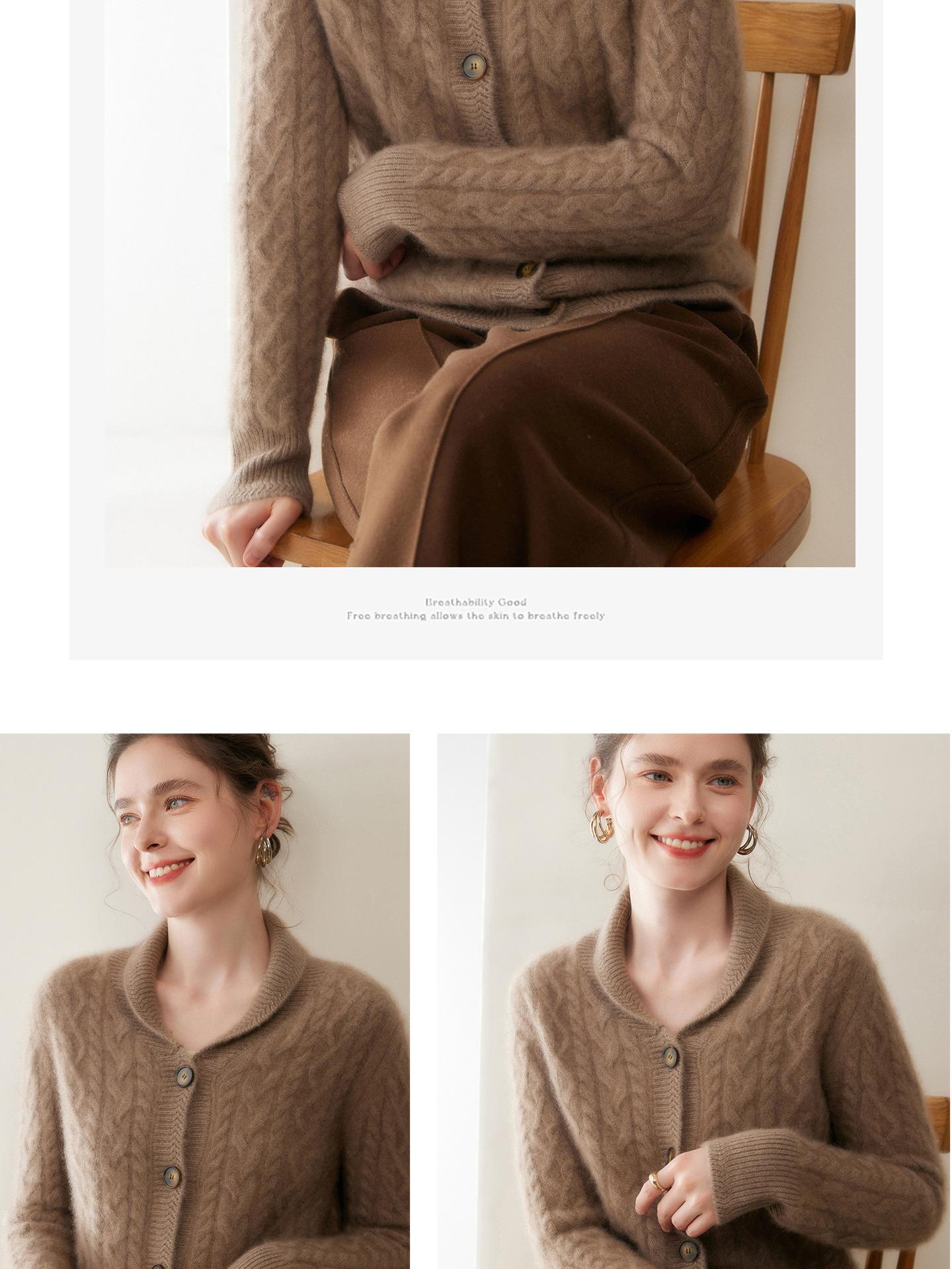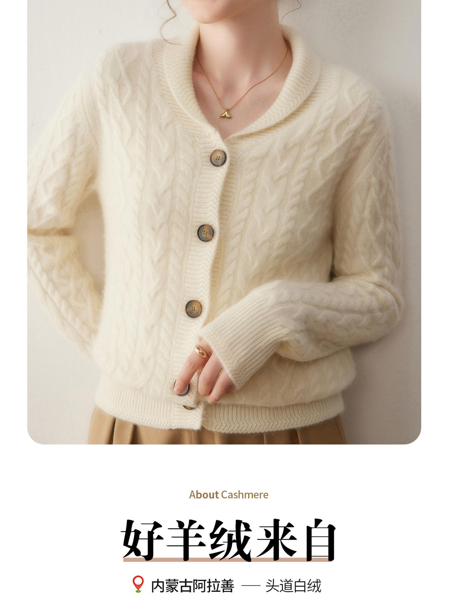 Cárdigan de Cachemira Otoño e Invierno Nuevo Chaleco para Mujer Cuello Chal Suelto Camisa Básica Estilo Elegante Tejido de Cable Abrigo Corto con Temperamento
