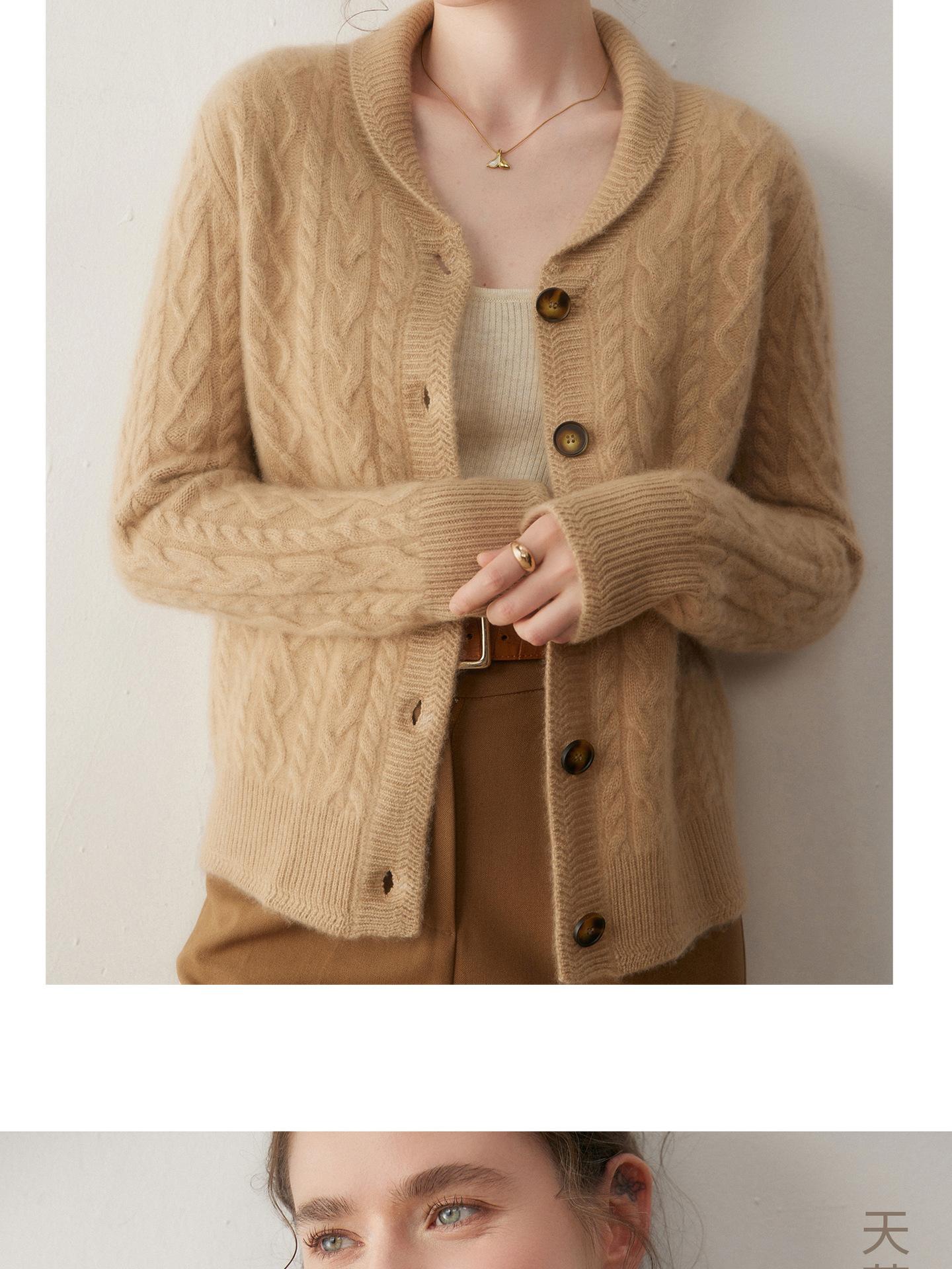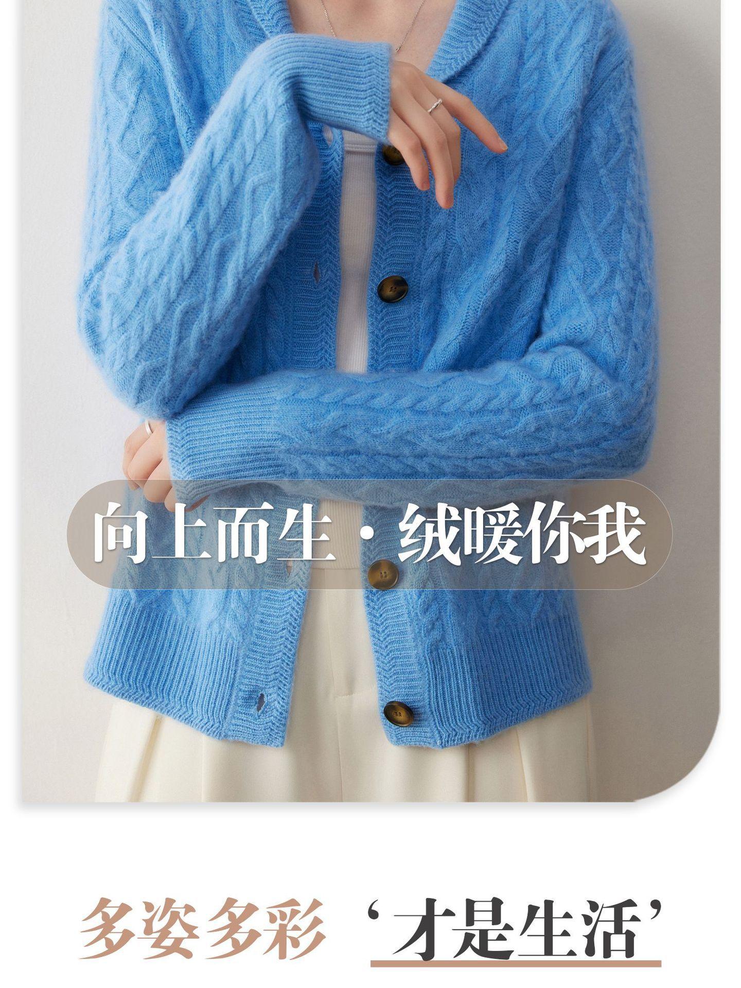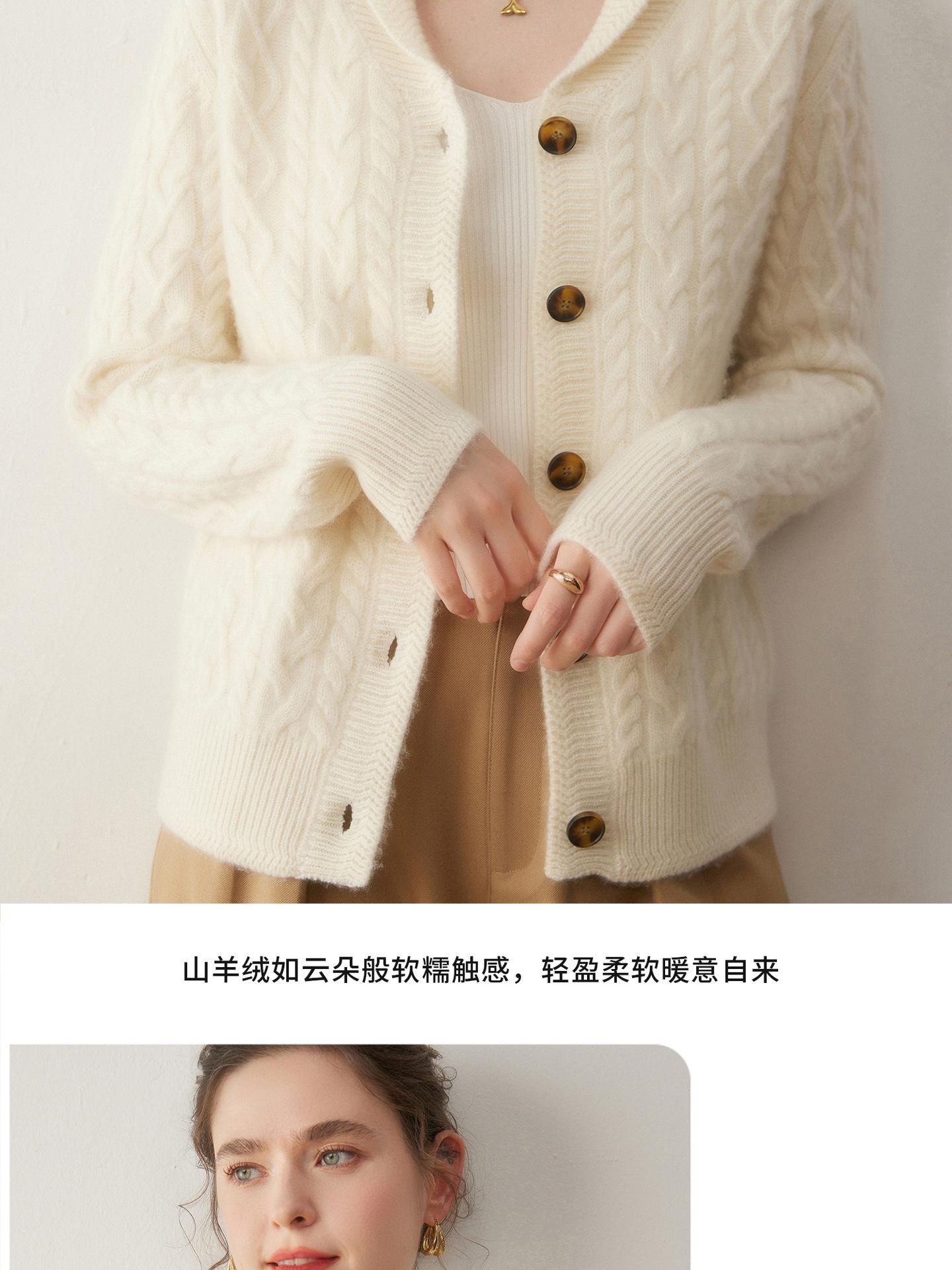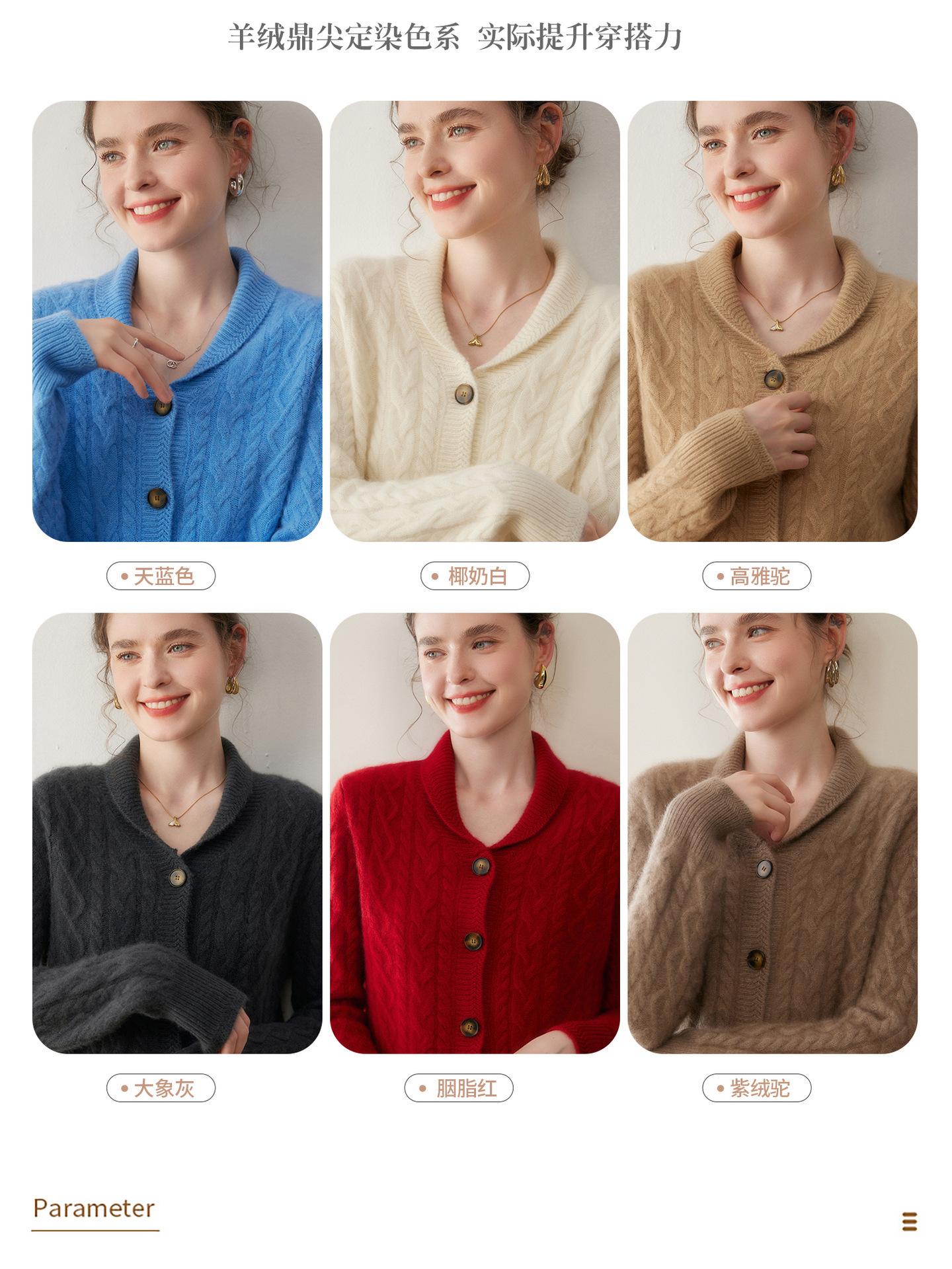 Cárdigan de Cachemira Otoño e Invierno Nuevo Chaleco para Mujer Cuello Chal Suelto Camisa Básica Estilo Elegante Tejido de Cable Abrigo Corto con Temperamento