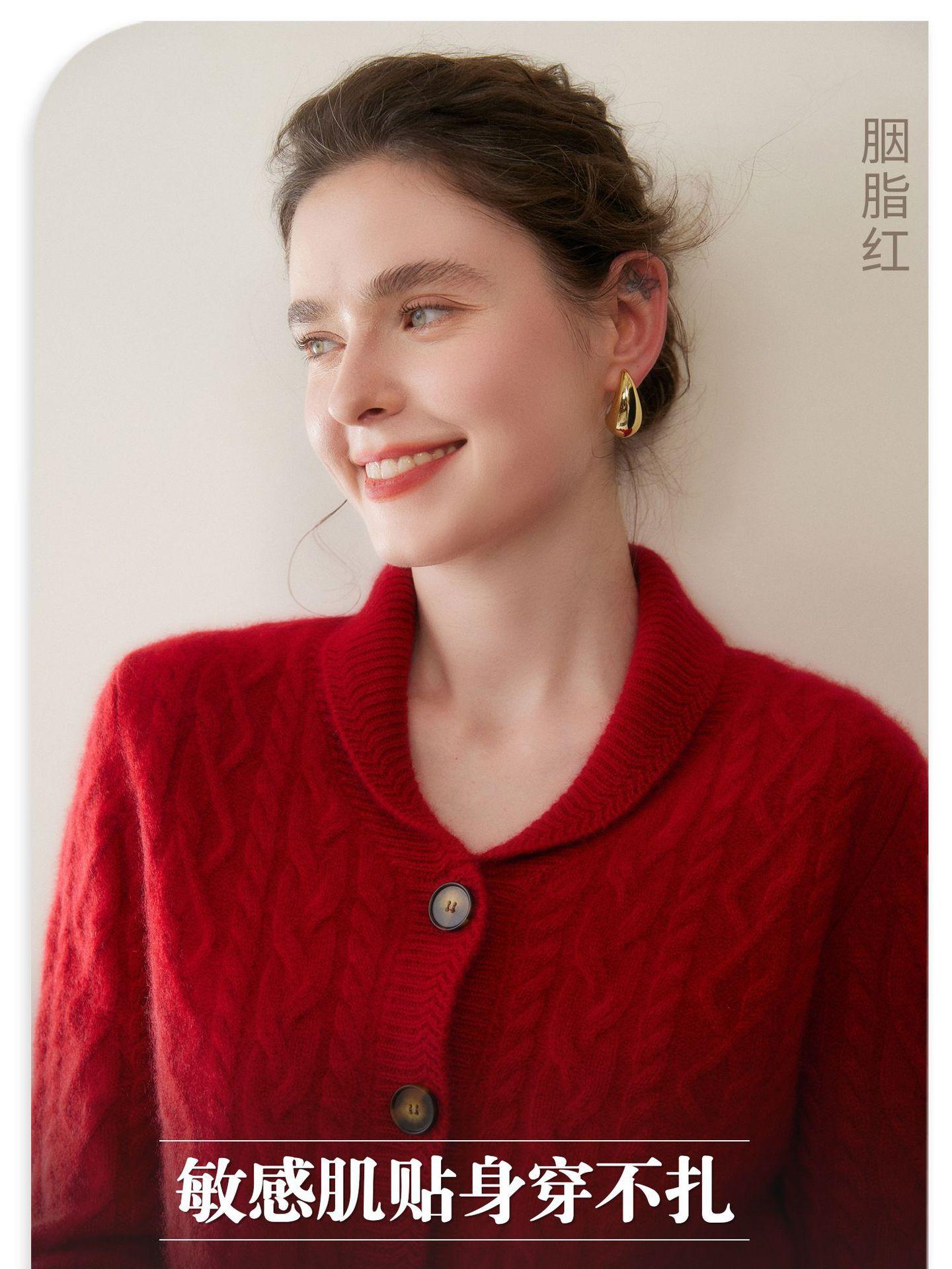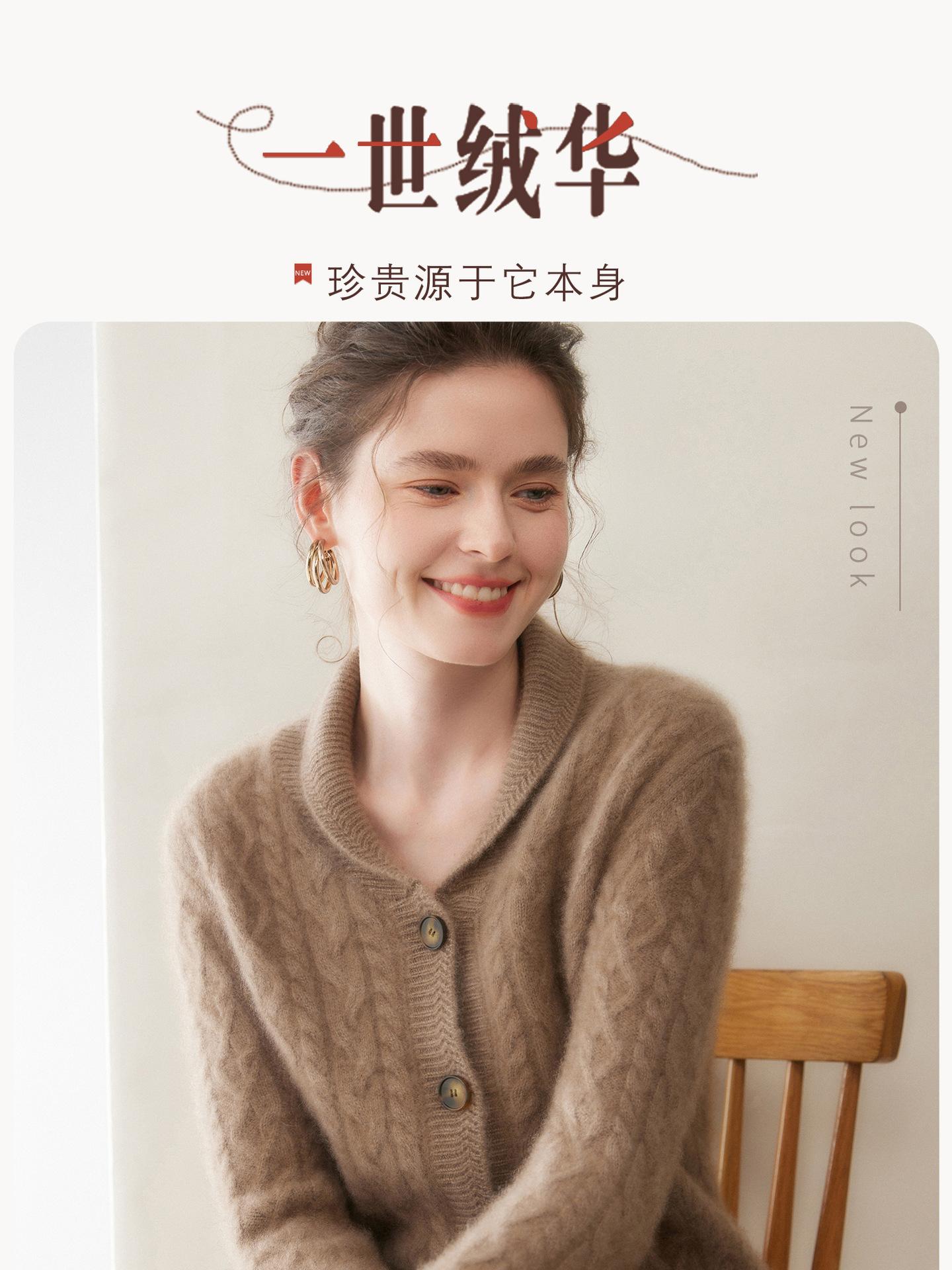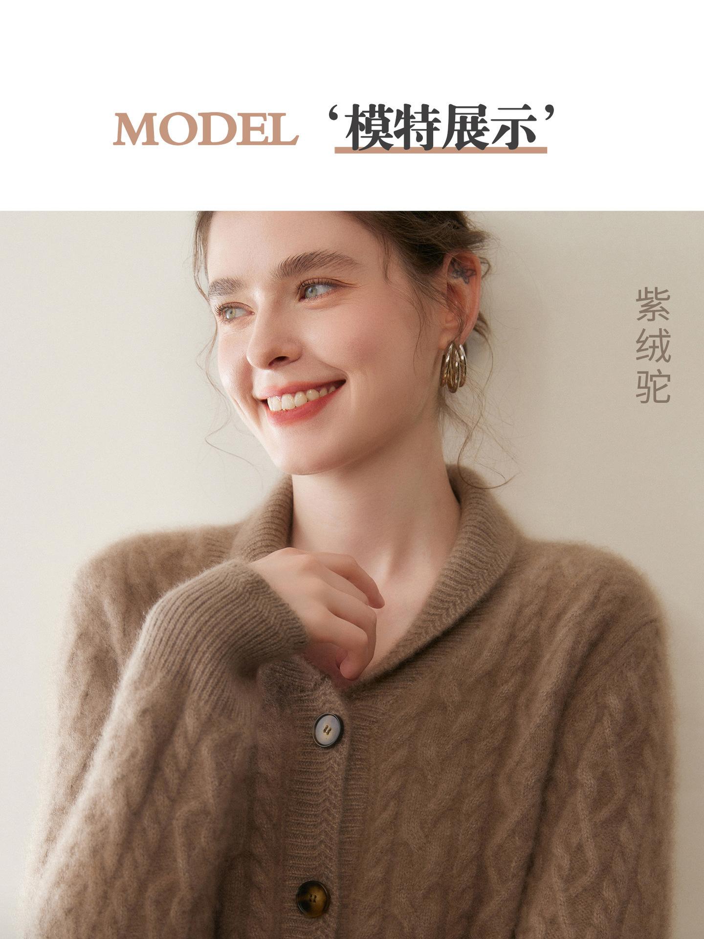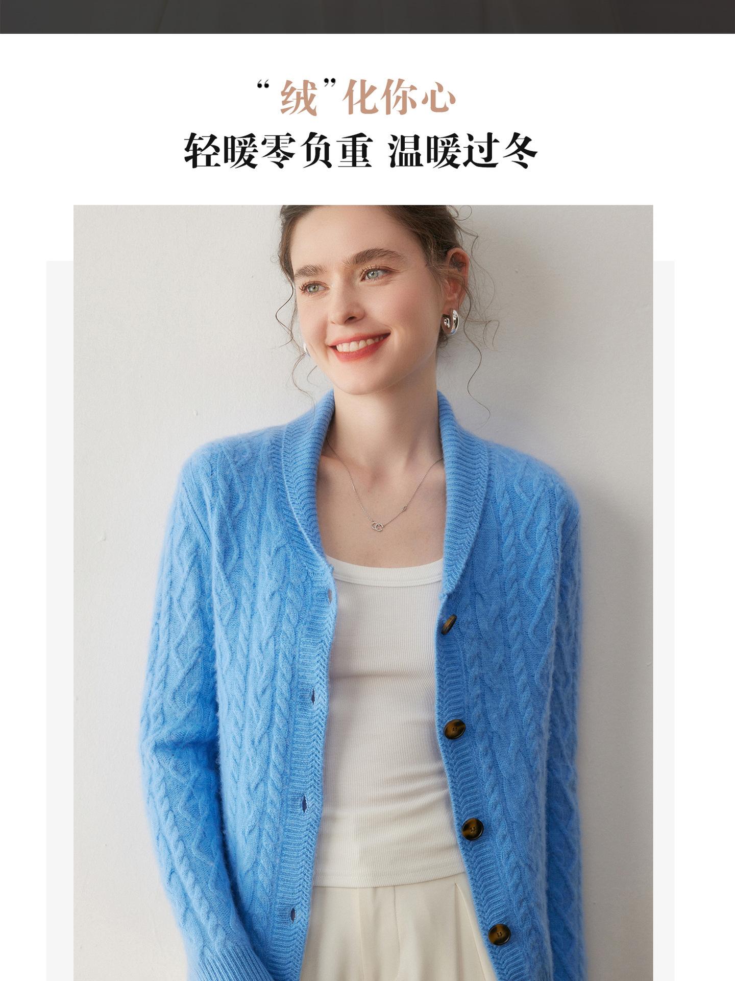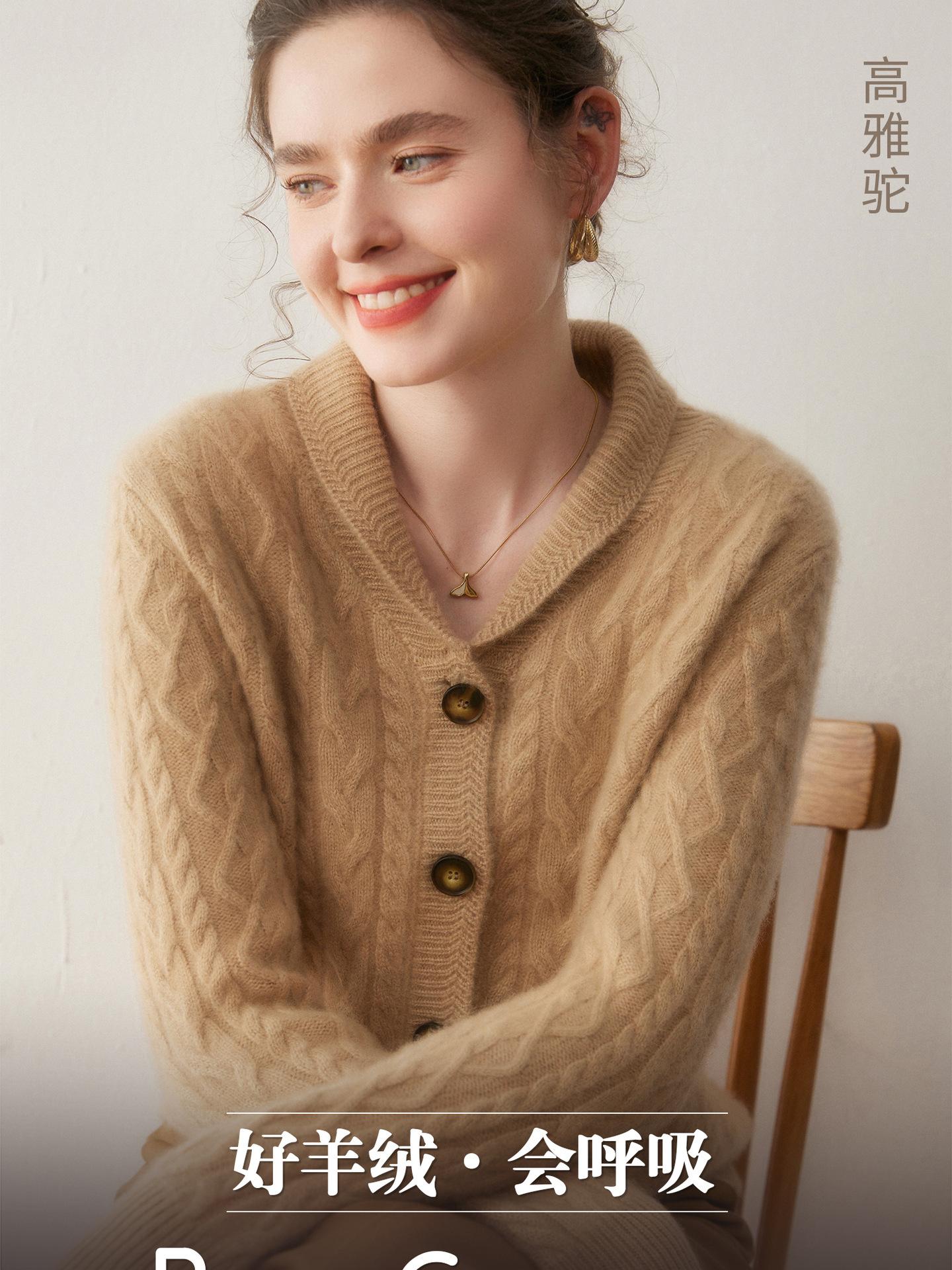 Cárdigan de Cachemira Otoño e Invierno Nuevo Chaleco para Mujer Cuello Chal Suelto Camisa Básica Estilo Elegante Tejido de Cable Abrigo Corto con Temperamento