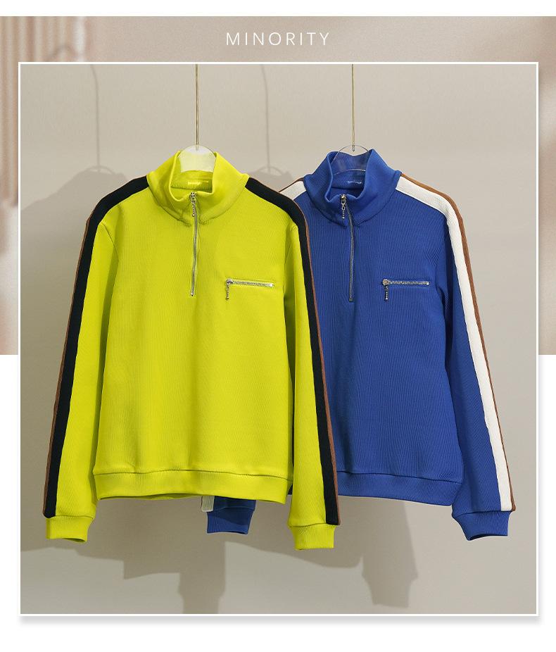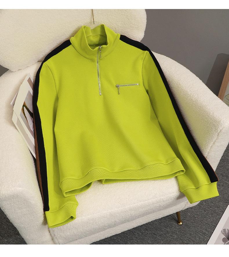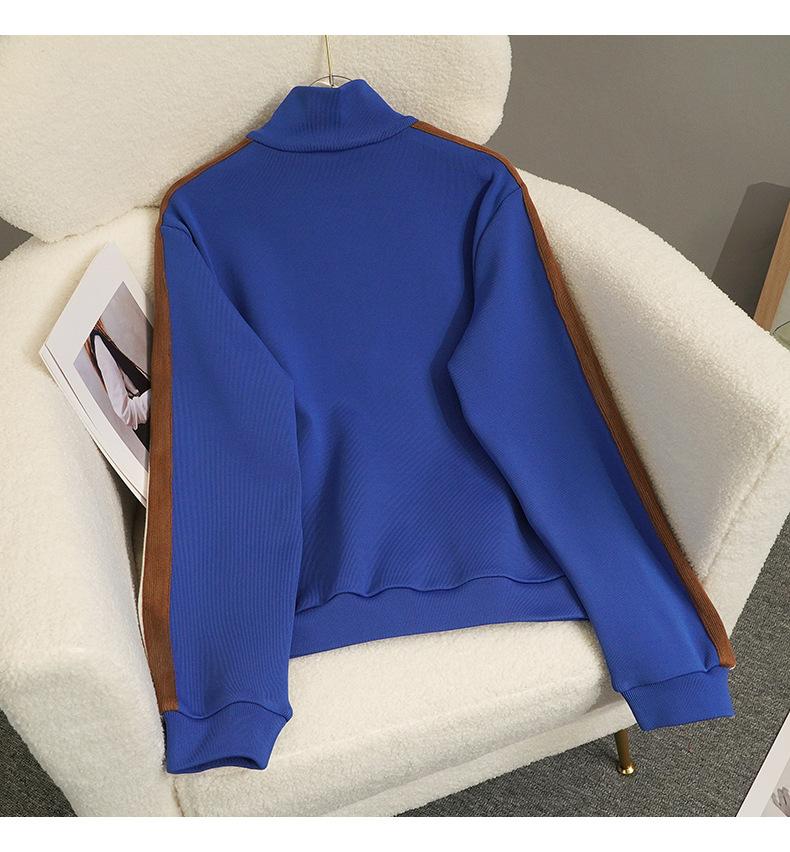Liquidación estilo francés 2023 otoño nuevo estilo deportivo abrigo moderno cuello alto con cremallera suéter casual para mujer