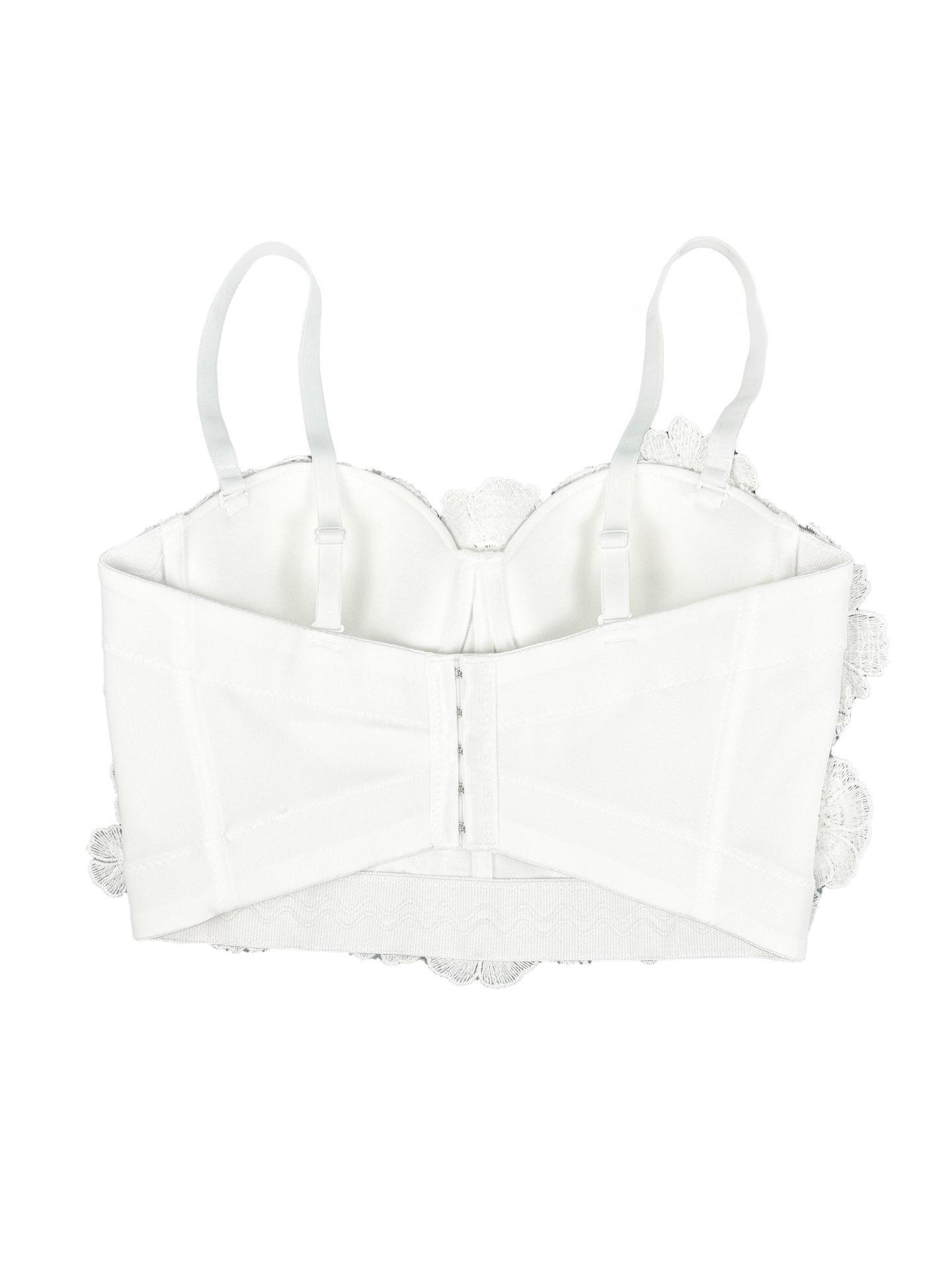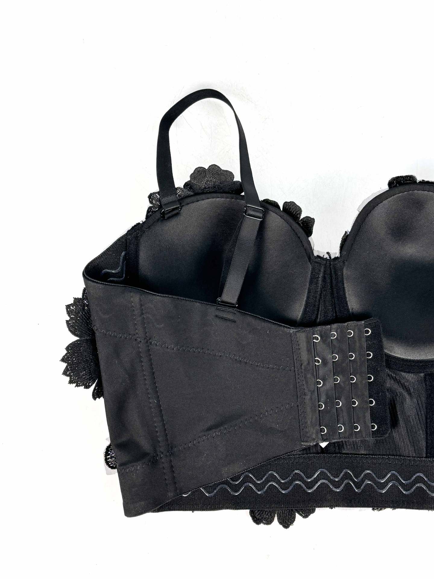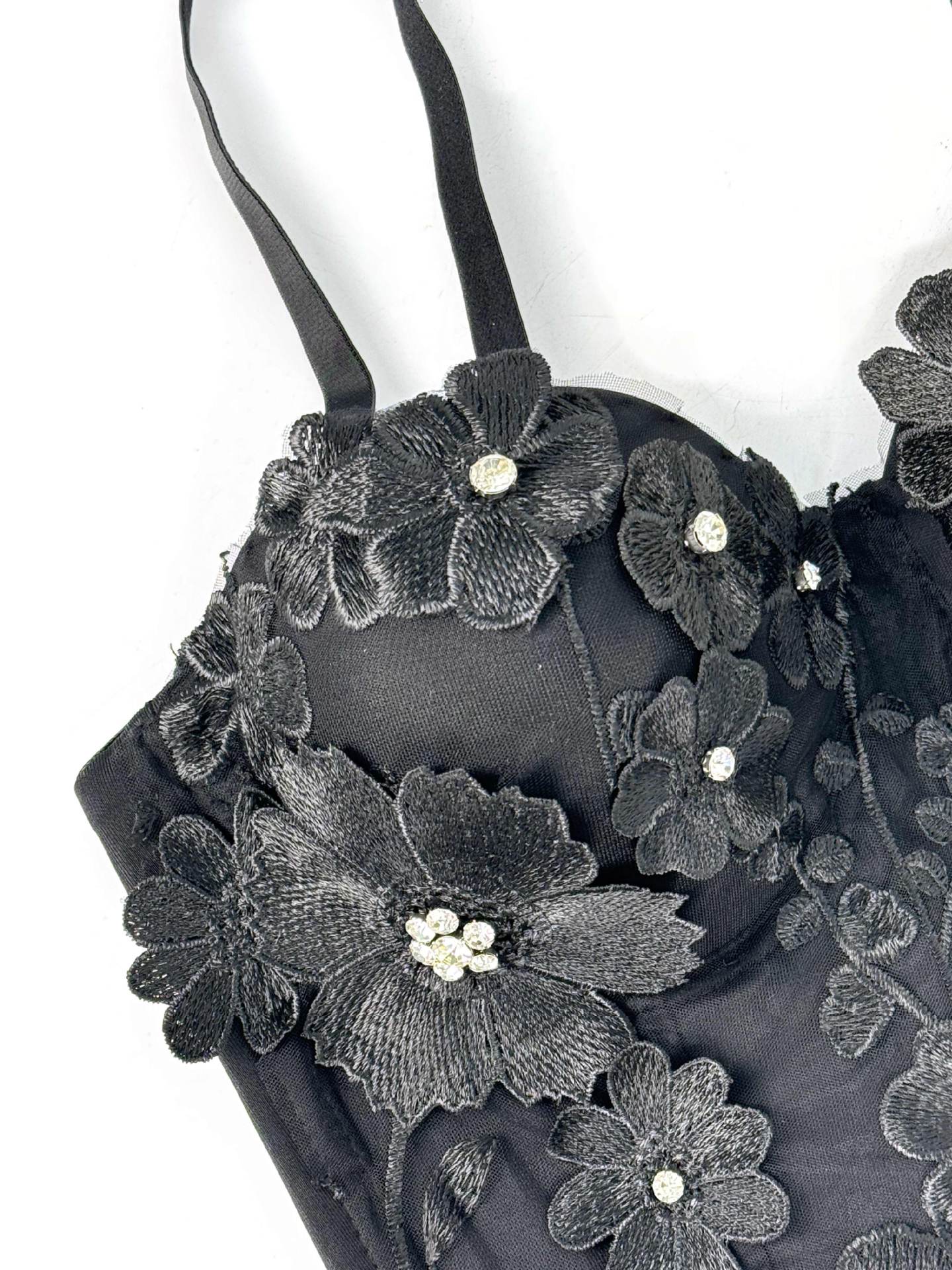 Diseño Original Flor Tridimensional Diamante Moldeador de Cuerpo Strapless Top Ballena Corto Chanel Tirantes Corsé para Mujer