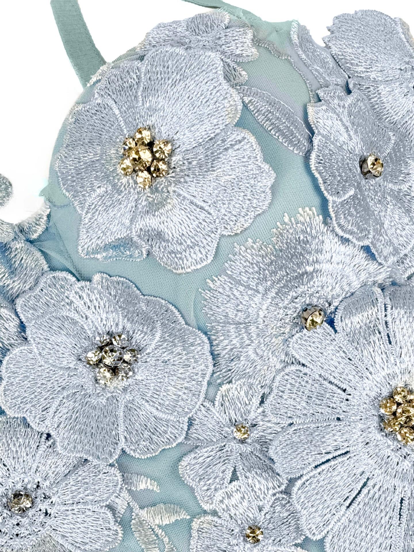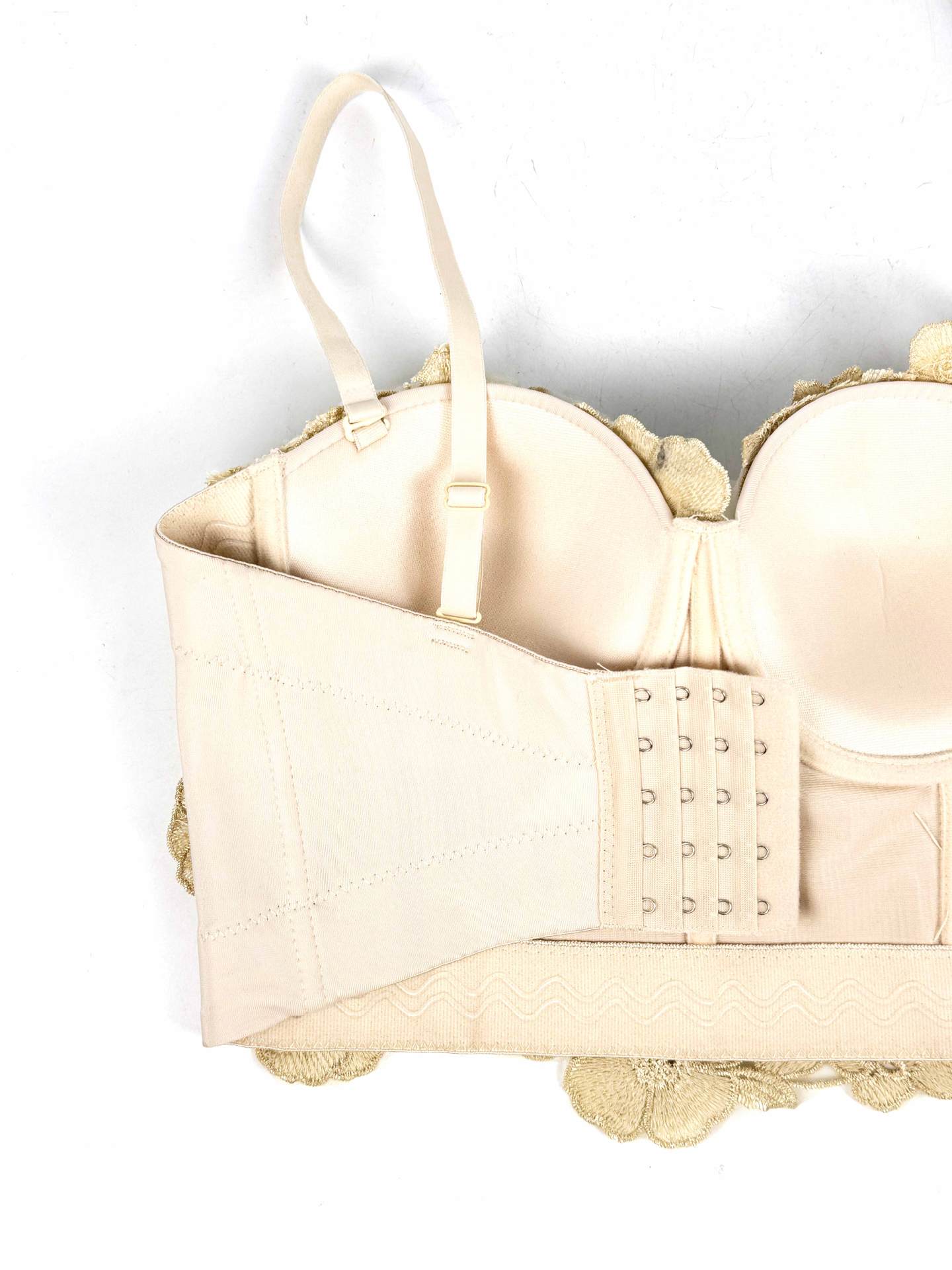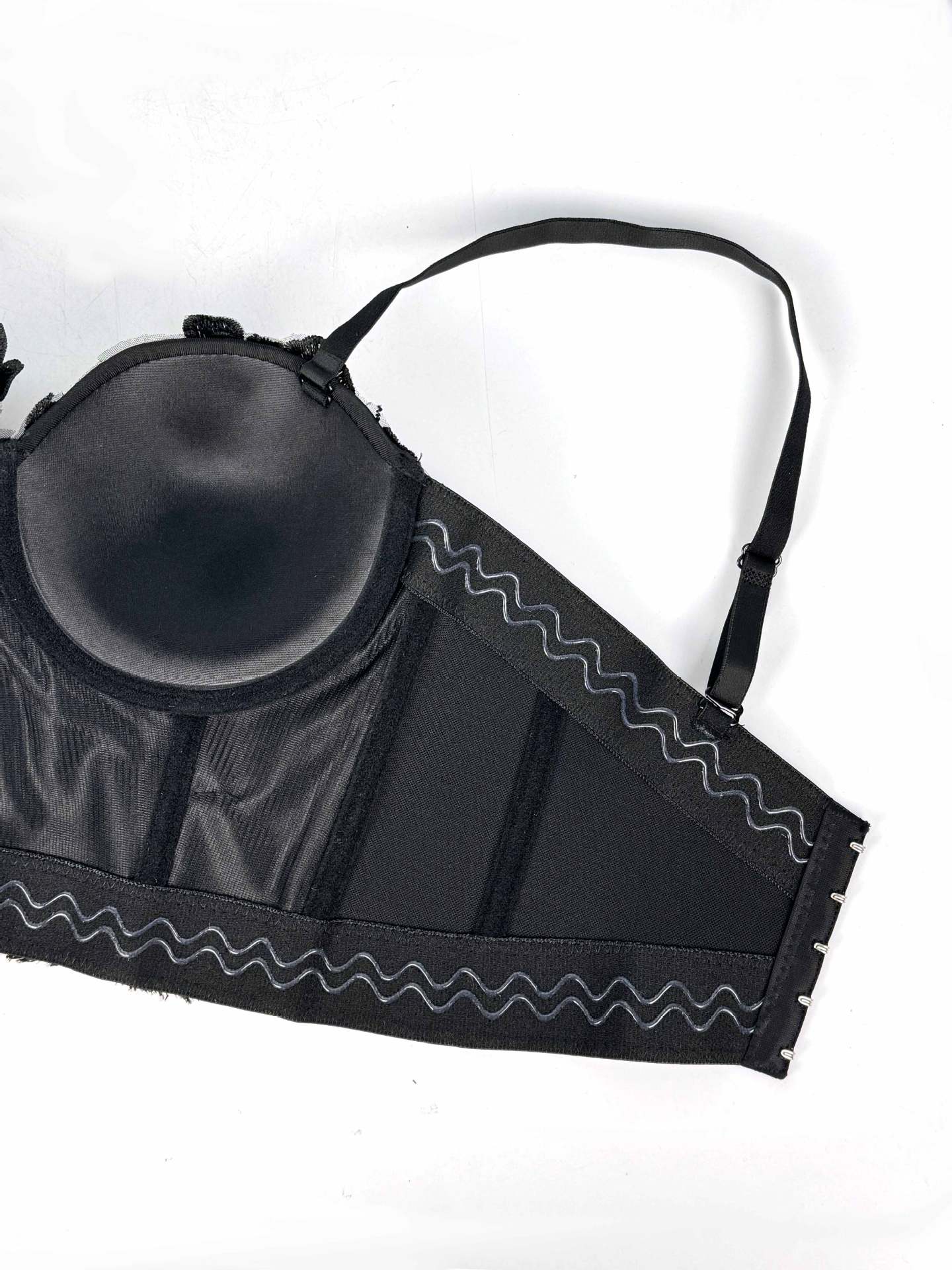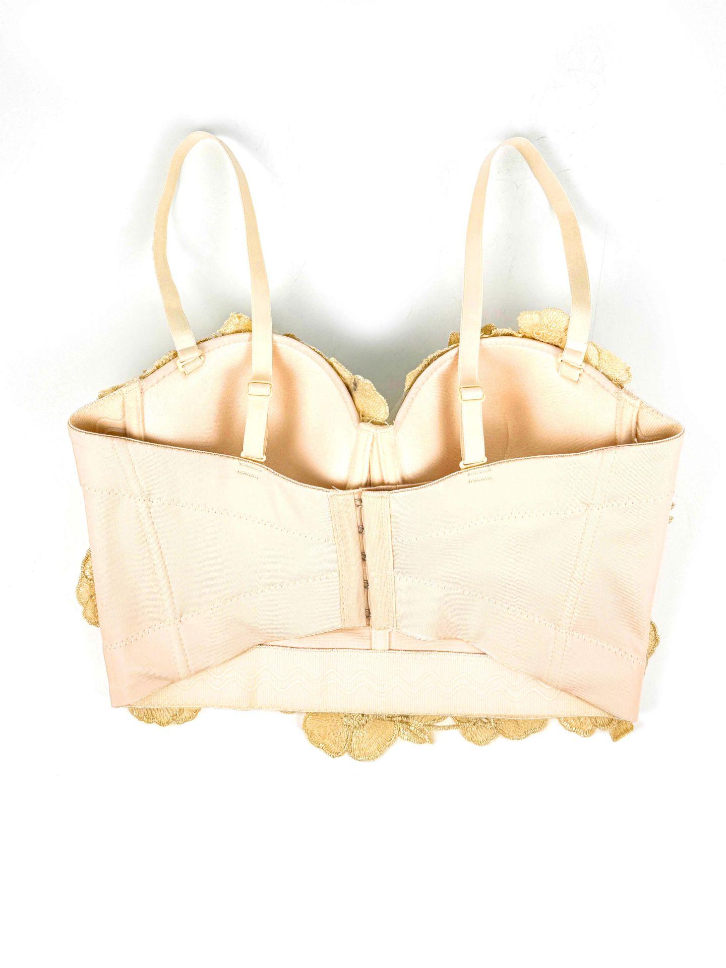 Diseño Original Flor Tridimensional Diamante Moldeador de Cuerpo Strapless Top Ballena Corto Chanel Tirantes Corsé para Mujer
