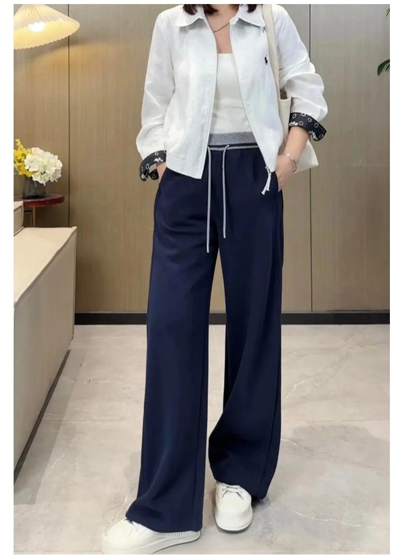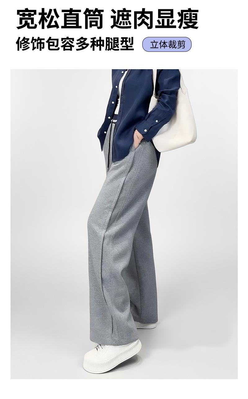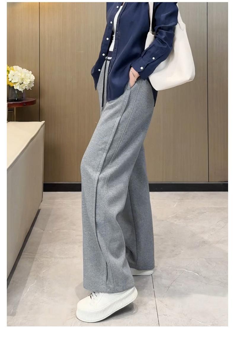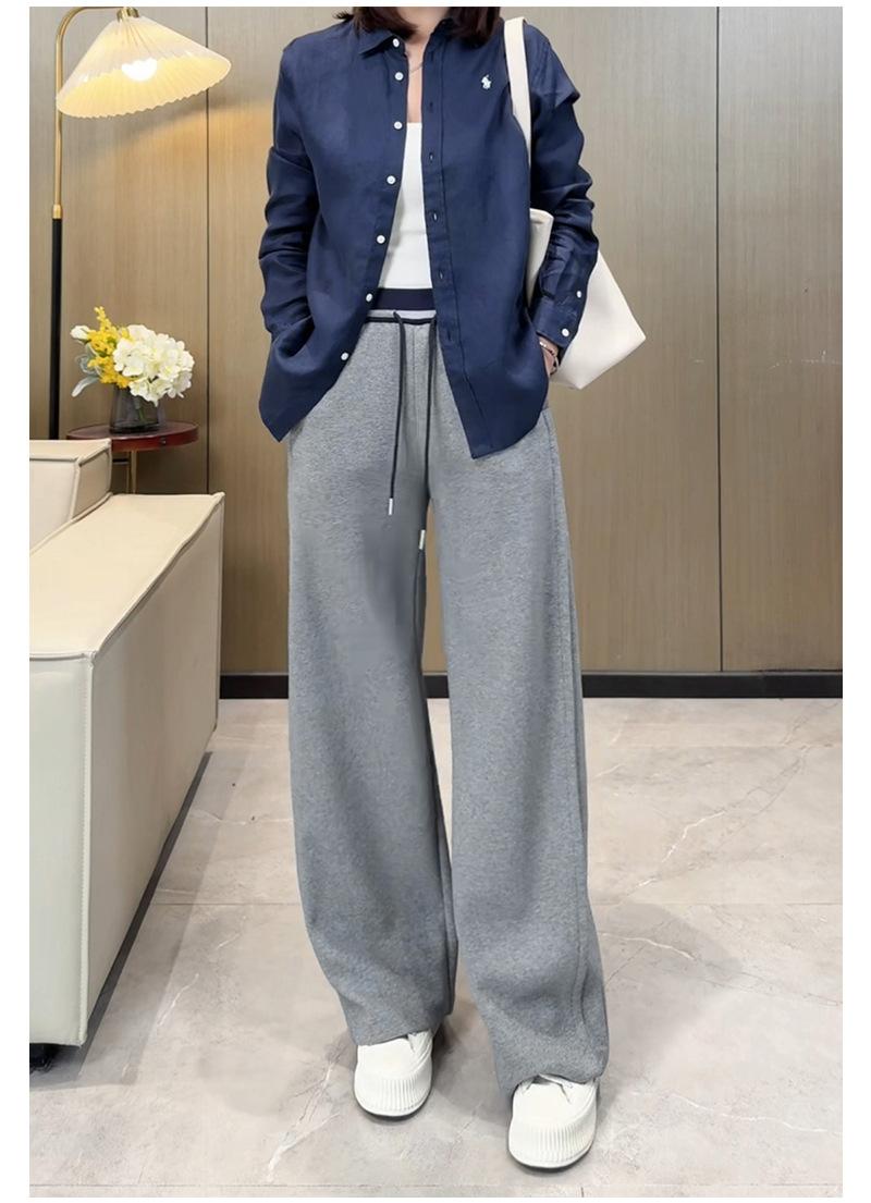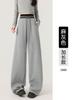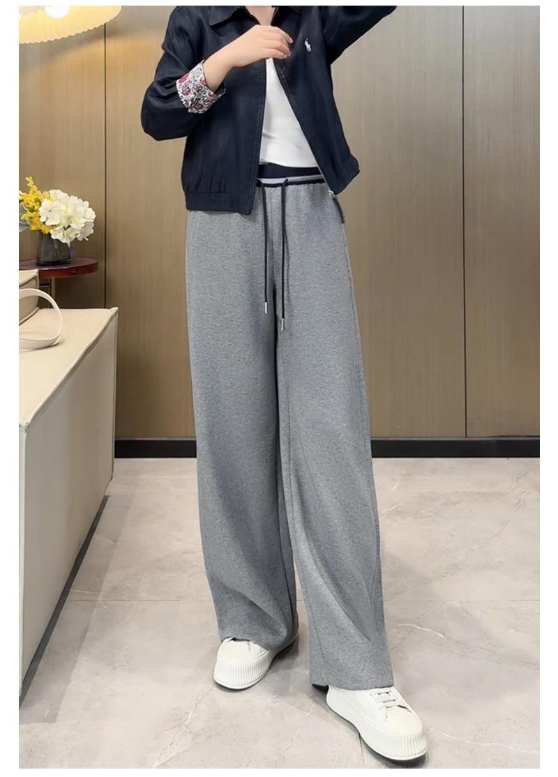 Pantalones grises de pierna ancha para mujer 2025 Otoño/Invierno Nuevo Adelgazante de cintura alta Bloque de color Bordado Casual Deportivo Recto Pantalones de sudadera para mujer