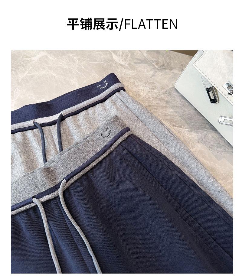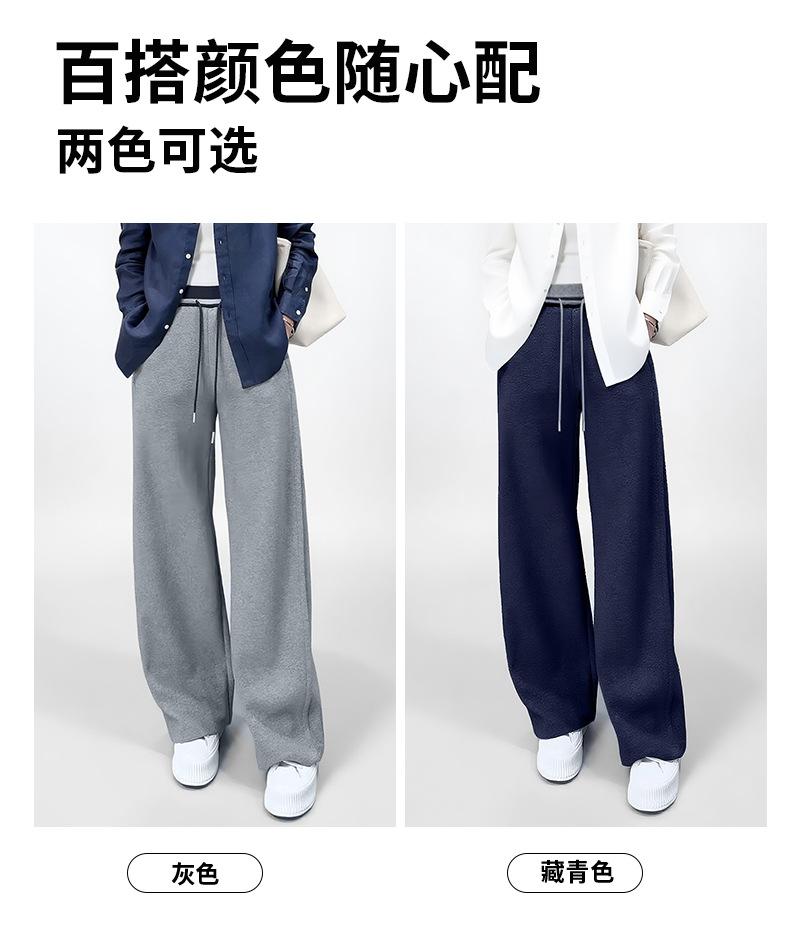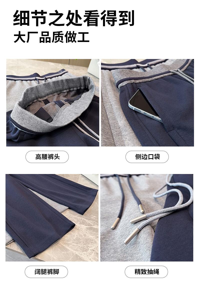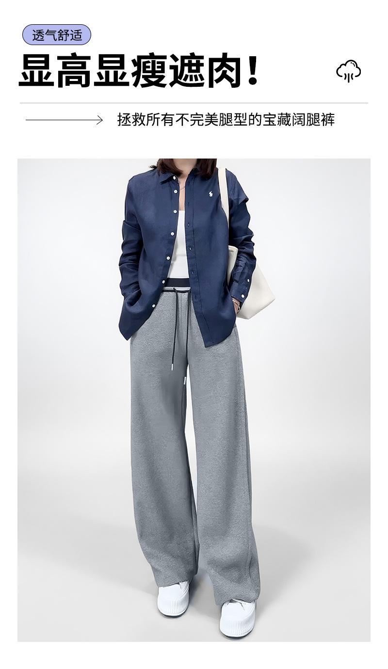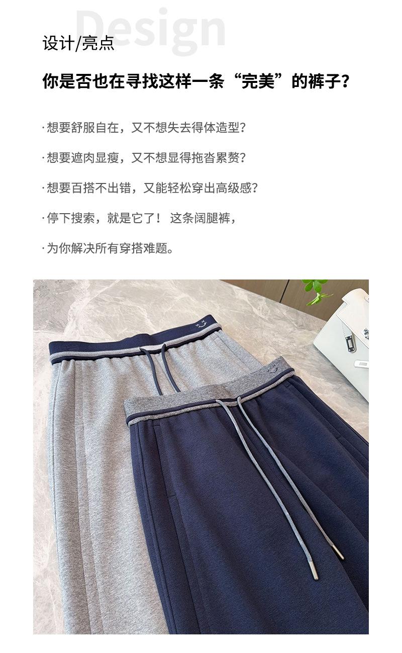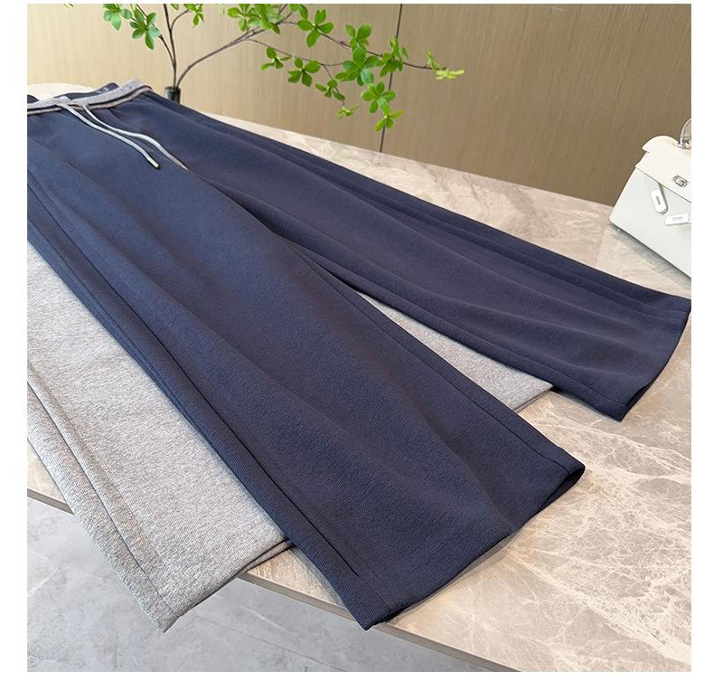 Pantalones grises de pierna ancha para mujer 2025 Otoño/Invierno Nuevo Adelgazante de cintura alta Bloque de color Bordado Casual Deportivo Recto Pantalones de sudadera para mujer