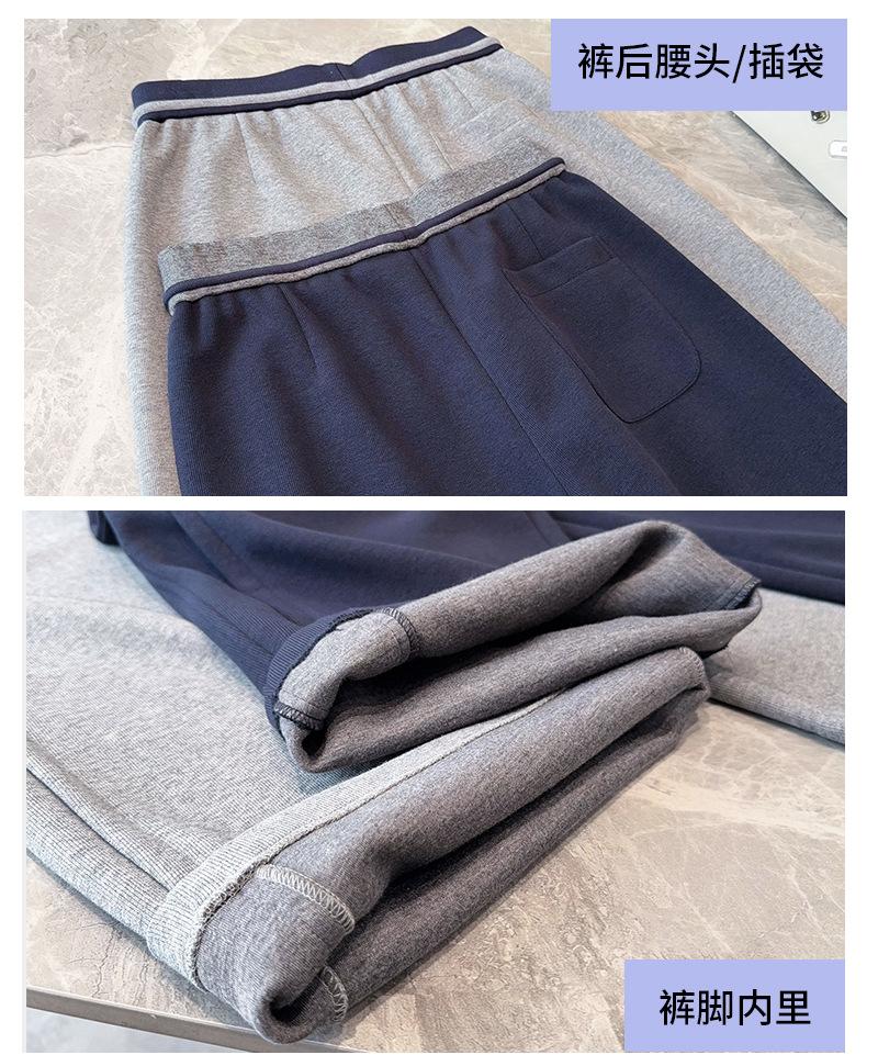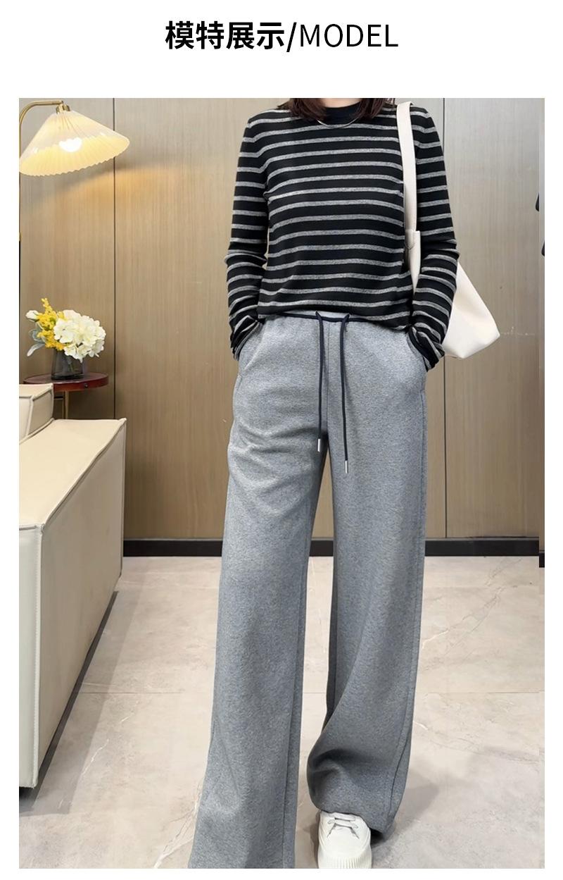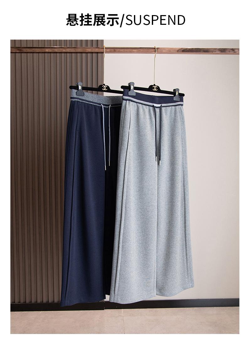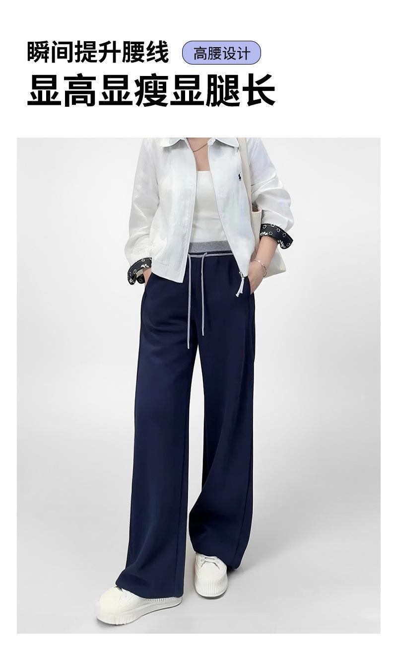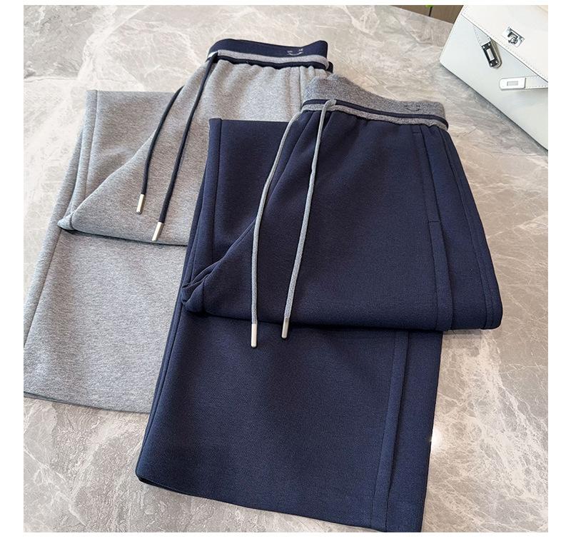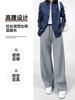 Pantalones grises de pierna ancha para mujer 2025 Otoño/Invierno Nuevo Adelgazante de cintura alta Bloque de color Bordado Casual Deportivo Recto Pantalones de sudadera para mujer