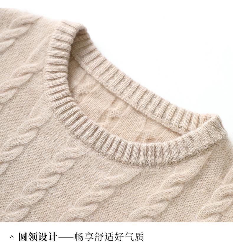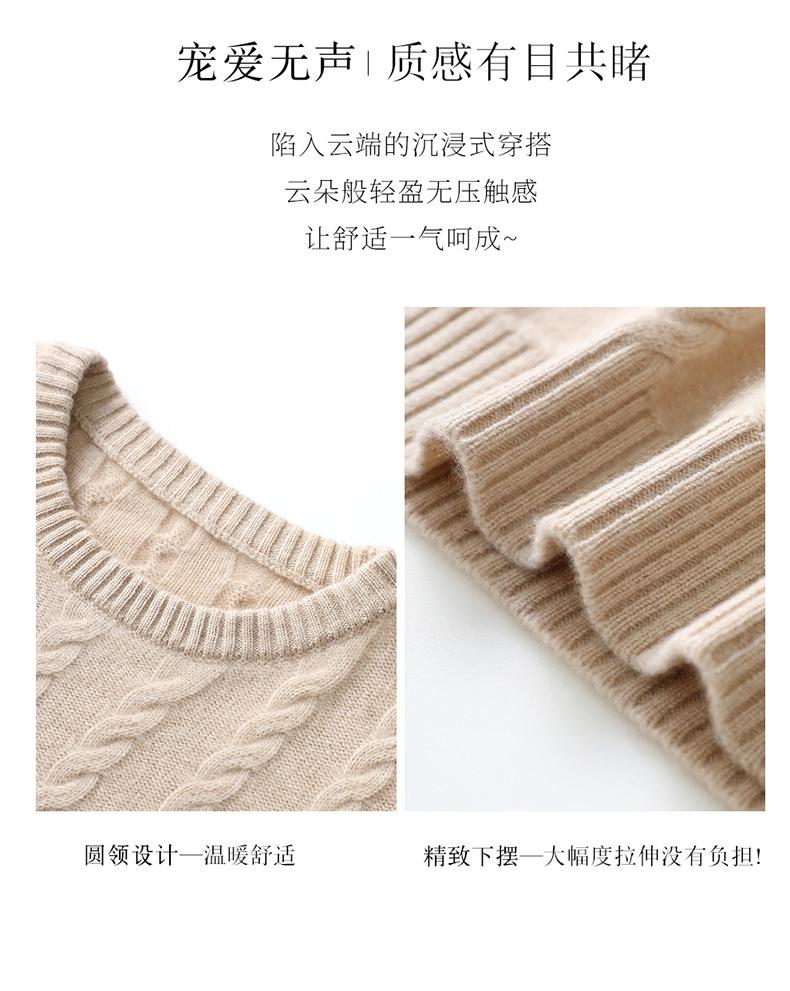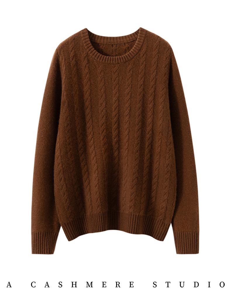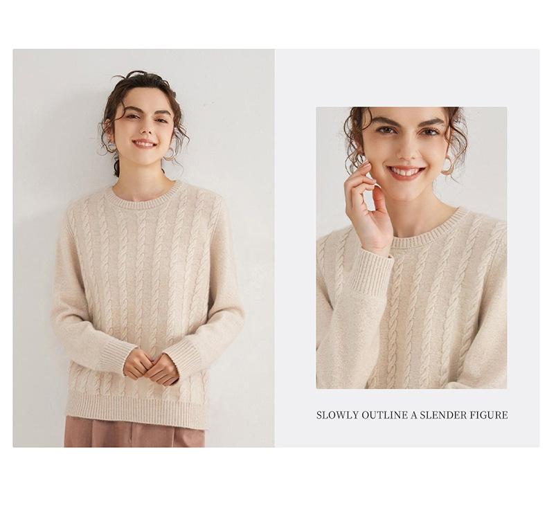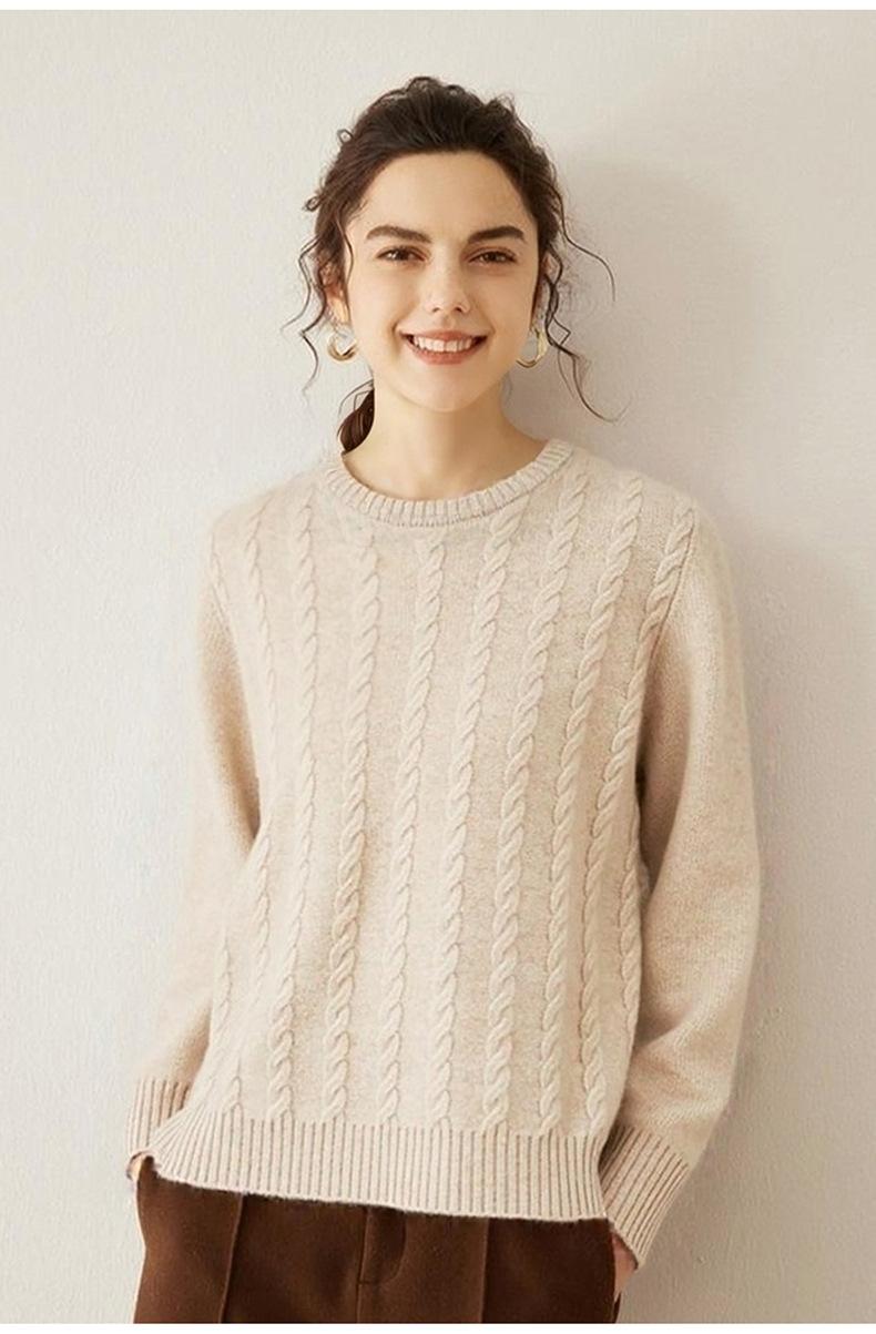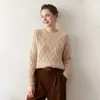 Nuevo Otoño e Invierno Casual Versátil Holgado Tejido de Cable Cuello Redondo Suéter de Cachemira para Mujer 100% Cachemira Pura