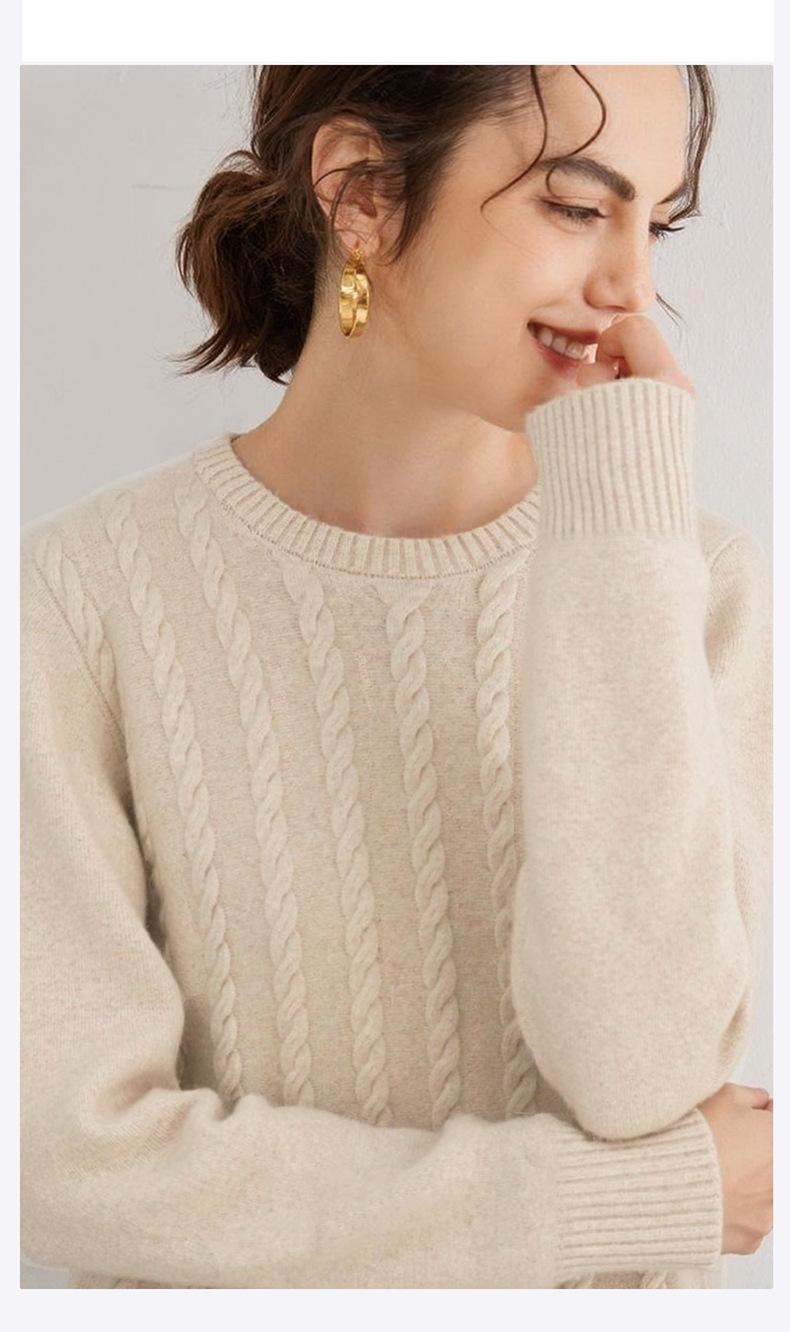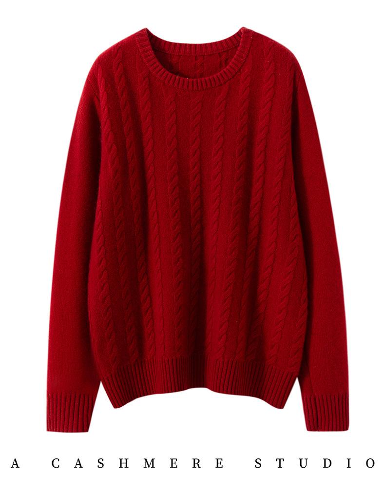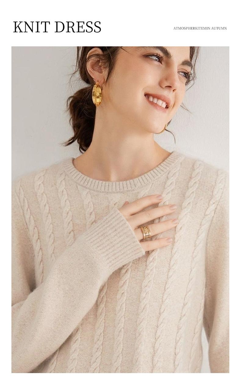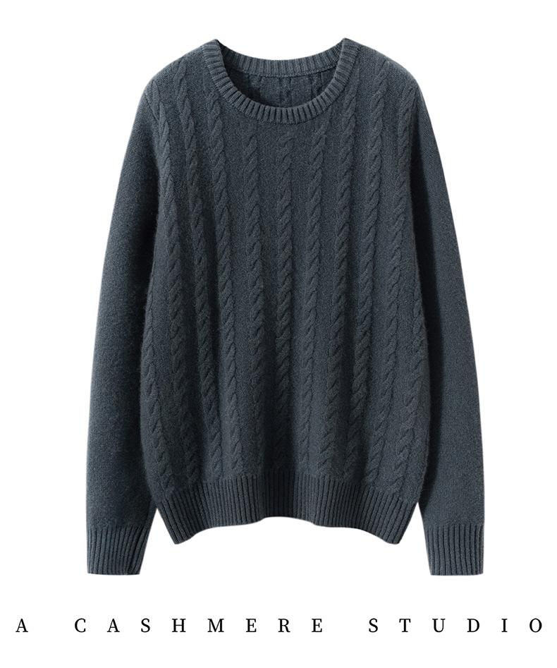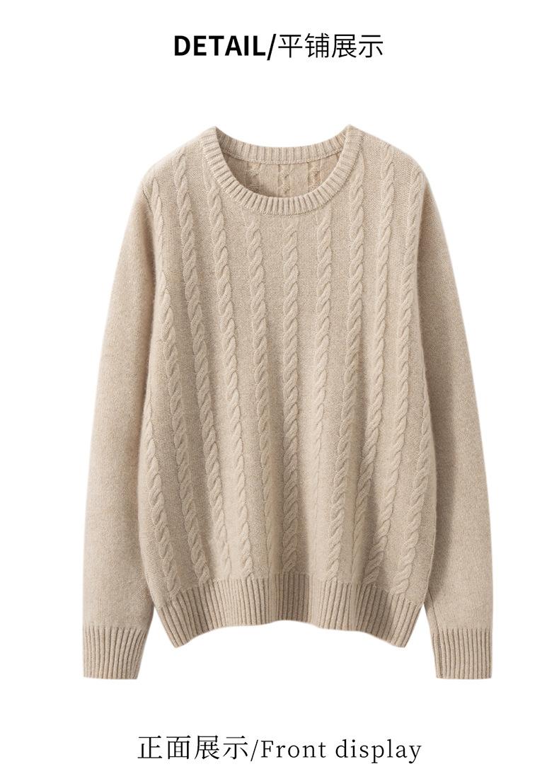 Nuevo Otoño e Invierno Casual Versátil Holgado Tejido de Cable Cuello Redondo Suéter de Cachemira para Mujer 100% Cachemira Pura