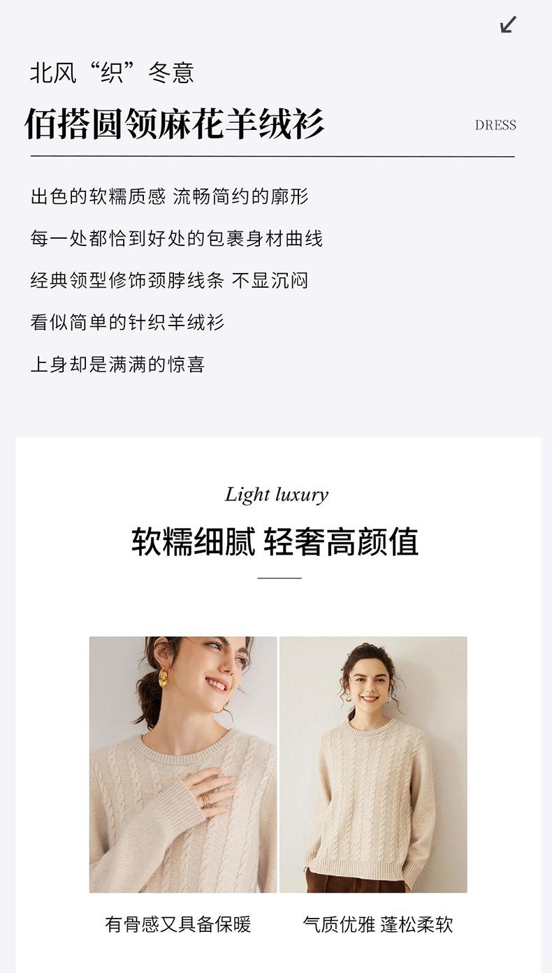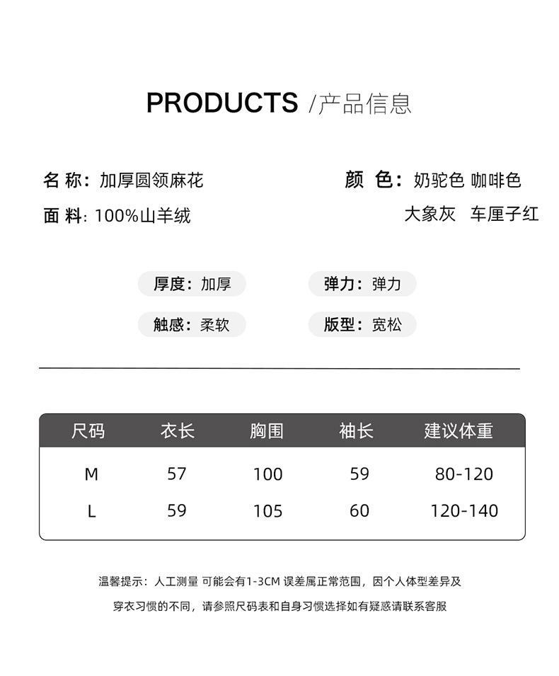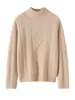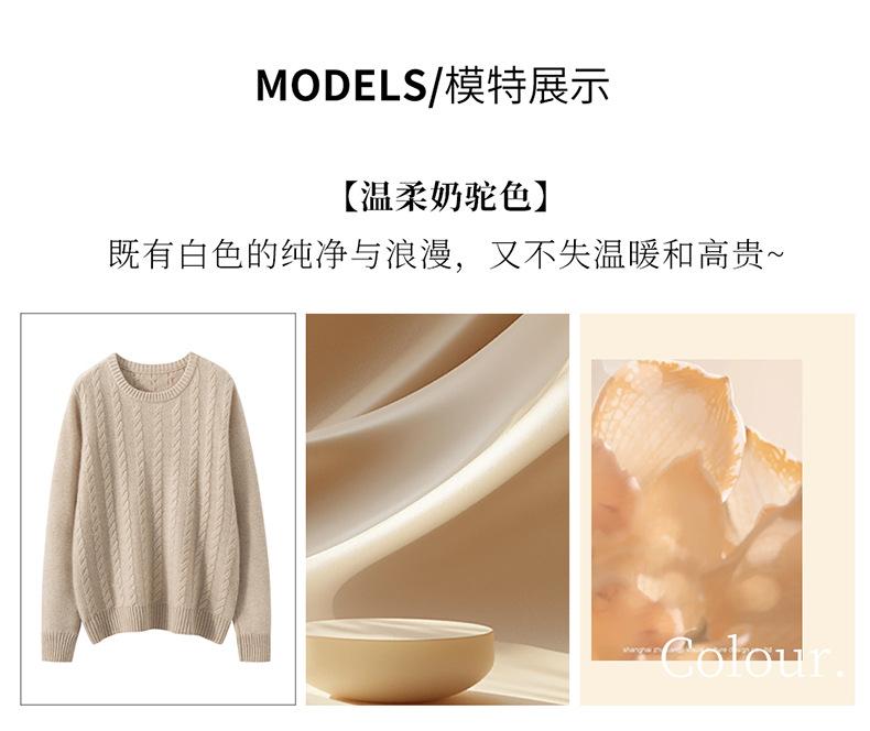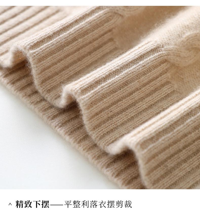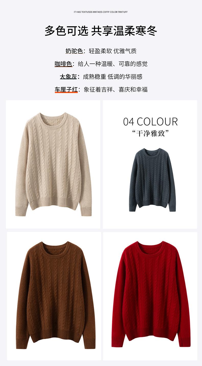 Nuevo Otoño e Invierno Casual Versátil Holgado Tejido de Cable Cuello Redondo Suéter de Cachemira para Mujer 100% Cachemira Pura