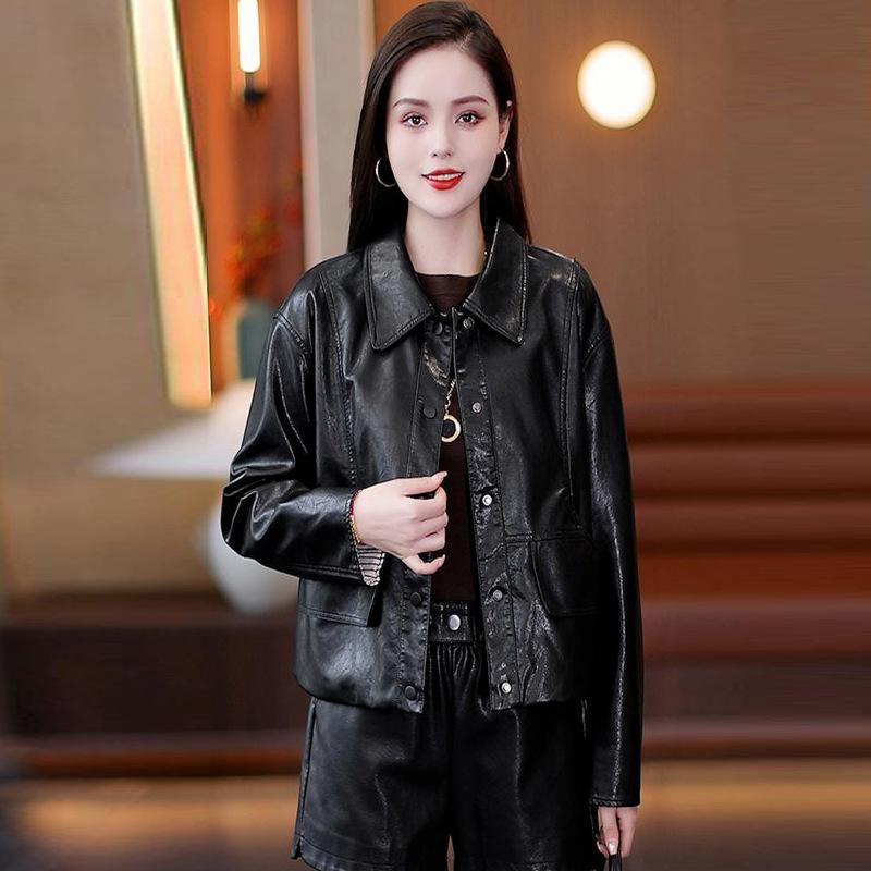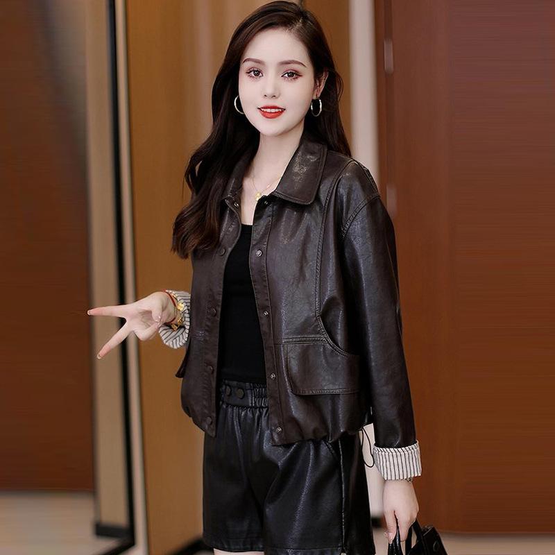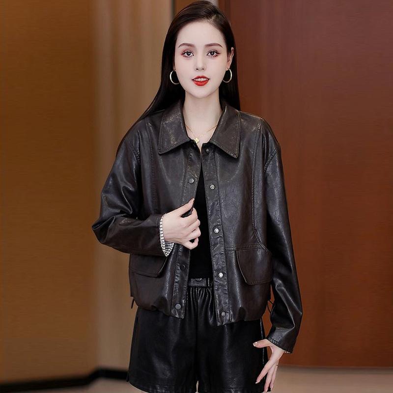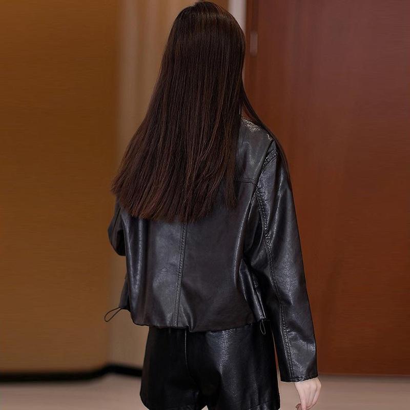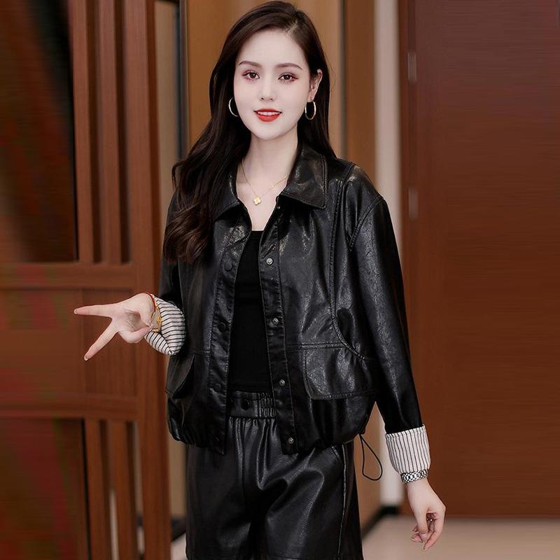 Chaqueta de Cuero de Moda Abrigo Corto Mujer 2025 Otoño Nuevo Talla Pequeña Casual Suelto Cuero PU Chaqueta de Motocicleta Top
