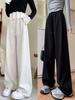 Pantalones deportivos negros para mujer otoño 2025 nuevos americanos de pierna recta con puño pantalones de chándal sueltos casuales con caída de pierna ancha pantalones largos