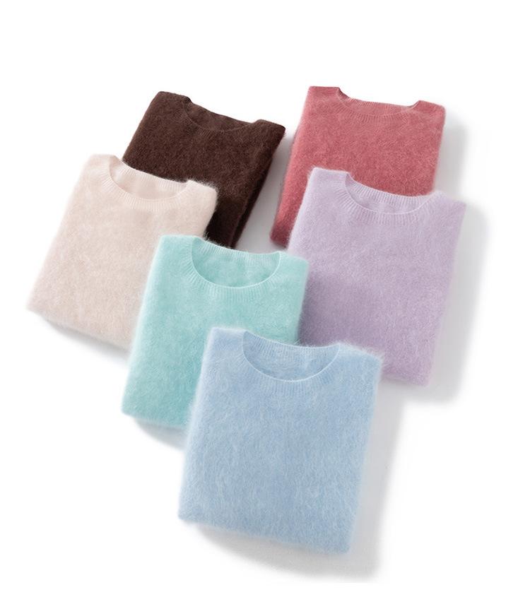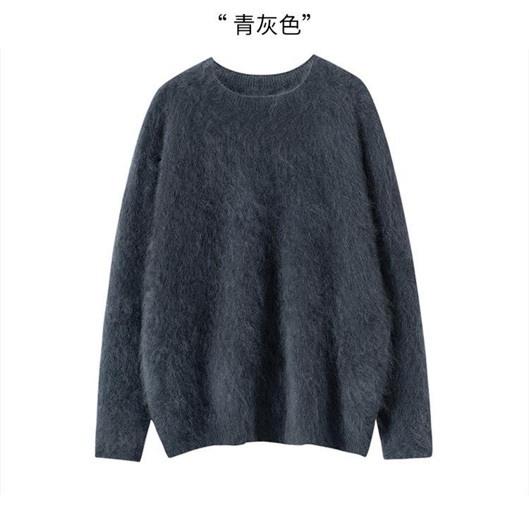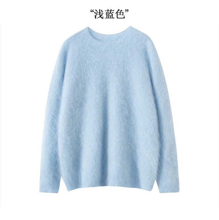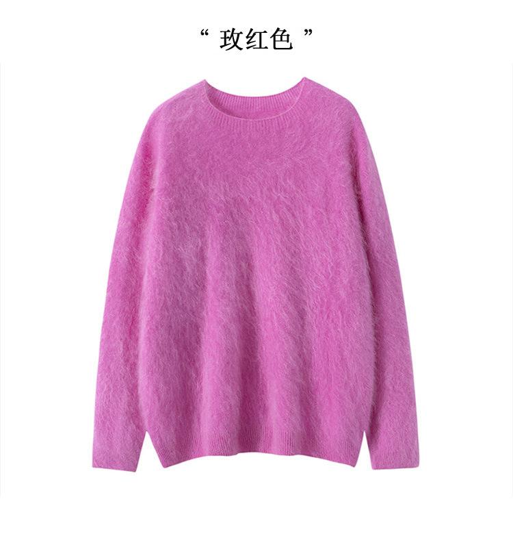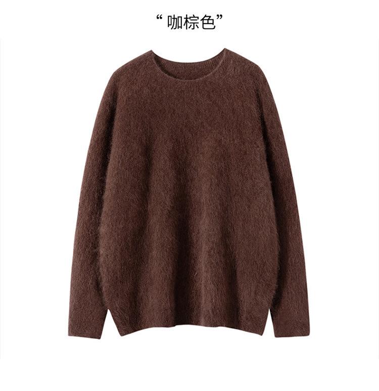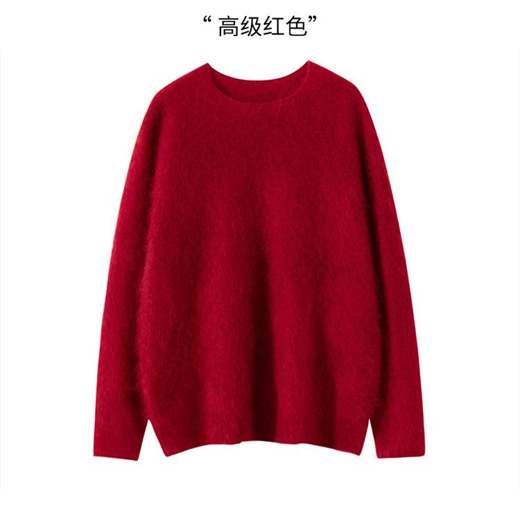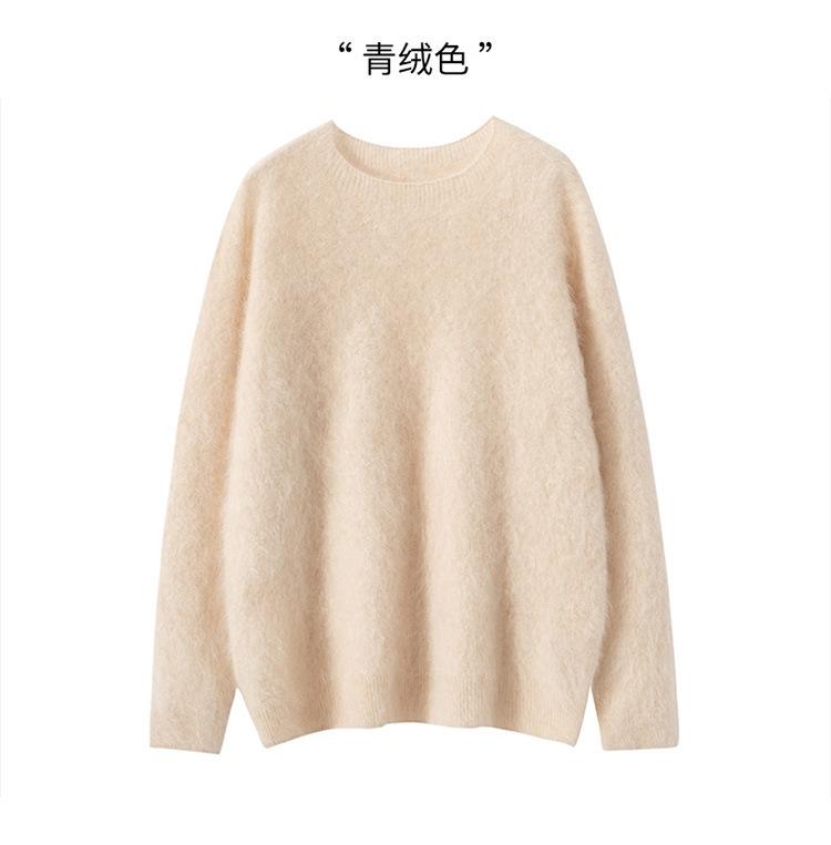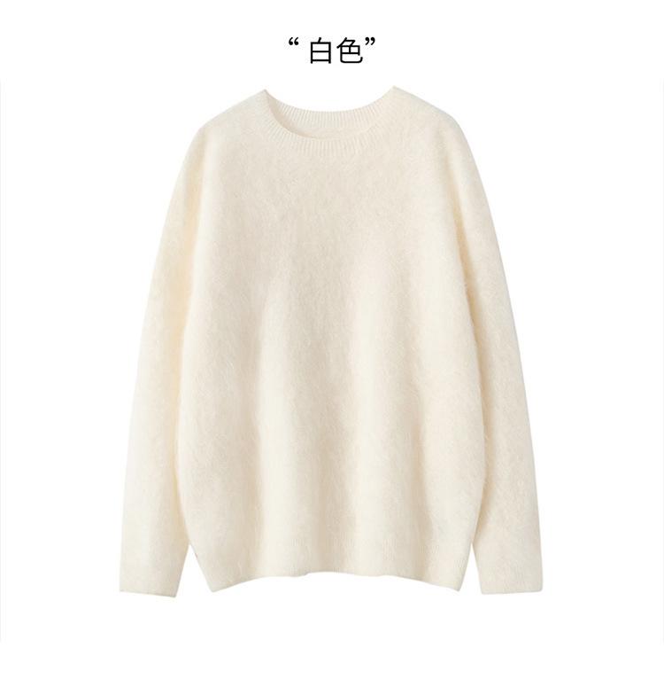 Nuevo suéter de cachemira pura engrosada de primera línea para mujer, moda, suéter holgado cepillado para mujer, jersey de cuello redondo, camiseta base, abrigo blanco