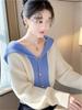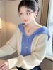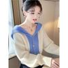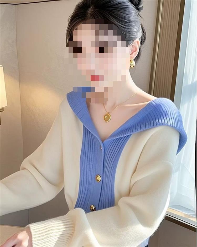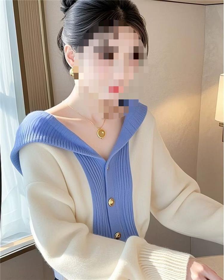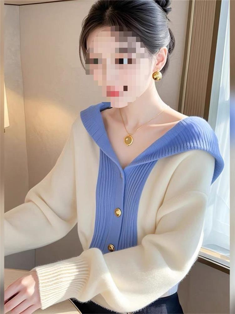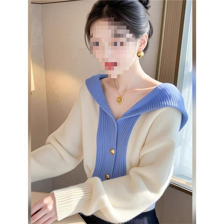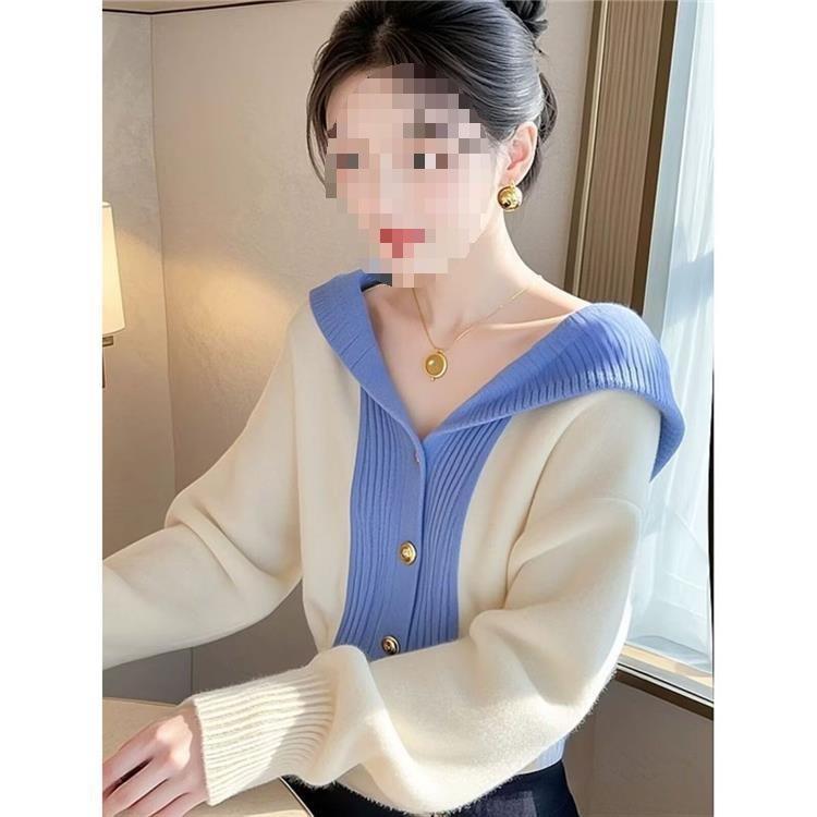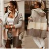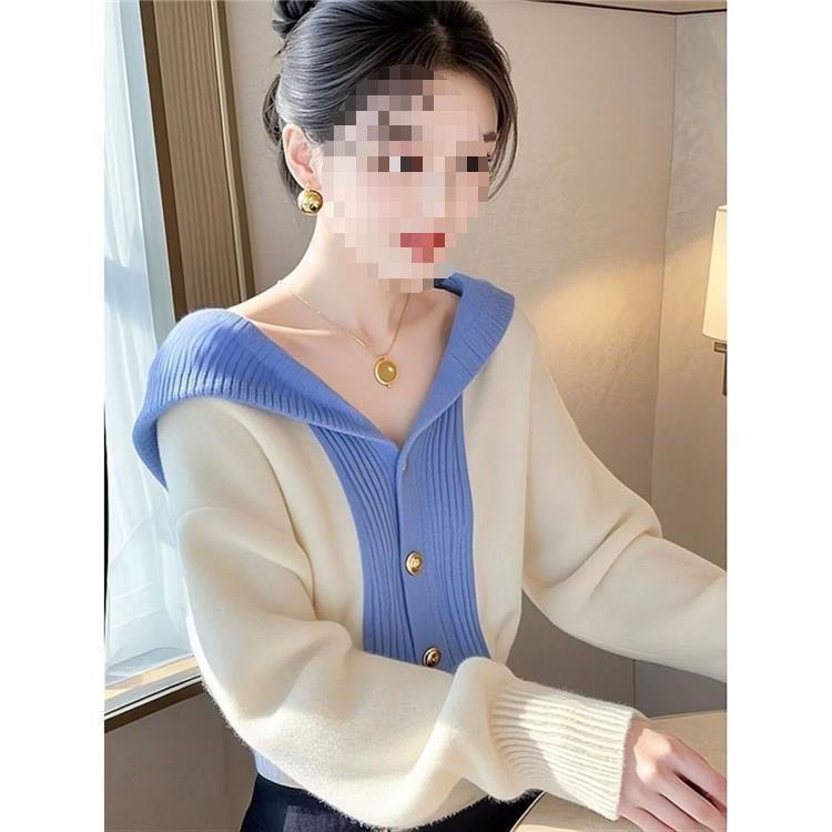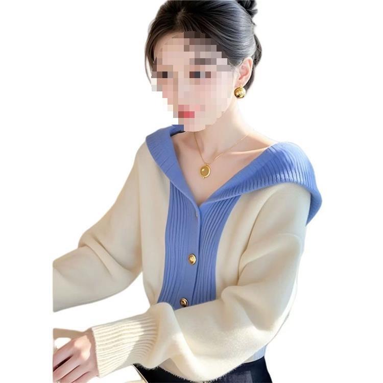 Cárdigan de Punto Color Block Suéter con Capucha Abrigo 2025 Principios de Otoño Nuevo Estilo Minimalista para Mujer Top de Moda de Alta Gama