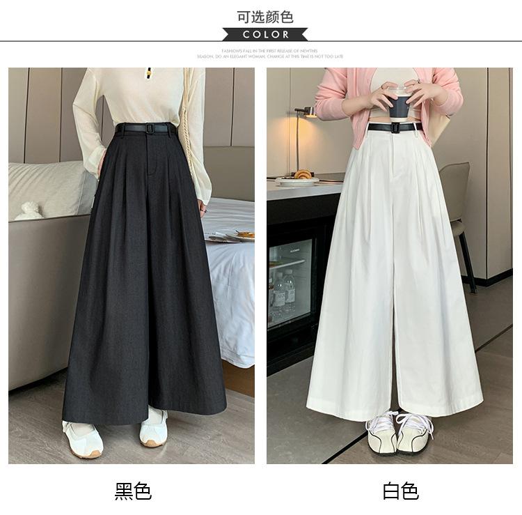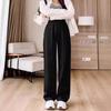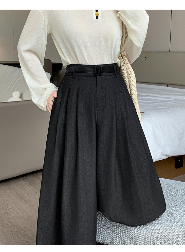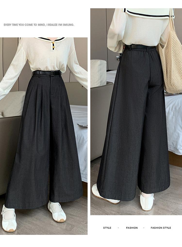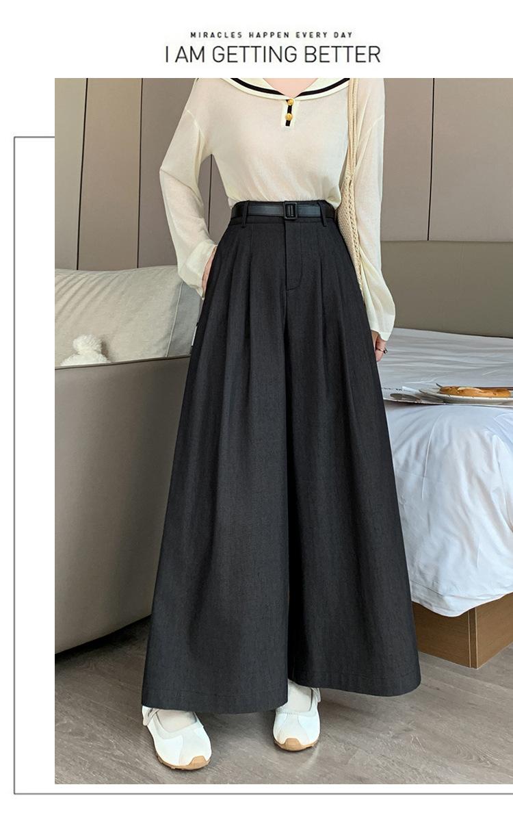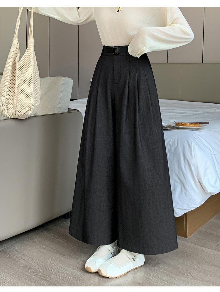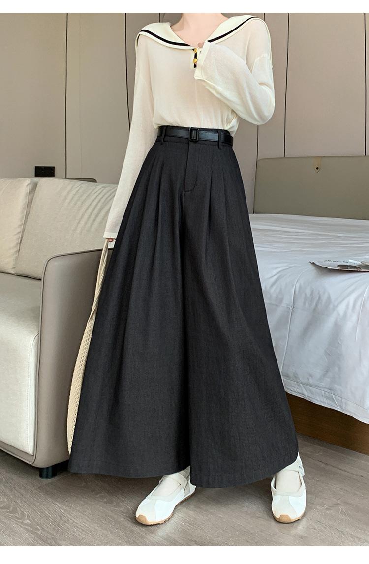 Pantalones casuales de pierna ancha para mujer otoño nuevo algodón lavado tiro alto diseño adelgazante sentido del diseño tiro alto holgados pantalones largos falda