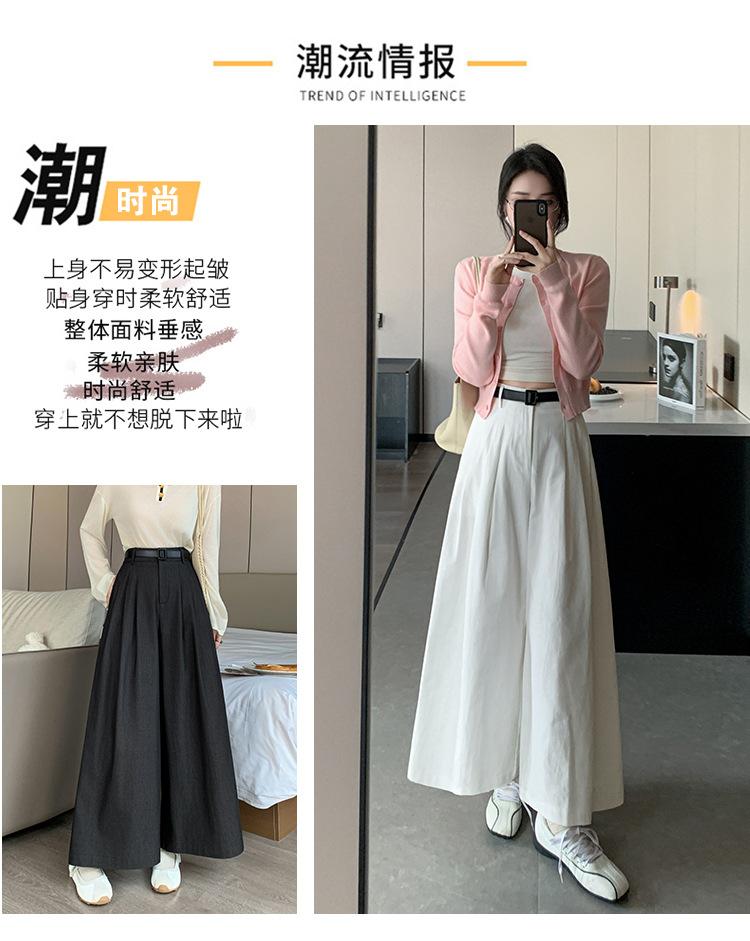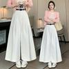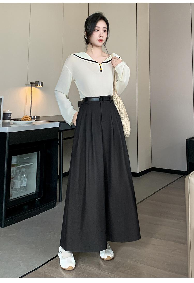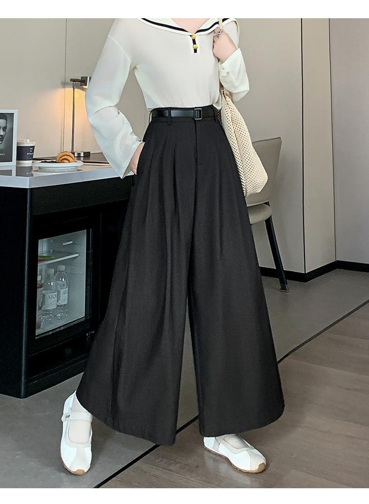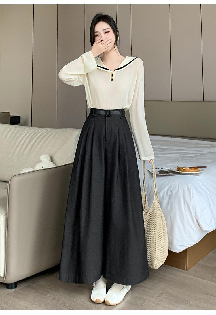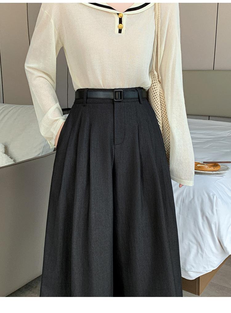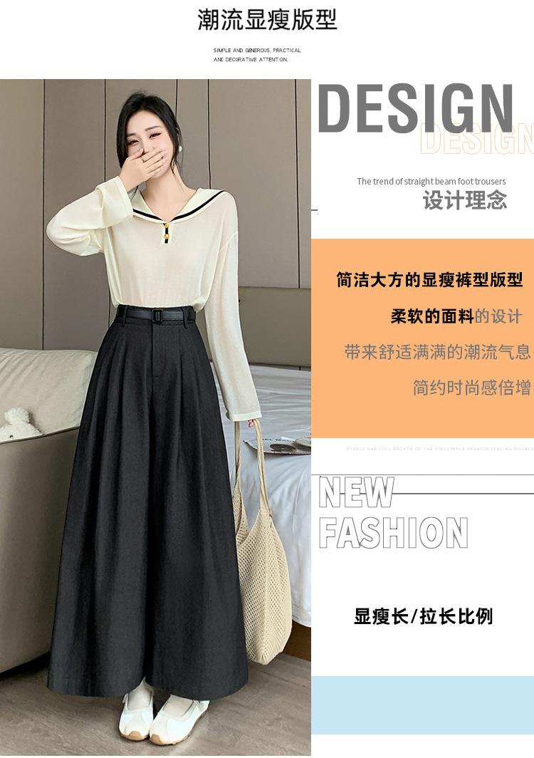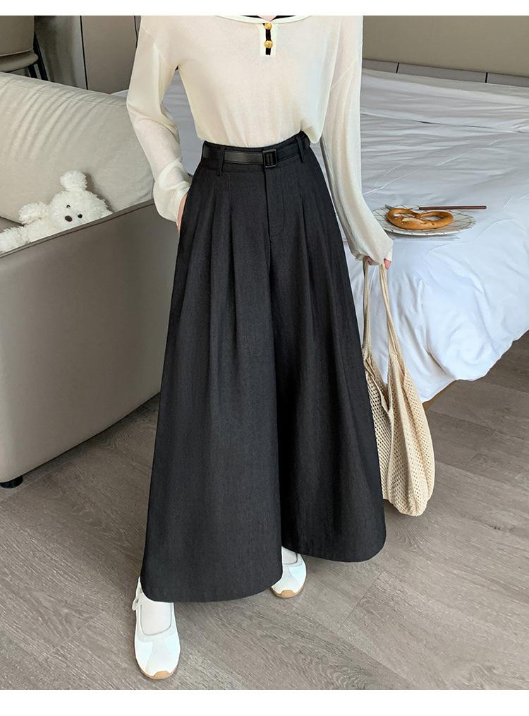 Pantalones casuales de pierna ancha para mujer otoño nuevo algodón lavado tiro alto diseño adelgazante sentido del diseño tiro alto holgados pantalones largos falda