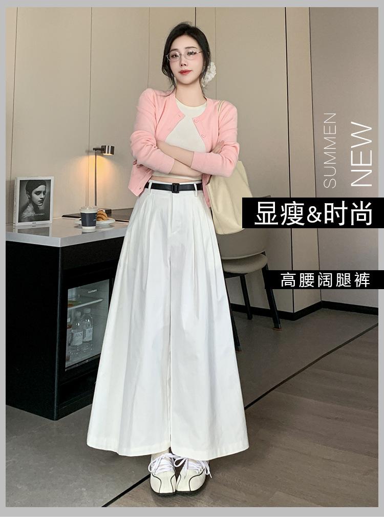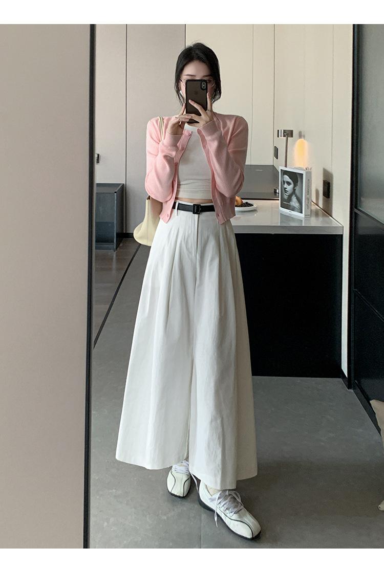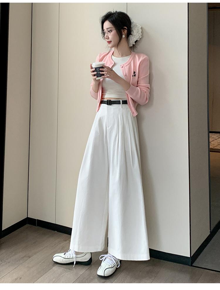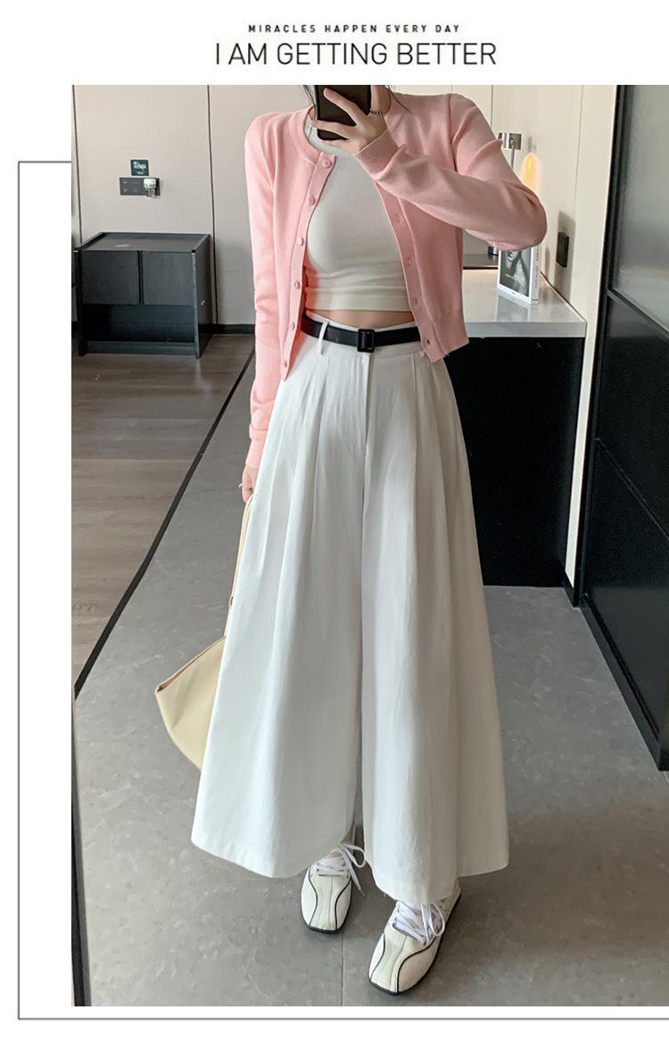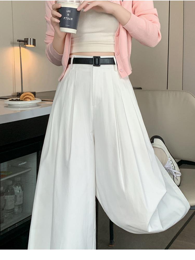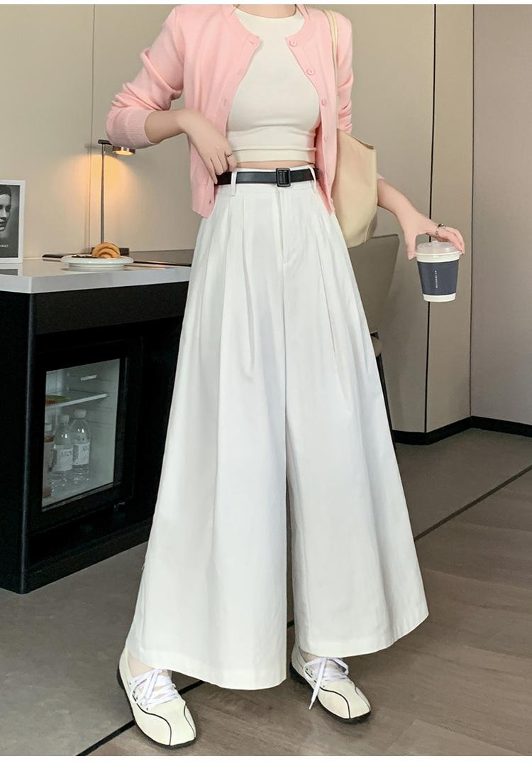 Pantalones casuales de pierna ancha para mujer otoño nuevo algodón lavado tiro alto diseño adelgazante sentido del diseño tiro alto holgados pantalones largos falda