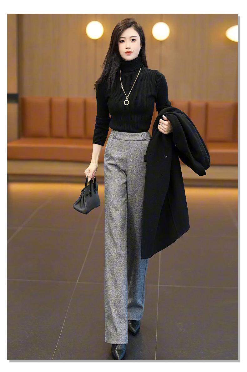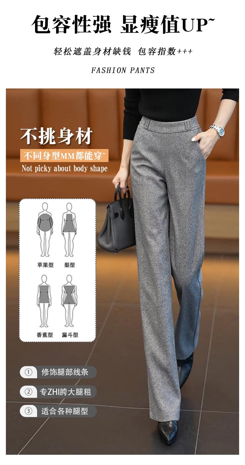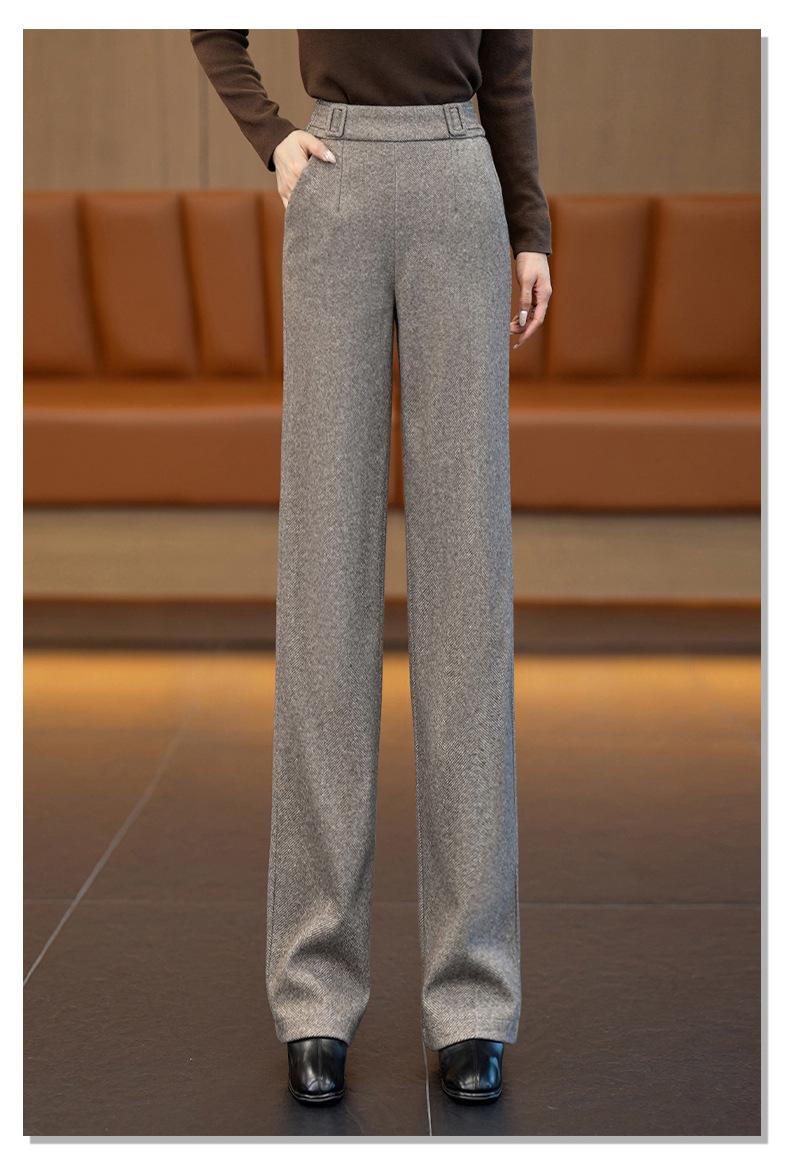 Pantalones Gruesos de Lana para Mujer Otoño Invierno 2025 Nuevos Pantalones Anchos con Caída Pantalones Rectos Holgados Pantalones Largos Casuales
