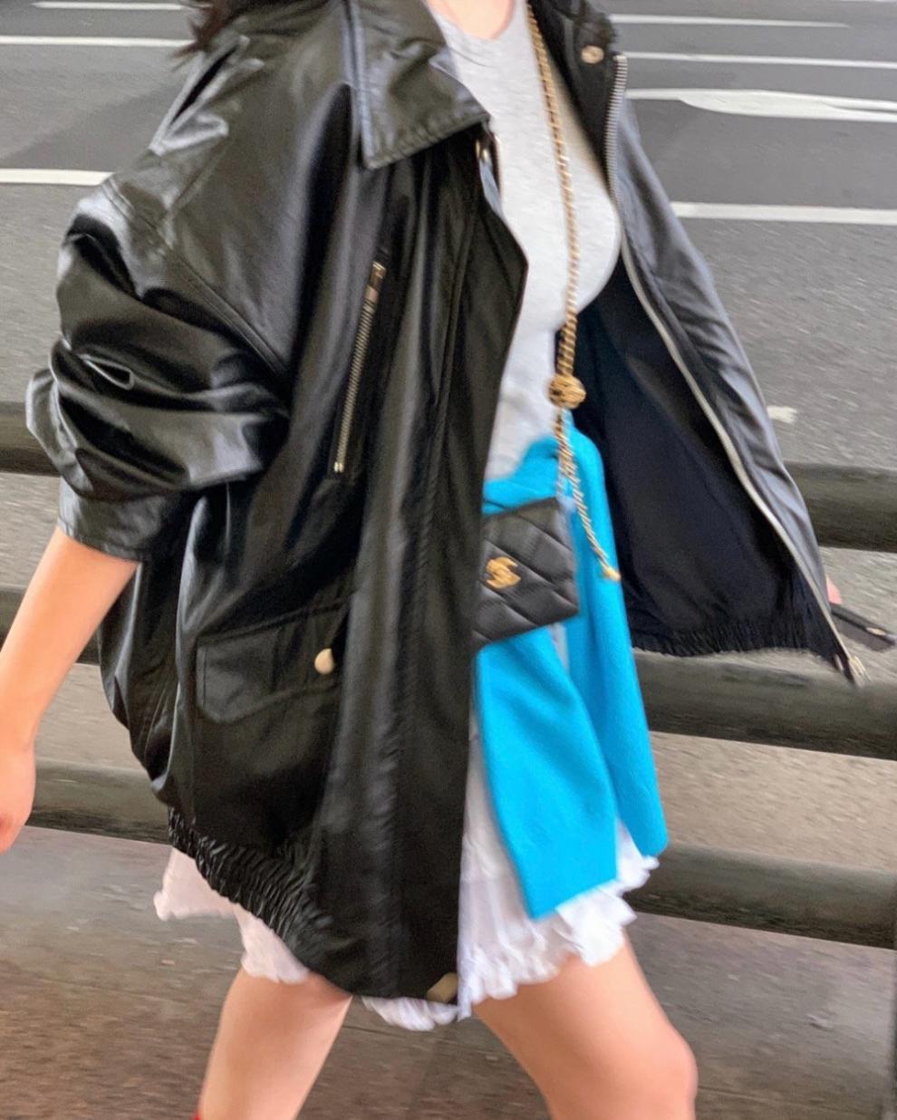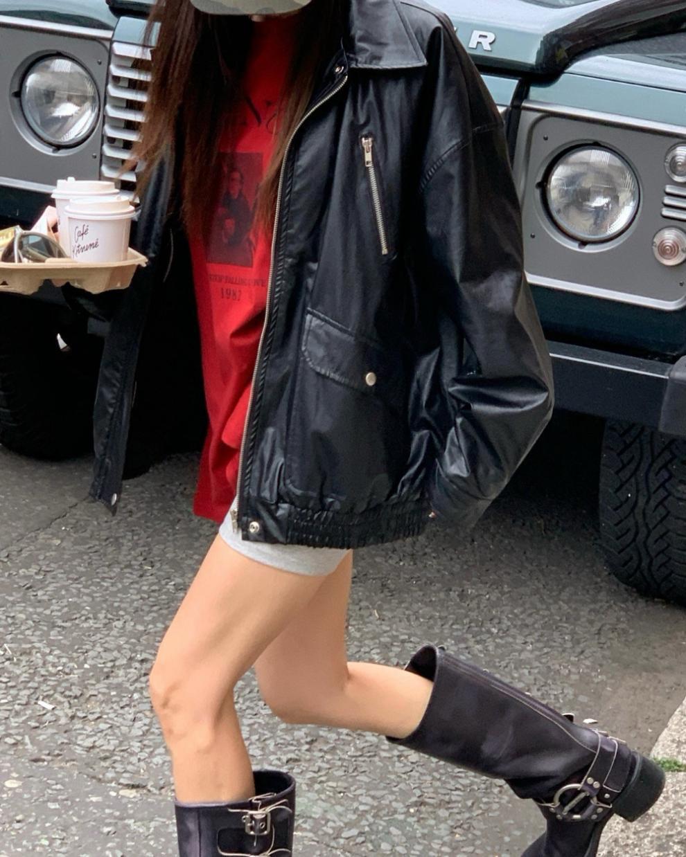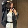Chaqueta de Motociclista Retro Holgada Casual de Cuero PU Nuevo de Alta Calidad para Mujer Dongdaemun Coreana