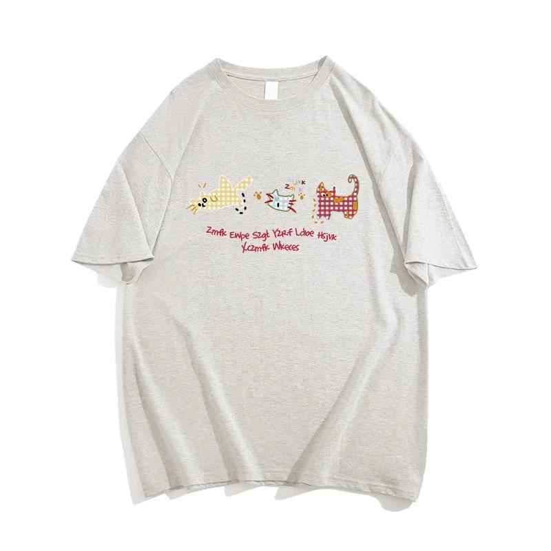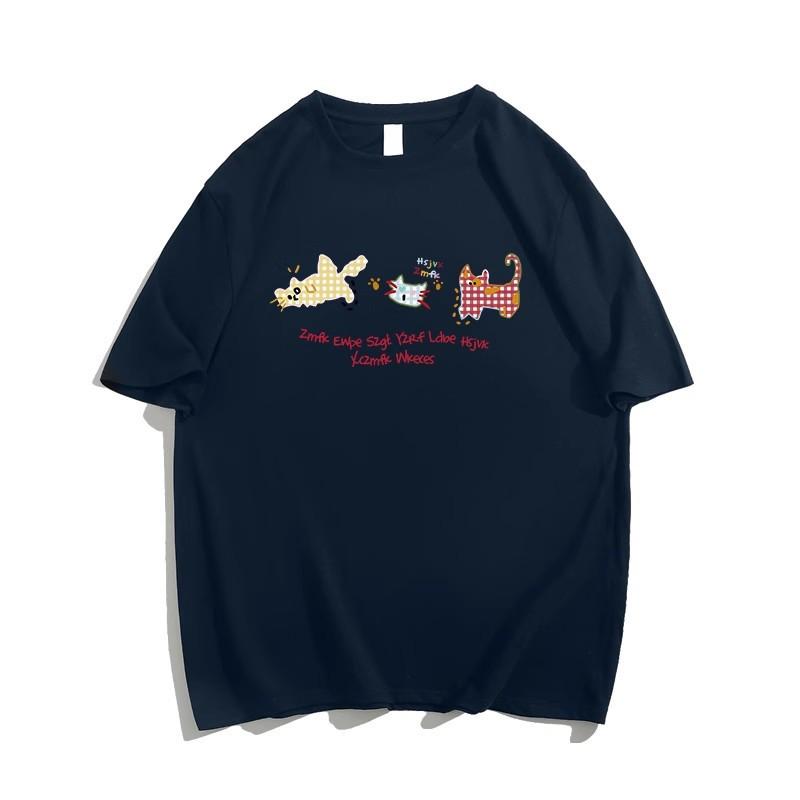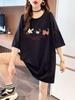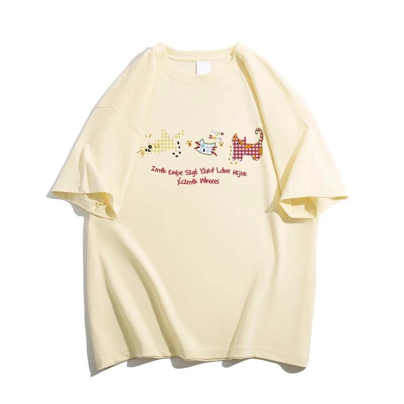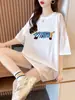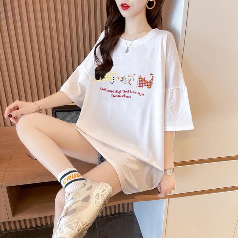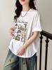 Playera de Algodón Puro de Manga Corta con Estampado de Dibujos Animados para Mujer Verano 2025 Nueva Blanca Holgada Adelgazante de Largo Medio Manga Media