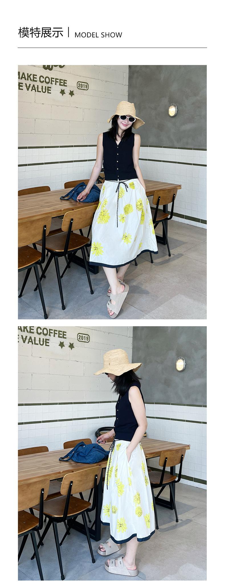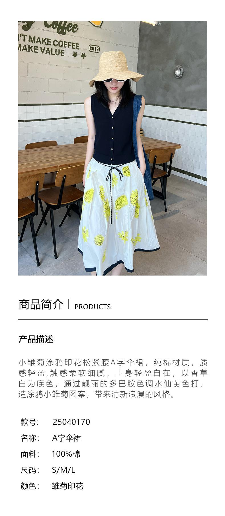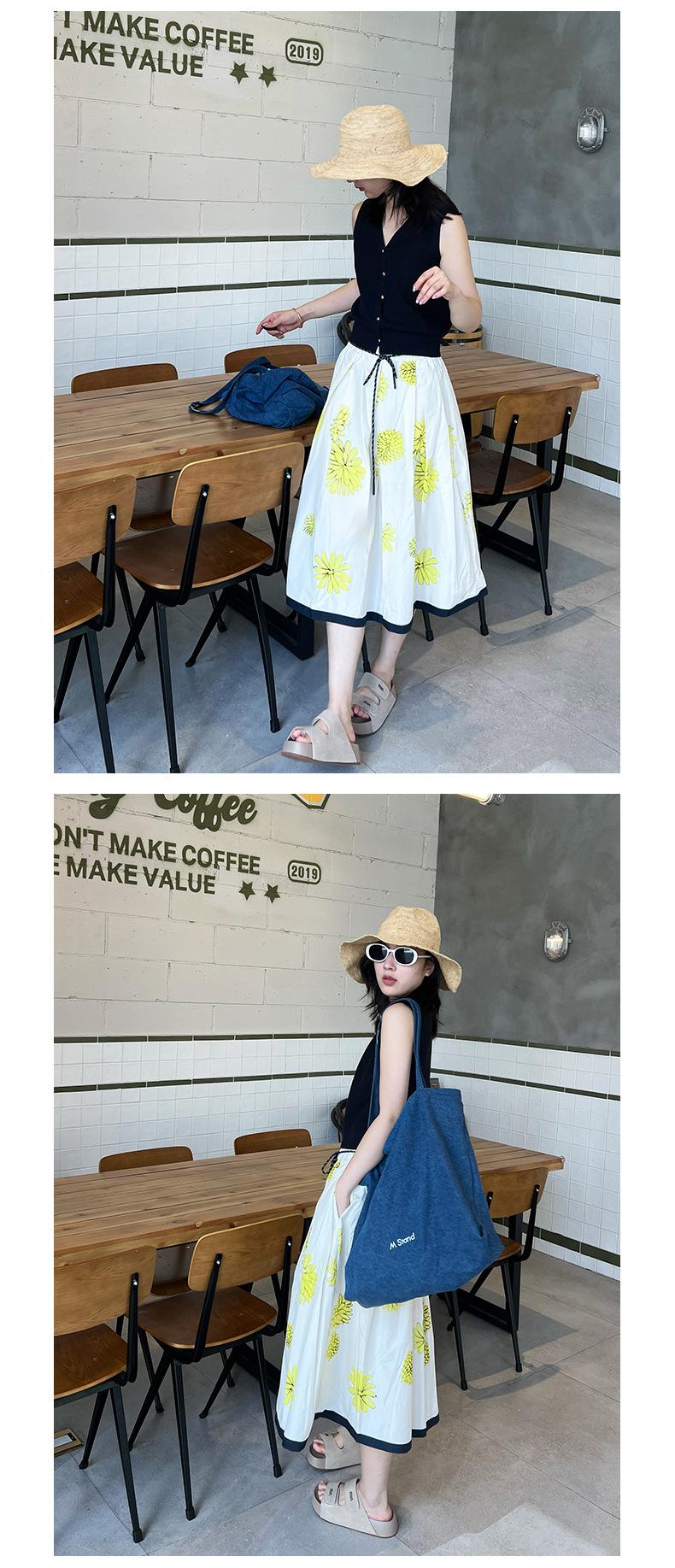 Falda de Verano para Mujer Larga de Algodón Puro Elegante Falda para Mujer 2025 Primavera y Verano Nueva Cintura Elástica Falda de Margaritas