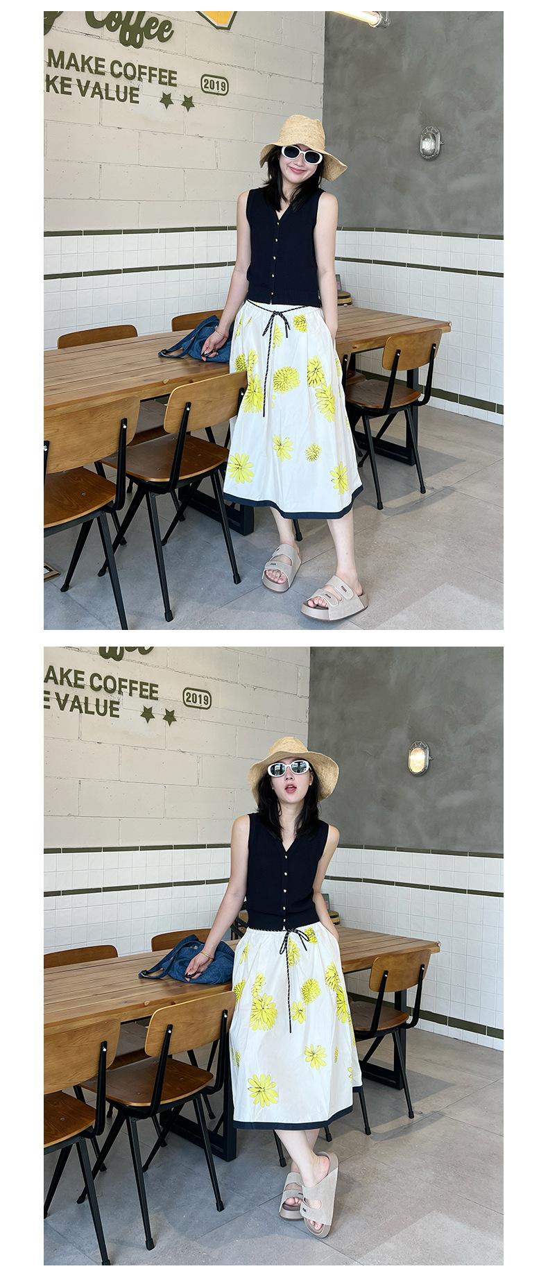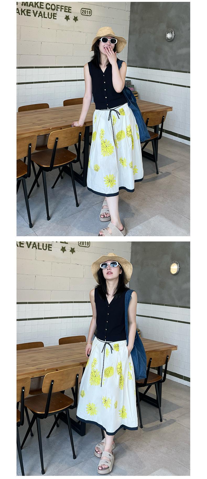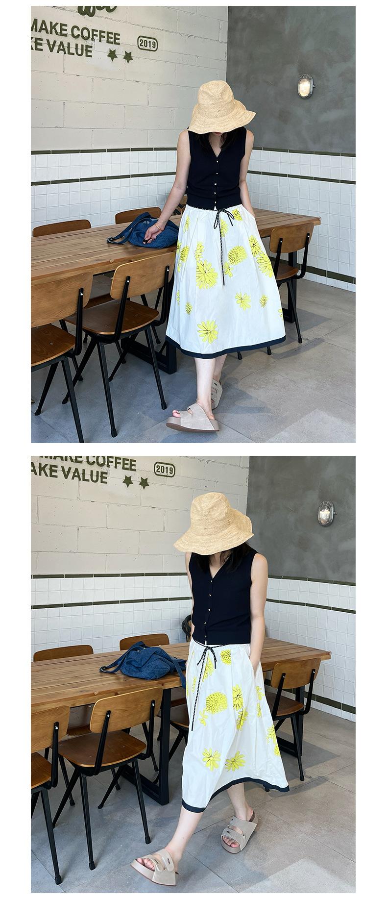 Falda de Verano para Mujer Larga de Algodón Puro Elegante Falda para Mujer 2025 Primavera y Verano Nueva Cintura Elástica Falda de Margaritas
