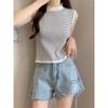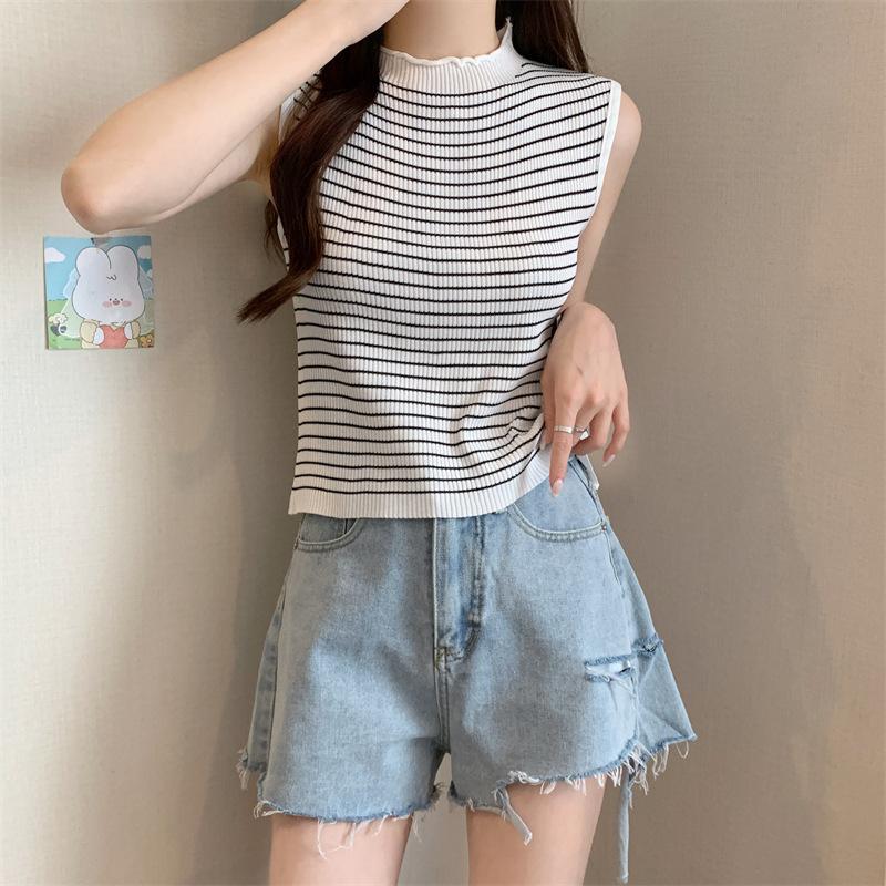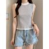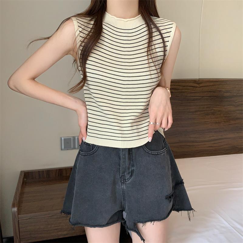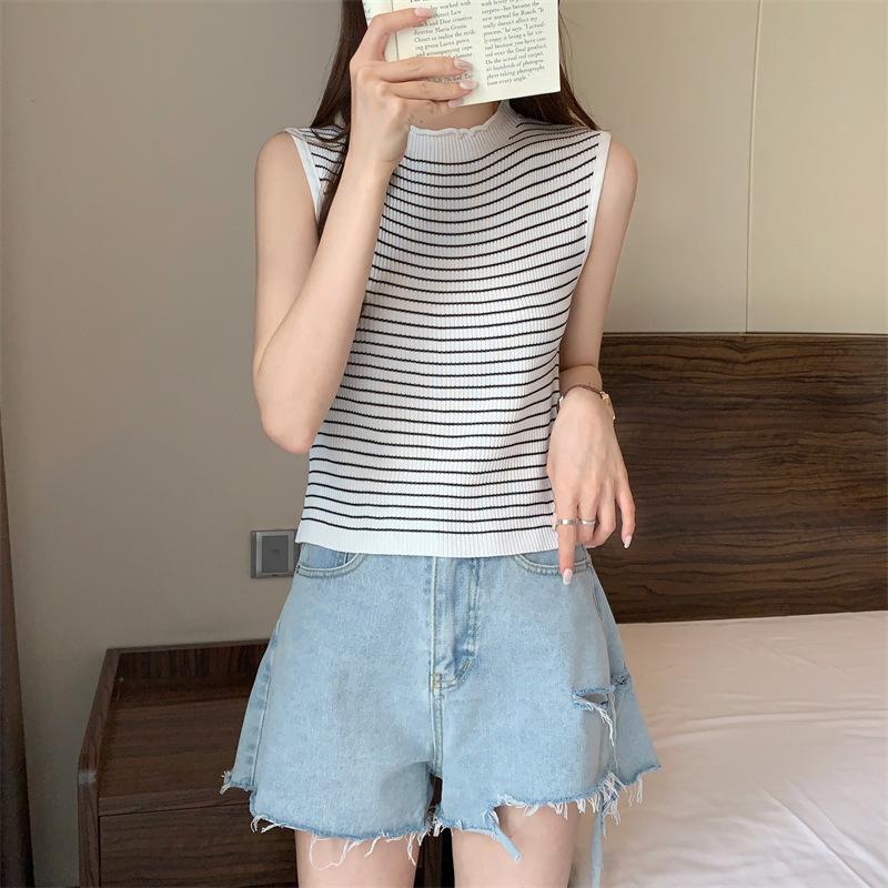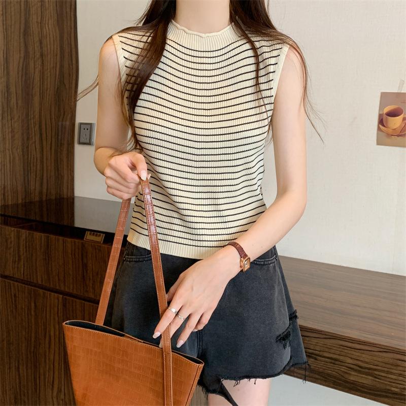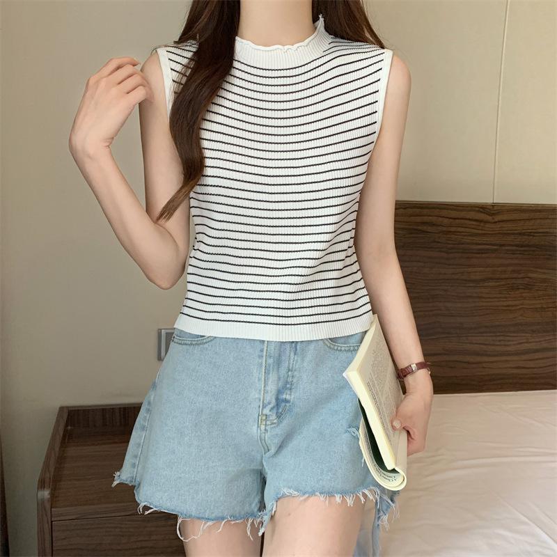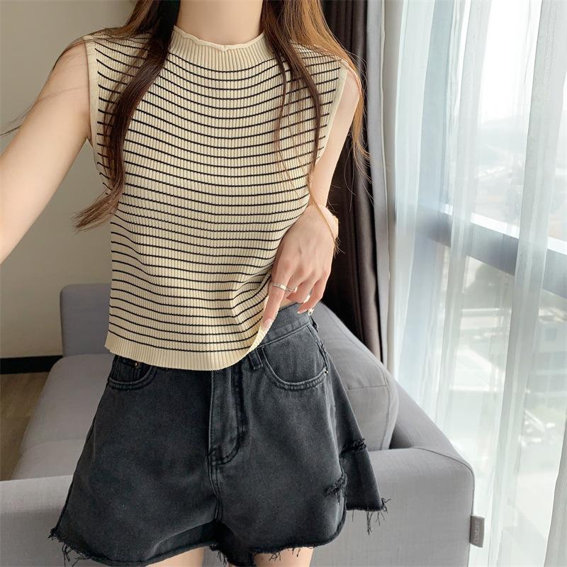2023 Verano Nuevo Chaleco Tejido a Rayas Top sin Mangas Ropa Interior para Mujer Ropa Exterior Ajustado Corto Chaleco Básico