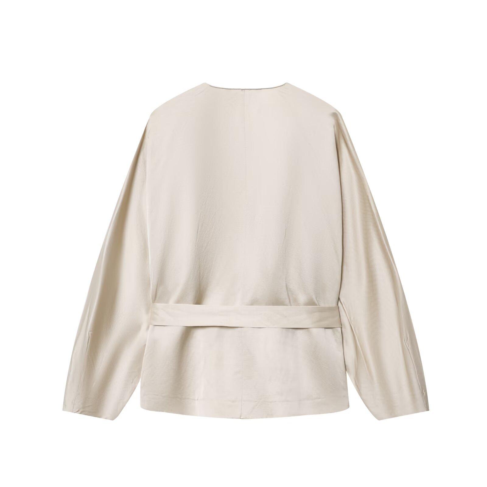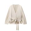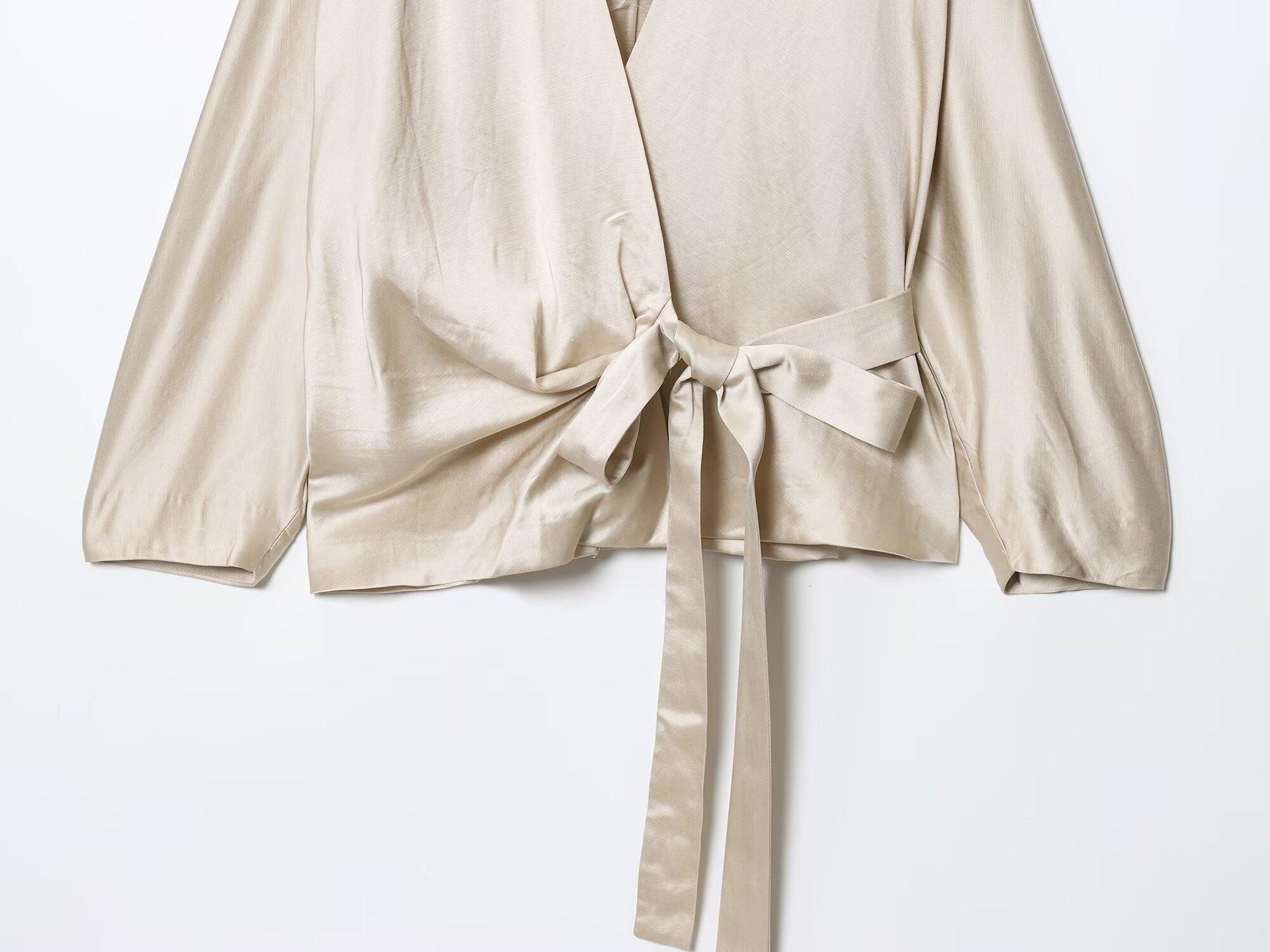 Transfronterizo Europeo y Americano 2025 otoño nuevo alta gama cuello en V adelgazante lazo temperamento commuter manga larga color sólido camisa mujer
