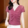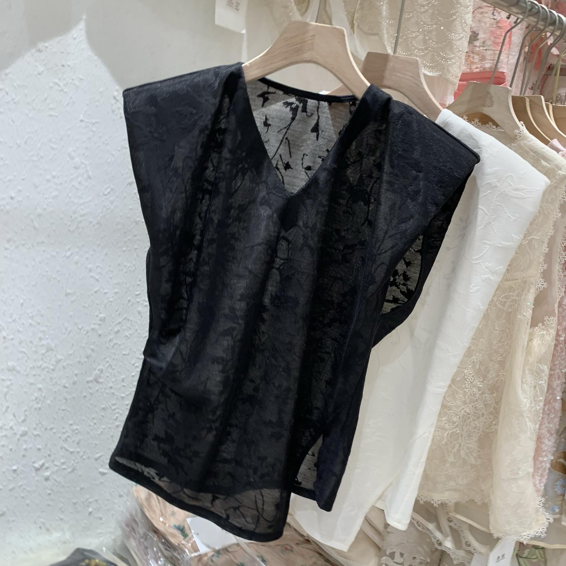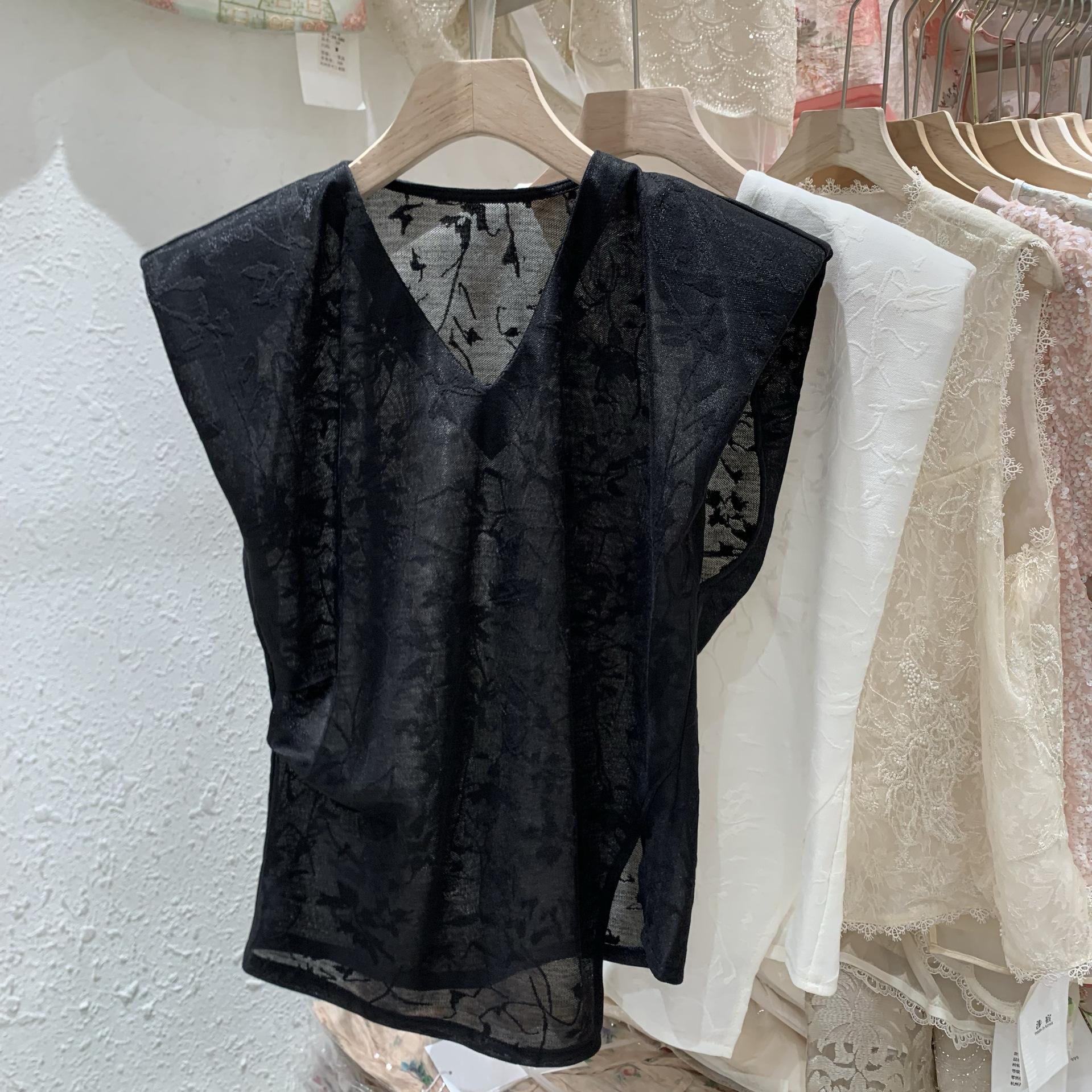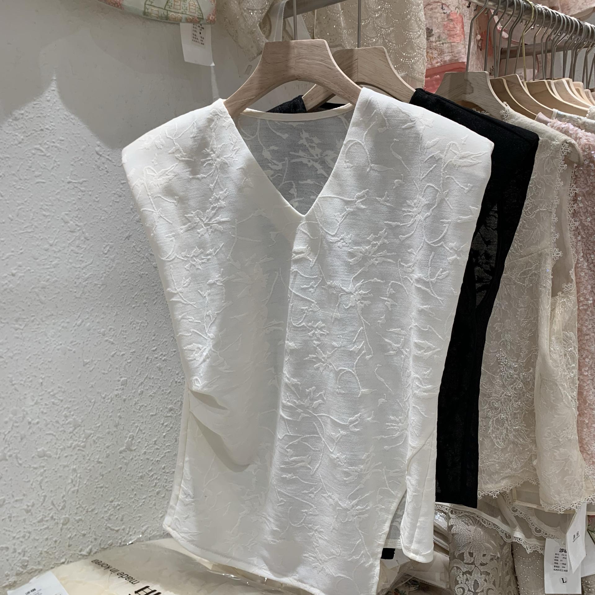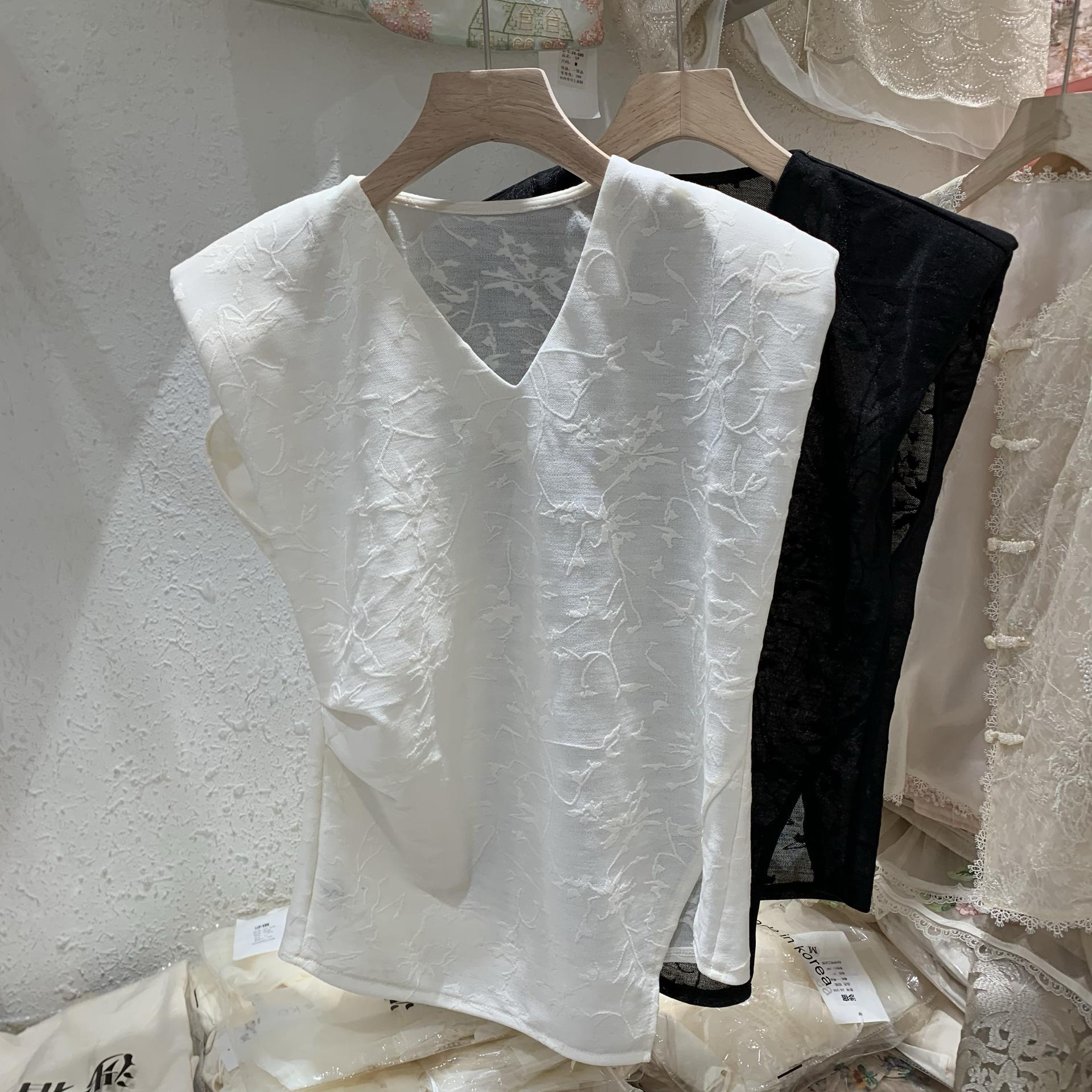 Verano 2025 Nuevo Jacquard Europeo Hombrera Camisa de Gasa Tops para Mujer con Mangas Volantes y Aberturas Camisetas para Mujer con Aspecto Adelgazante