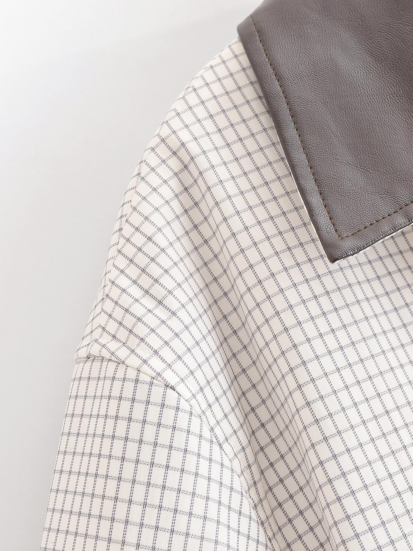 Ropa de mujer europea y americana transfronteriza AliExpress más vendida moda casual estilo commuter a bloques de color fina pata de gallo cuello vuelto abrigo corto tipo gabardina
