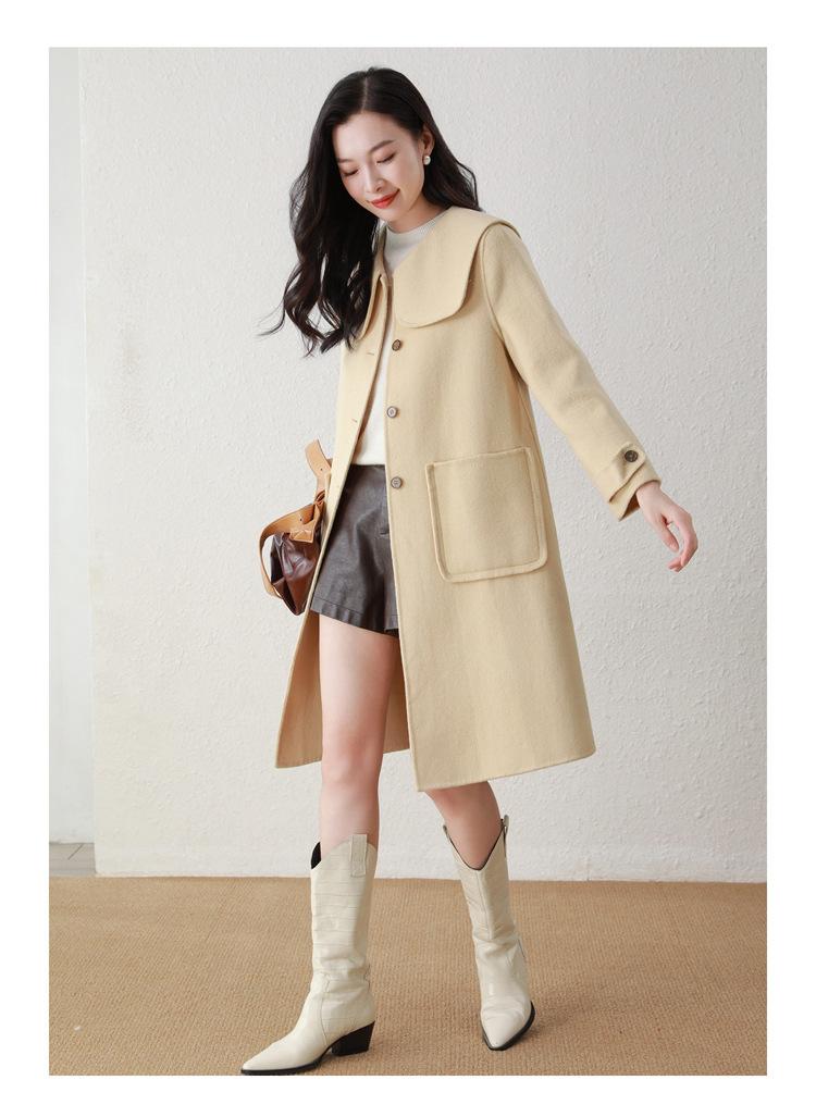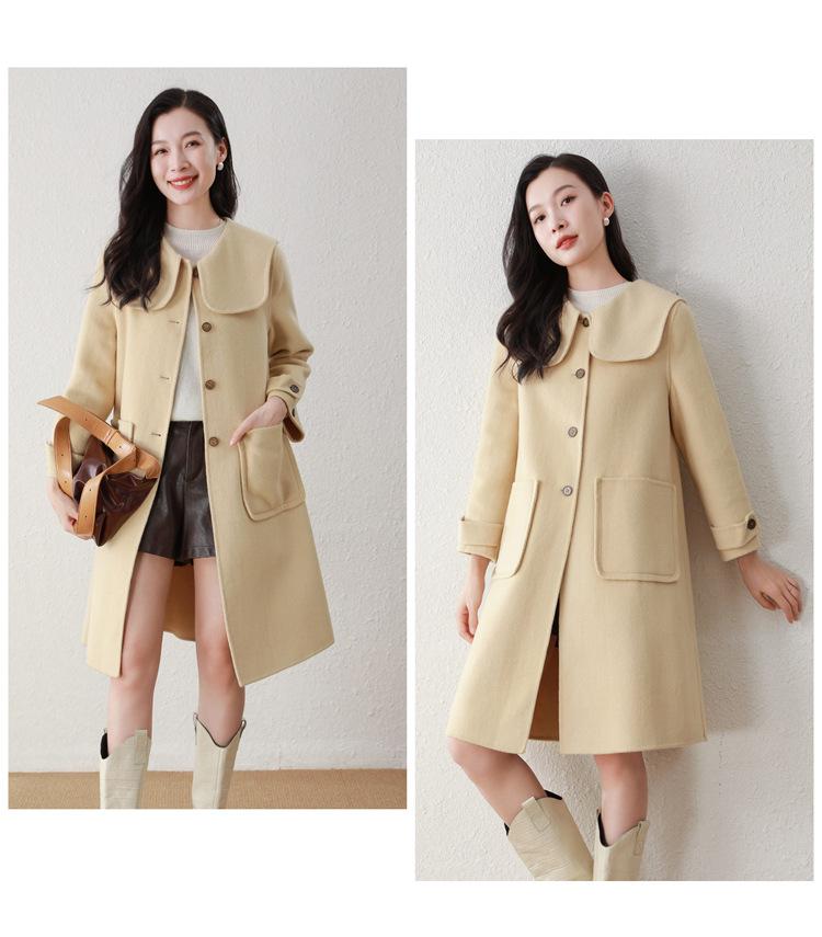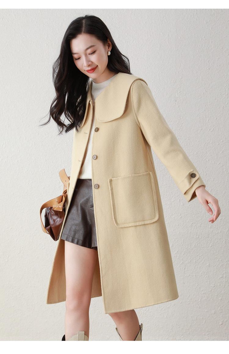 Abrigo de Lana para Mujer de Otoño e Invierno, Largo Medio, Doble Faz, Casual, Elegante, Abrigo de Lana Doble Faz