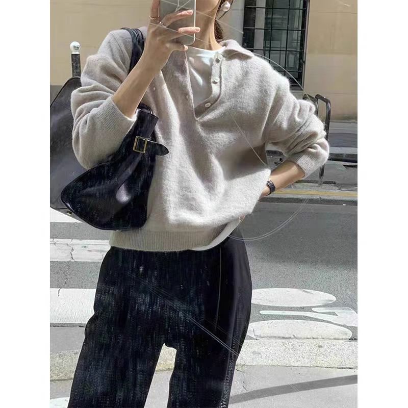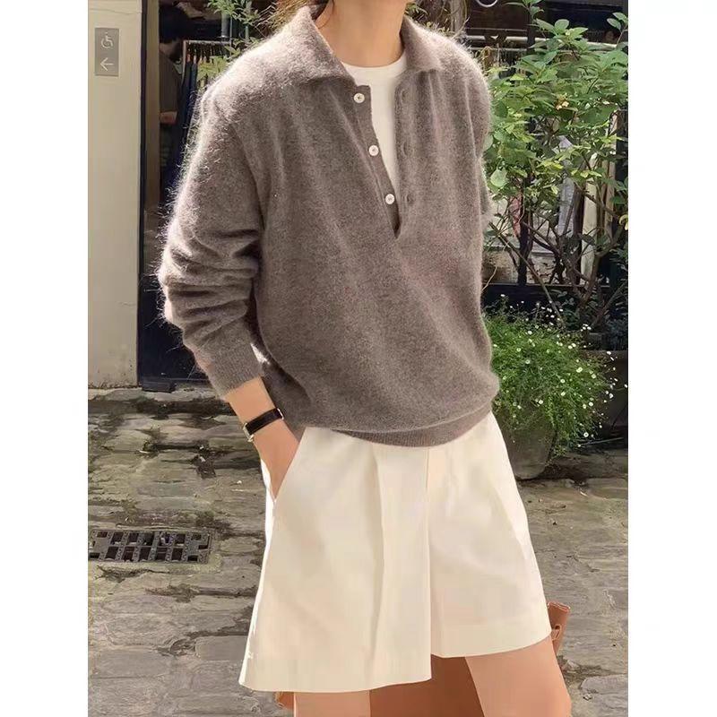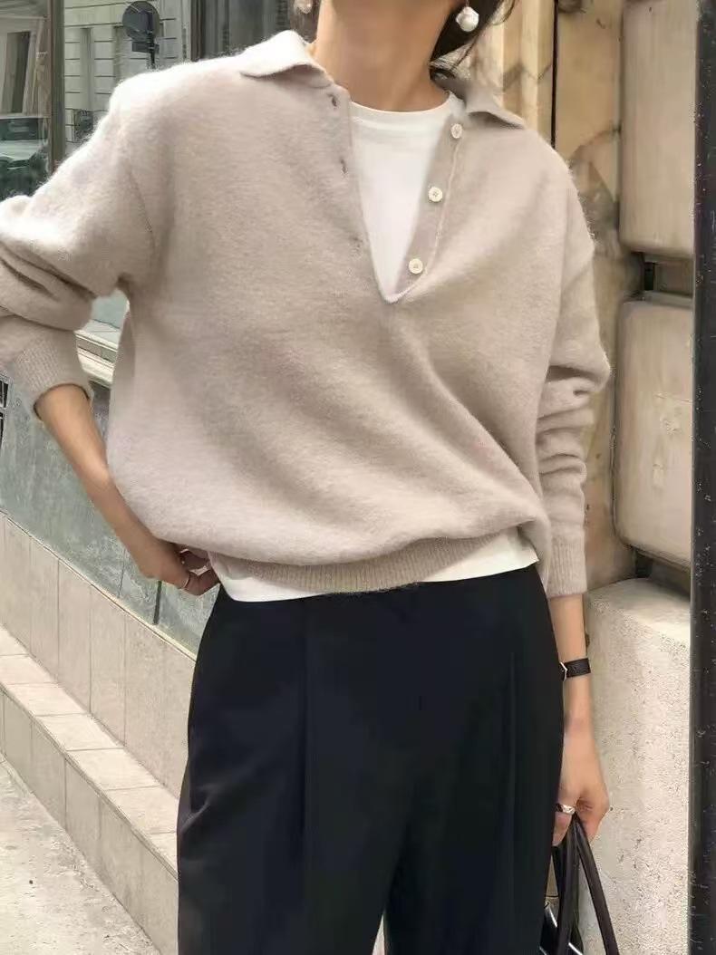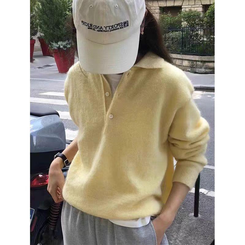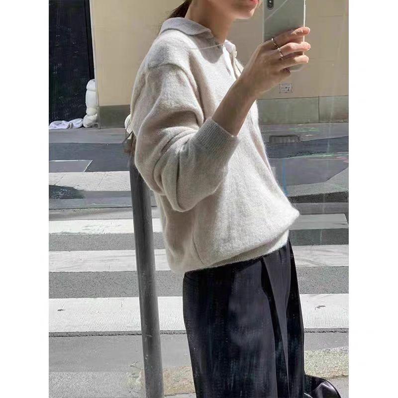Sentido del diseño moderno y versátil, jersey de punto de lana con cuello polo para mujer, nuevo para otoño e invierno, holgado, perezoso, con solapa