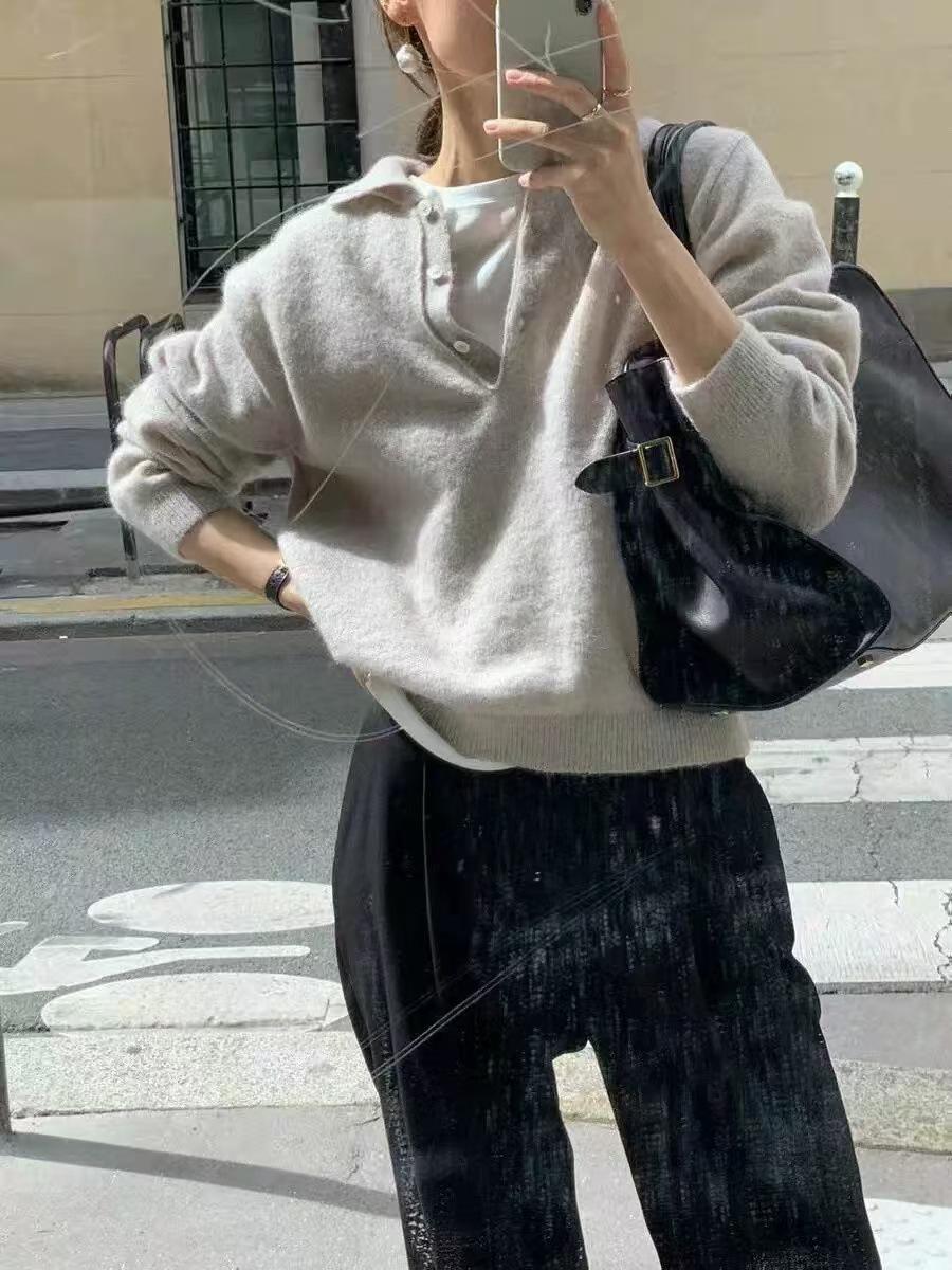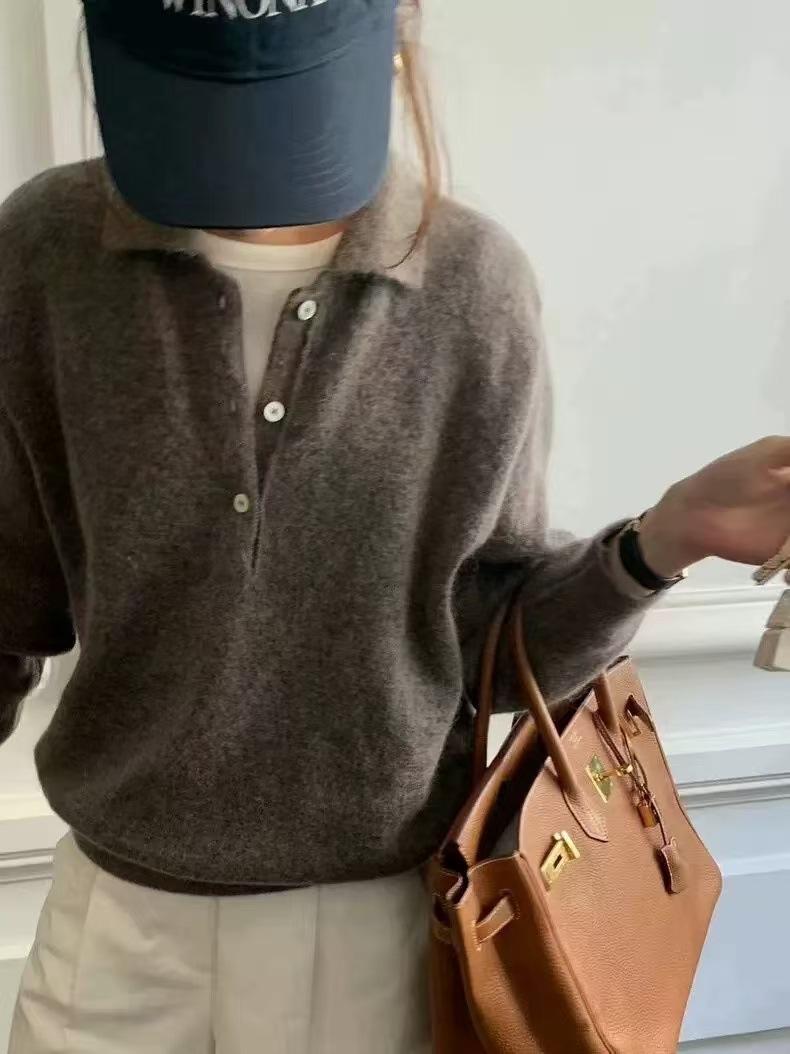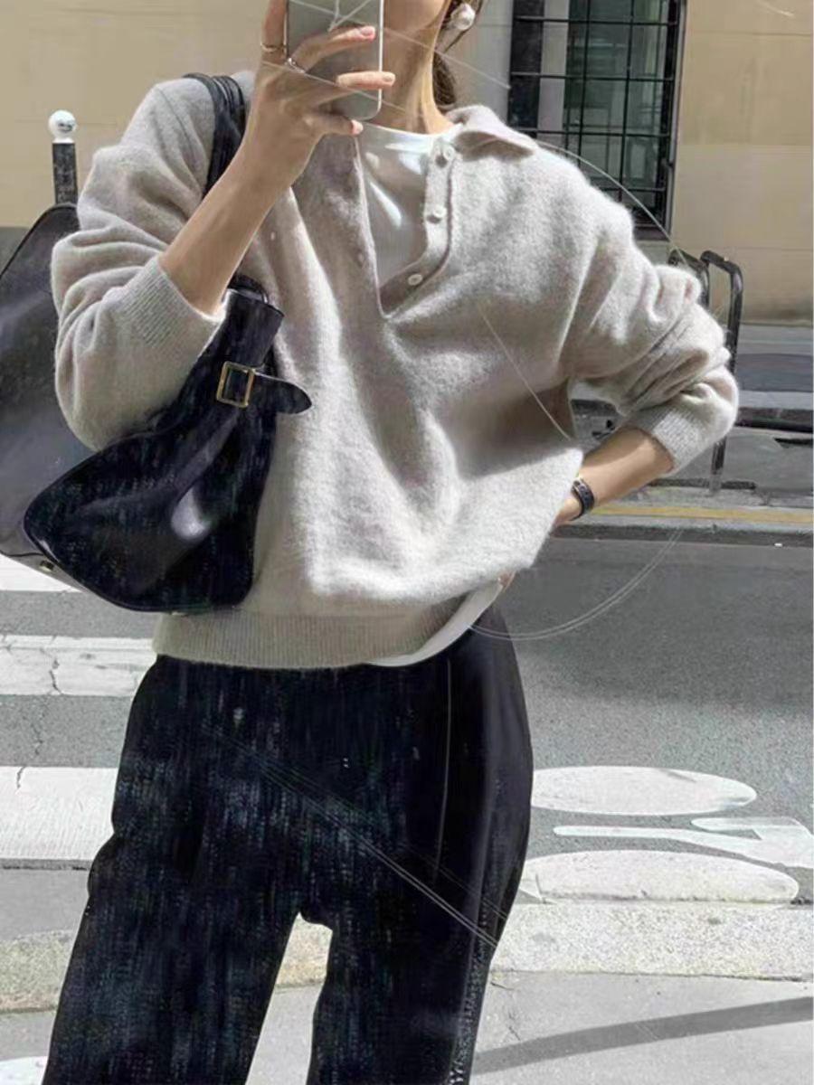 Sentido del diseño moderno y versátil, jersey de punto de lana con cuello polo para mujer, nuevo para otoño e invierno, holgado, perezoso, con solapa