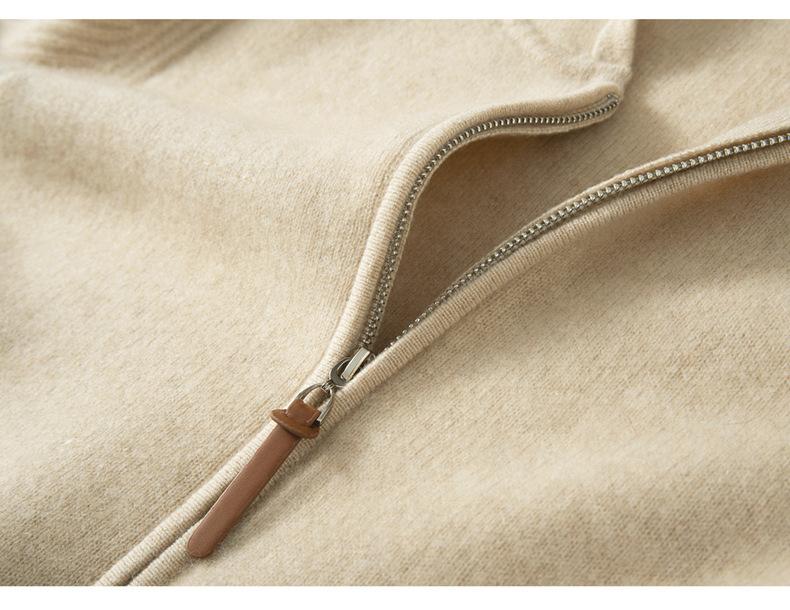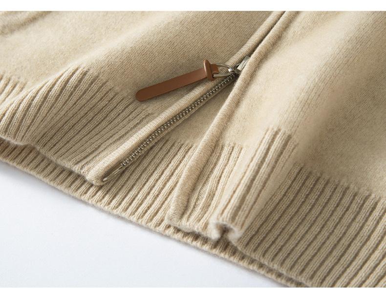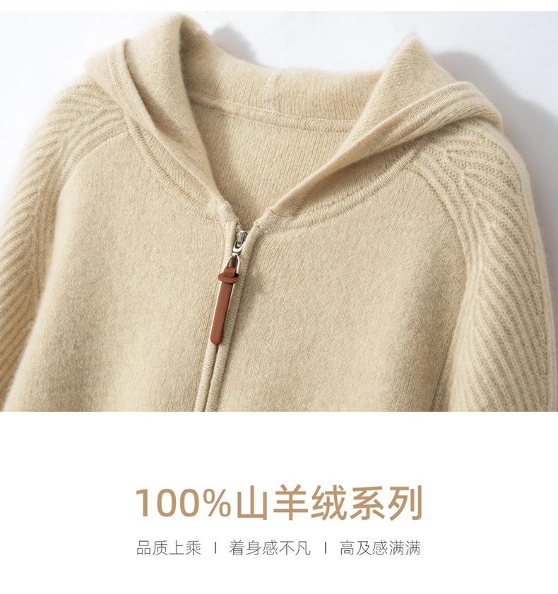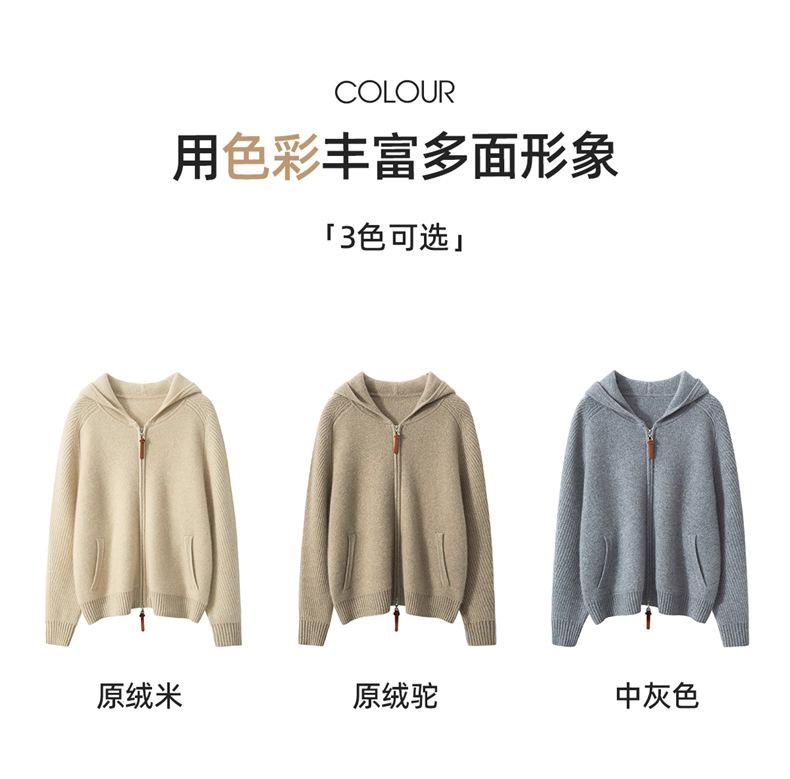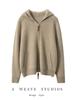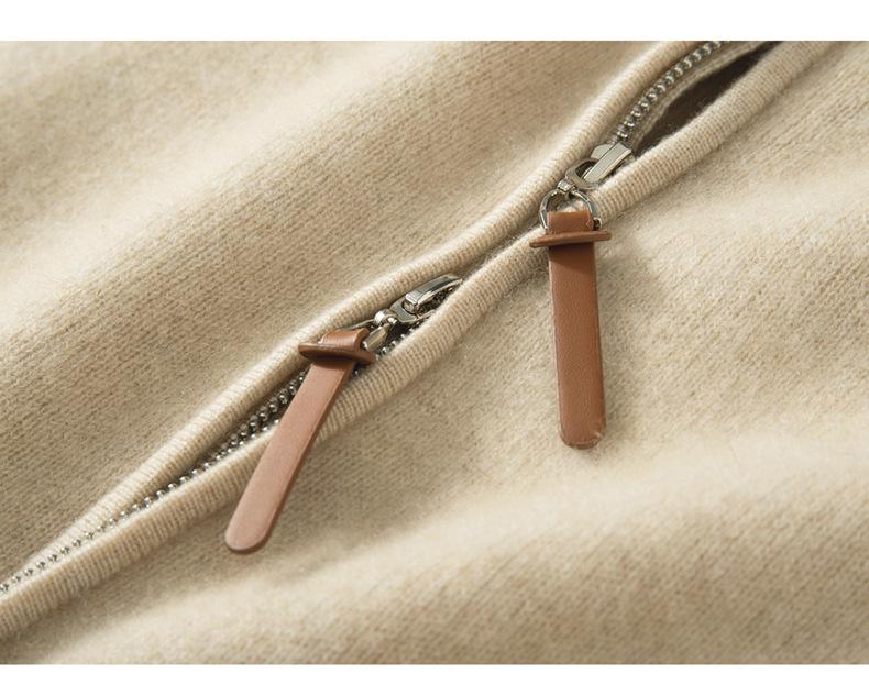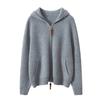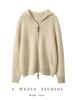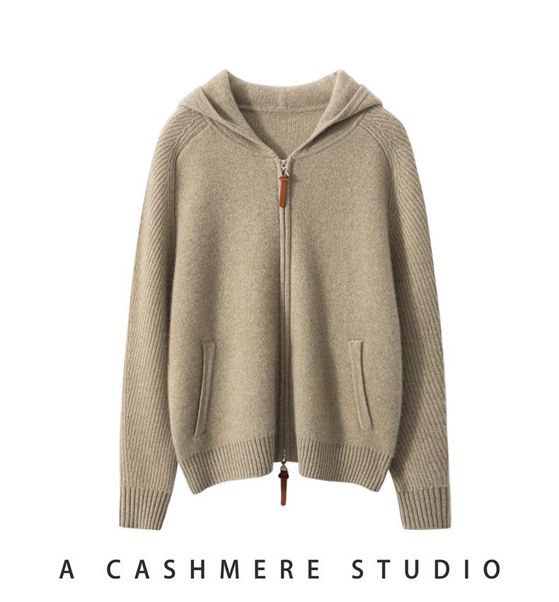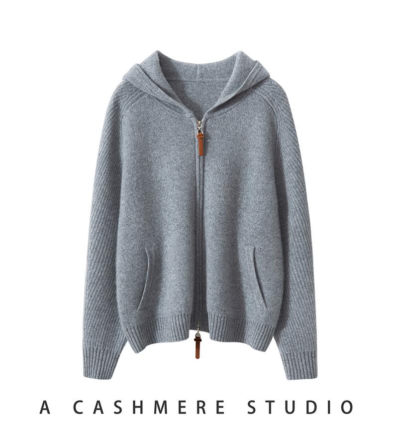 Cárdigan de Punto de Cachemira para Mujer Otoño/Invierno 2025 Nuevo Color Sólido con Capucha y Bolsillos Holgado Casual Doble Cremallera Ropa Exterior