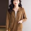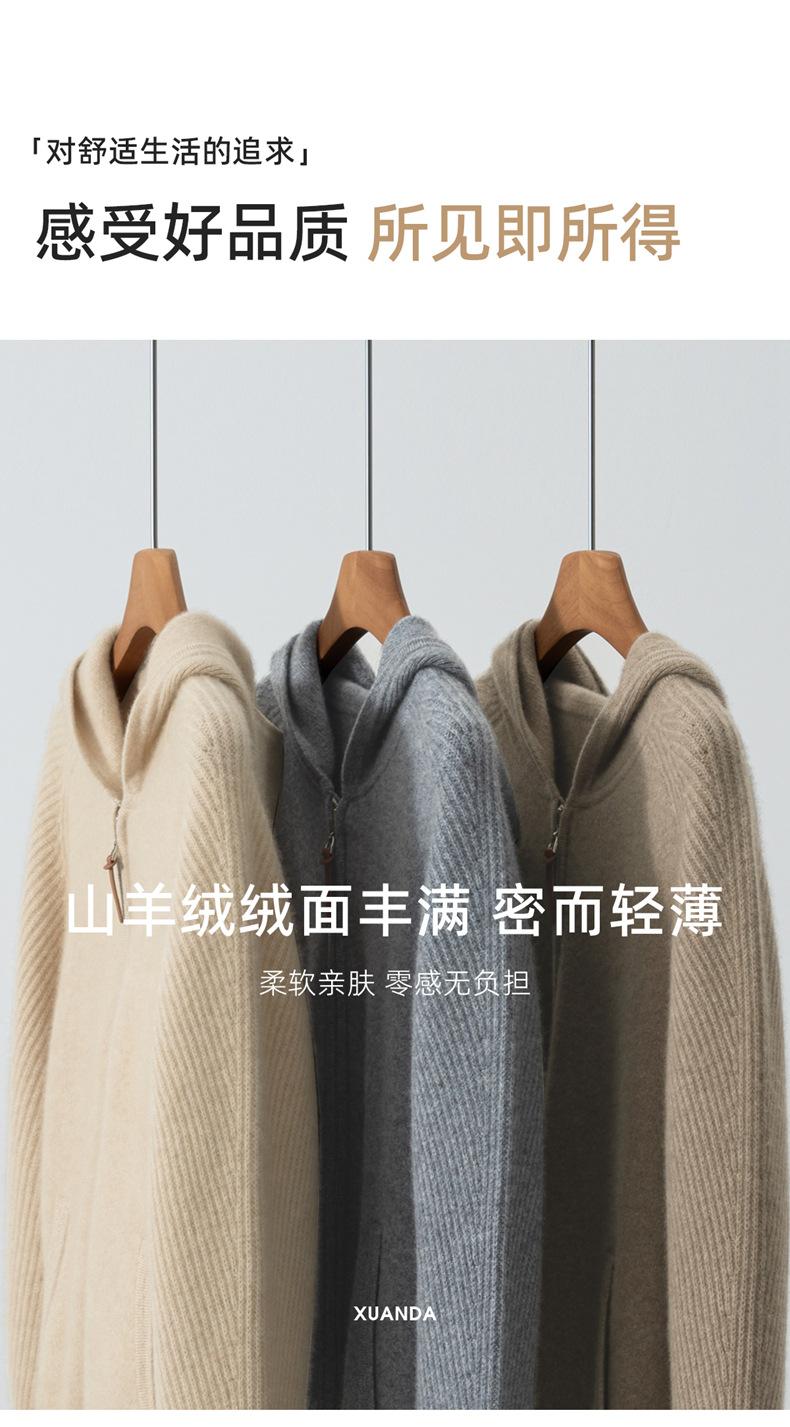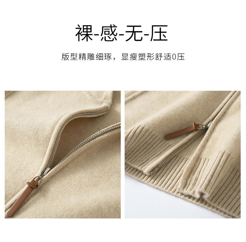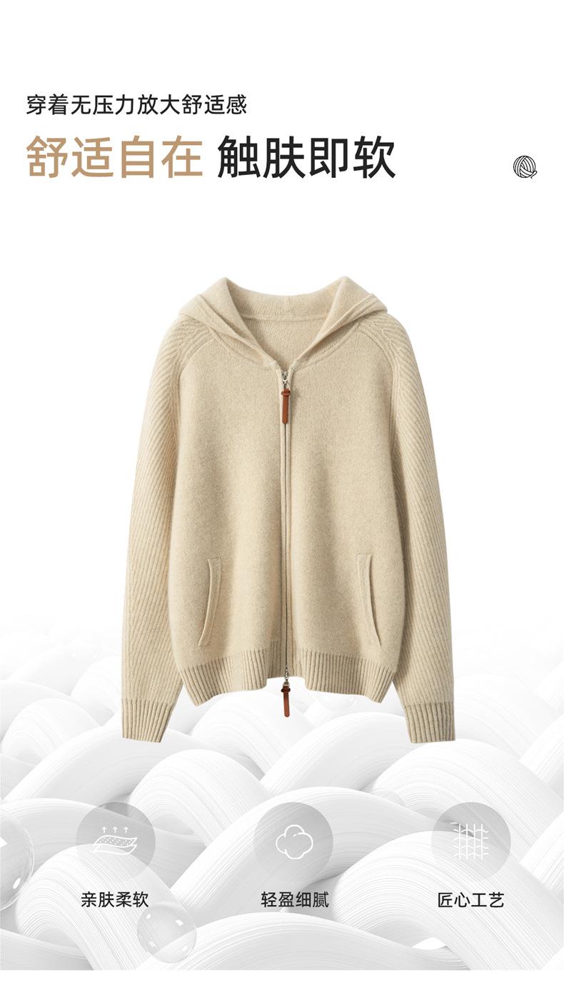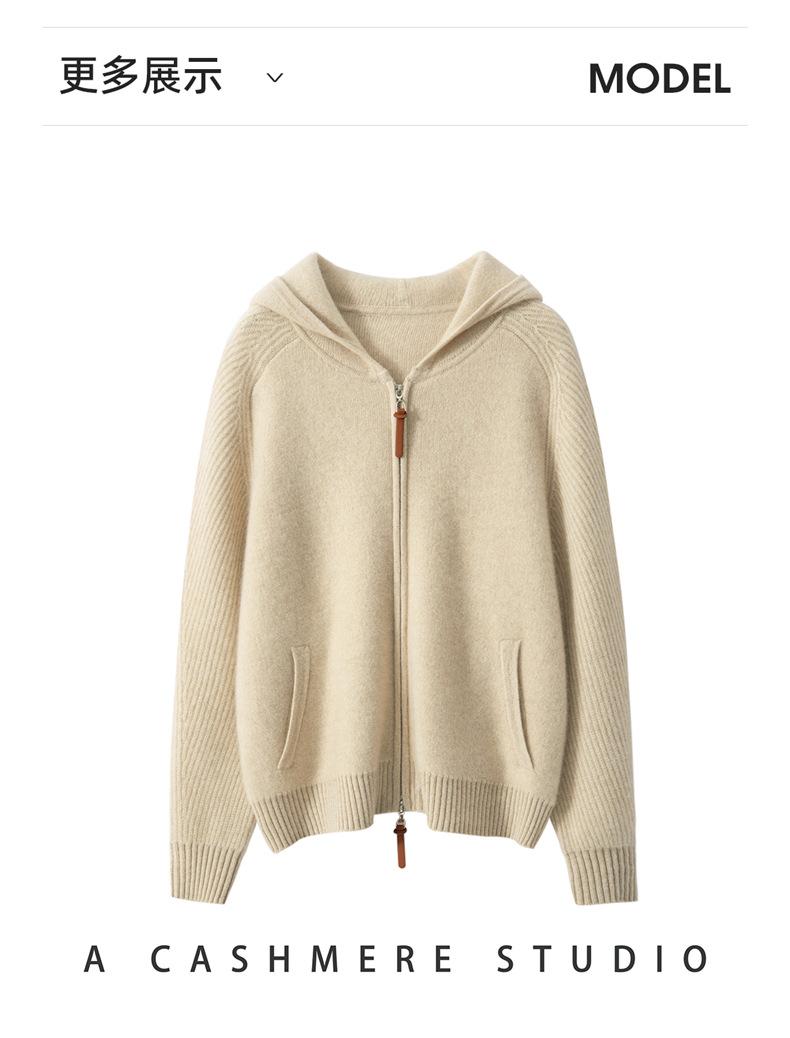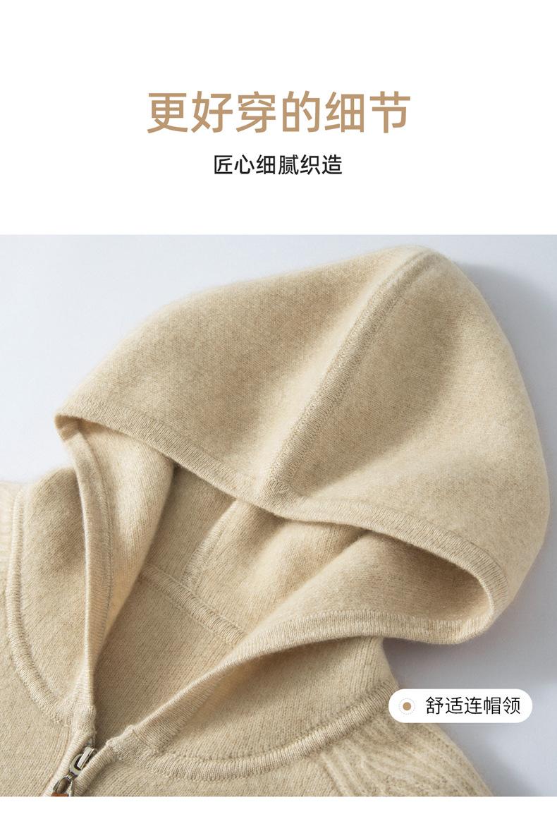 Cárdigan de Punto de Cachemira para Mujer Otoño/Invierno 2025 Nuevo Color Sólido con Capucha y Bolsillos Holgado Casual Doble Cremallera Ropa Exterior