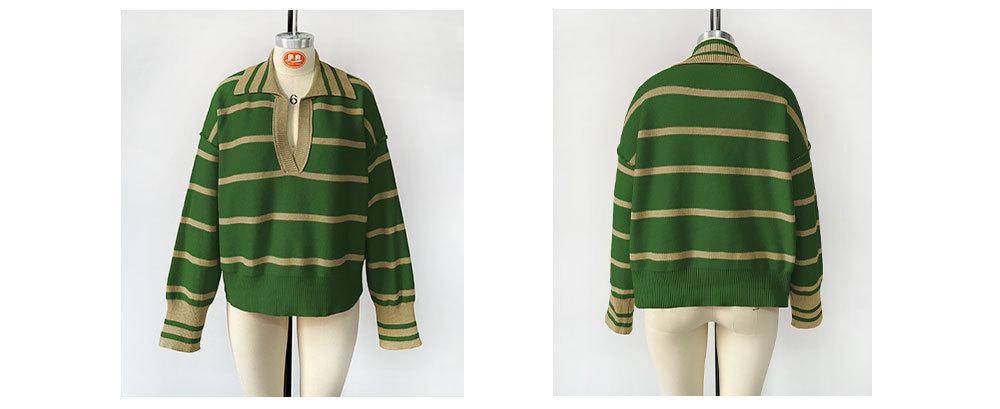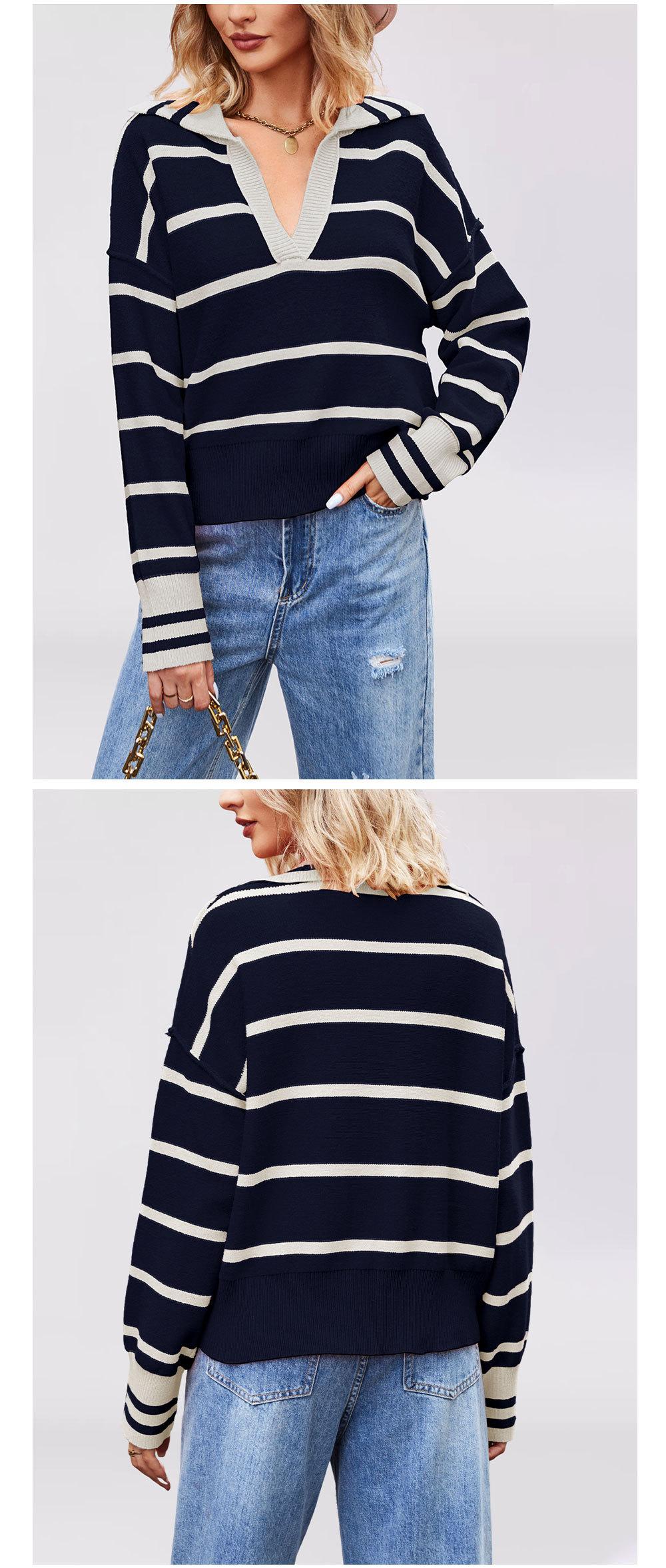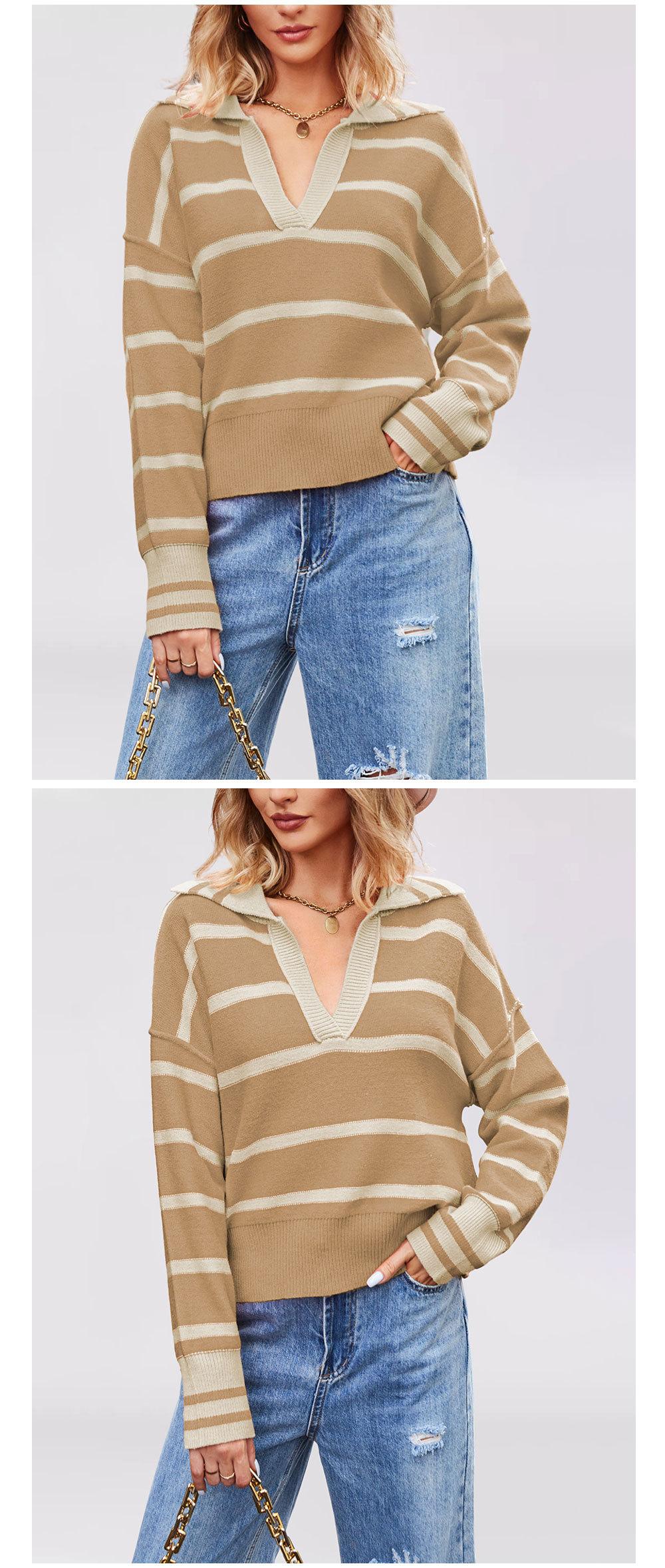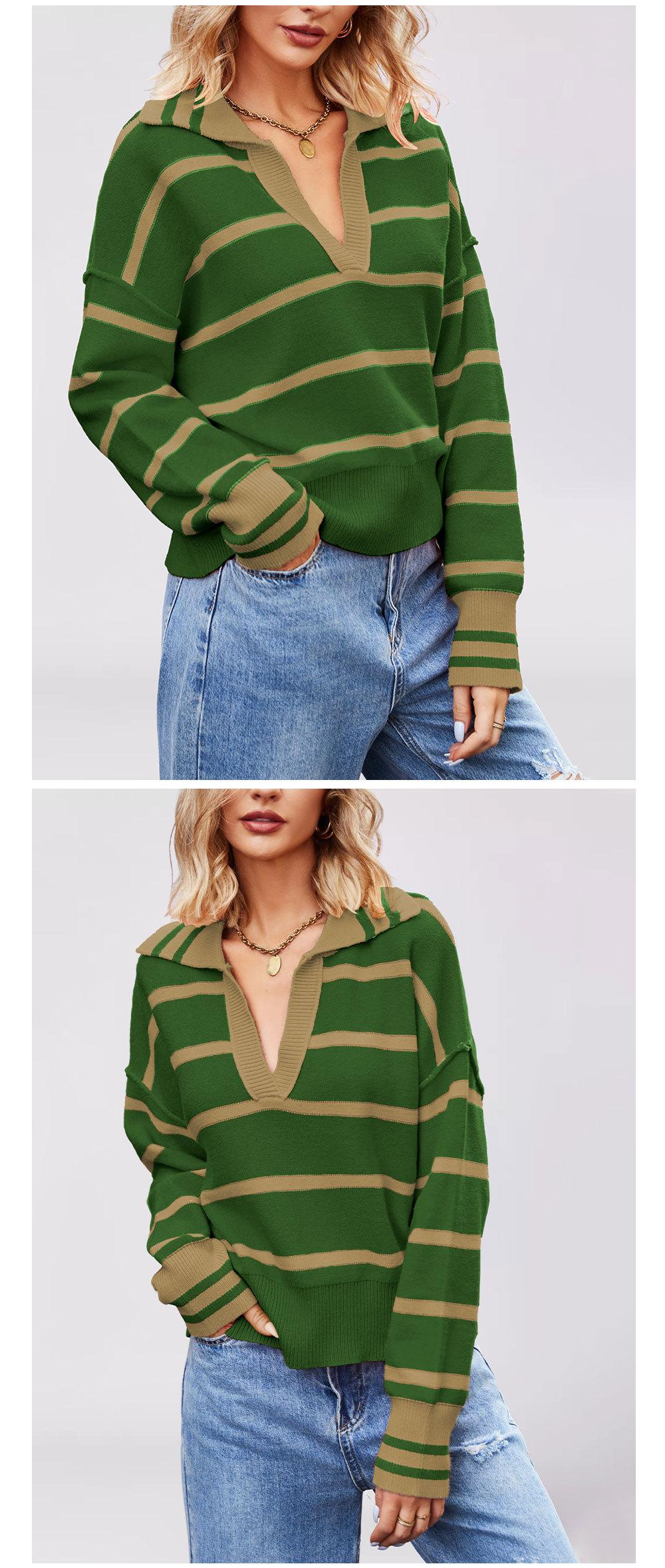 Otoño e Invierno Europeo y Americano Transfronterizo para Mujer Nueva Moda 2025 Moda Empalme Color Rayas Tejido de Punto Suelto Solapa