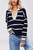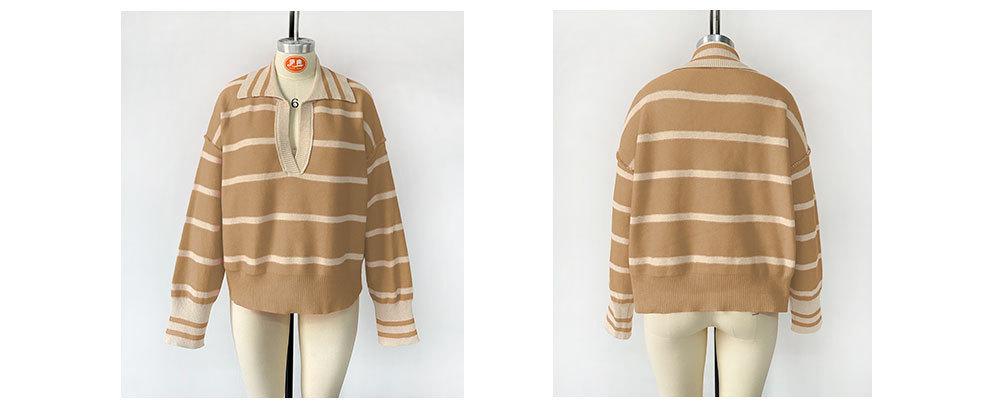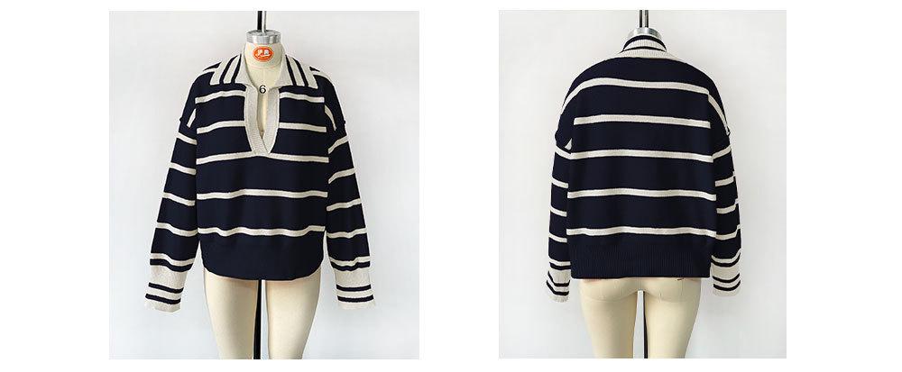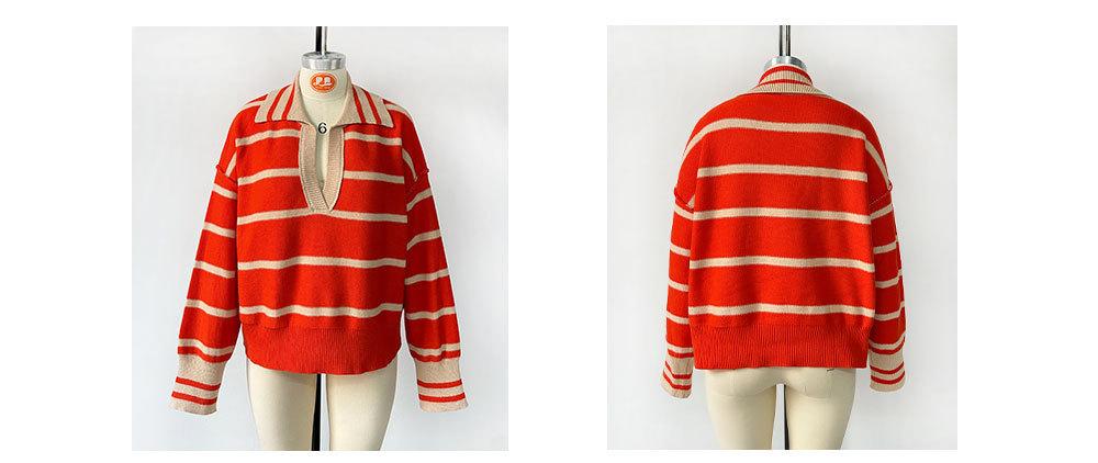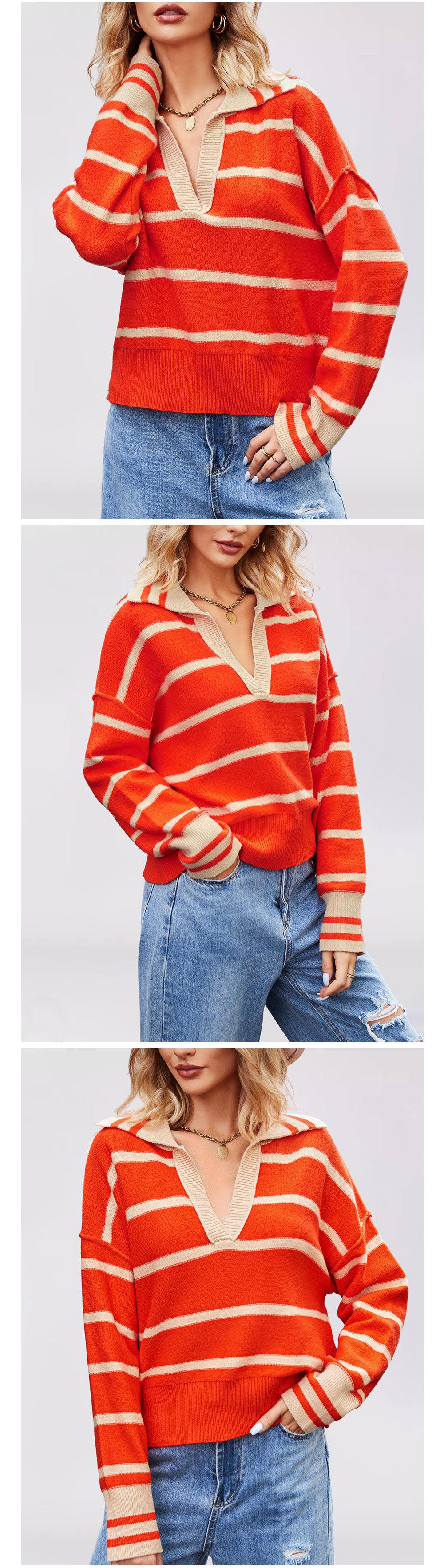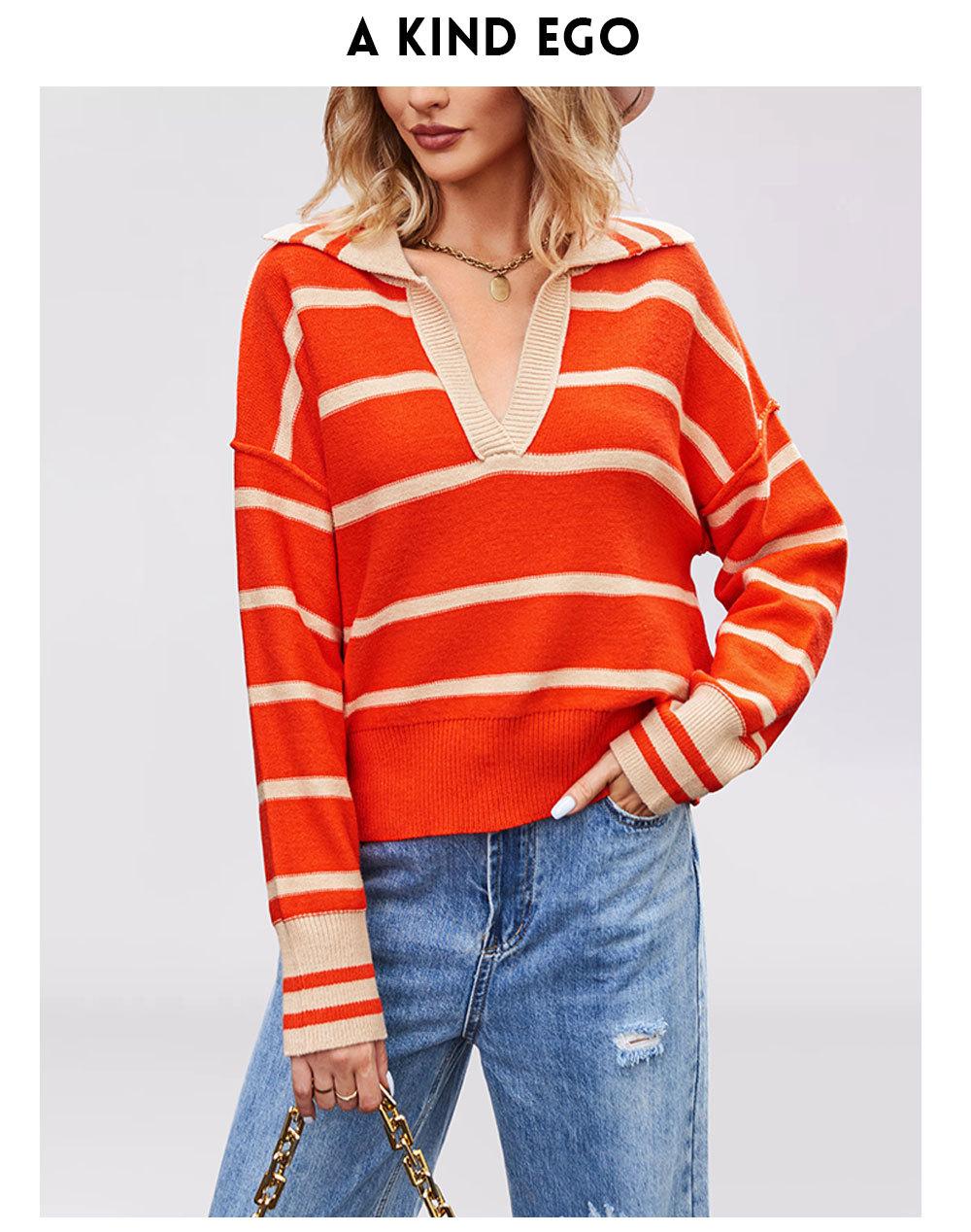 Otoño e Invierno Europeo y Americano Transfronterizo para Mujer Nueva Moda 2025 Moda Empalme Color Rayas Tejido de Punto Suelto Solapa