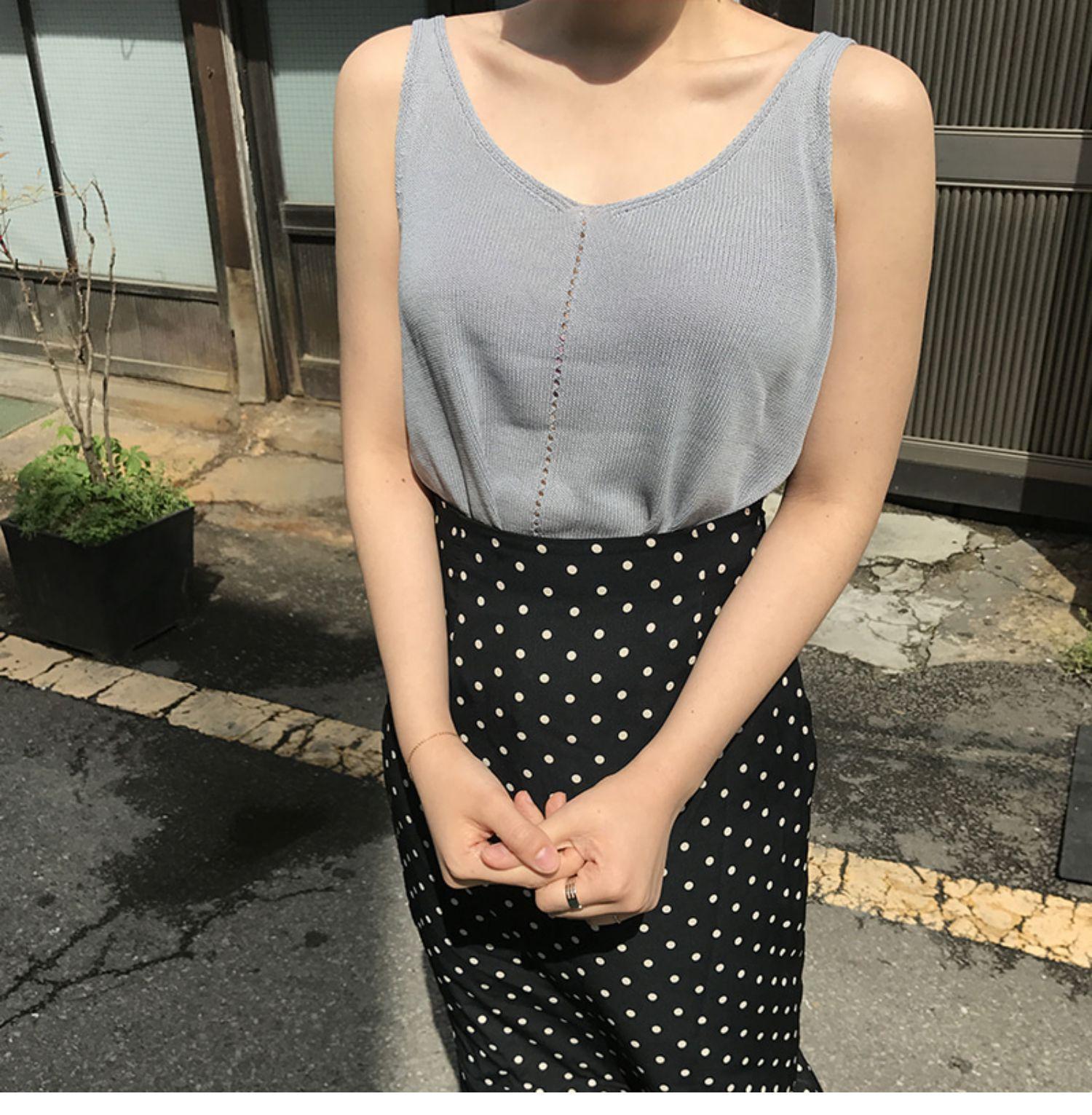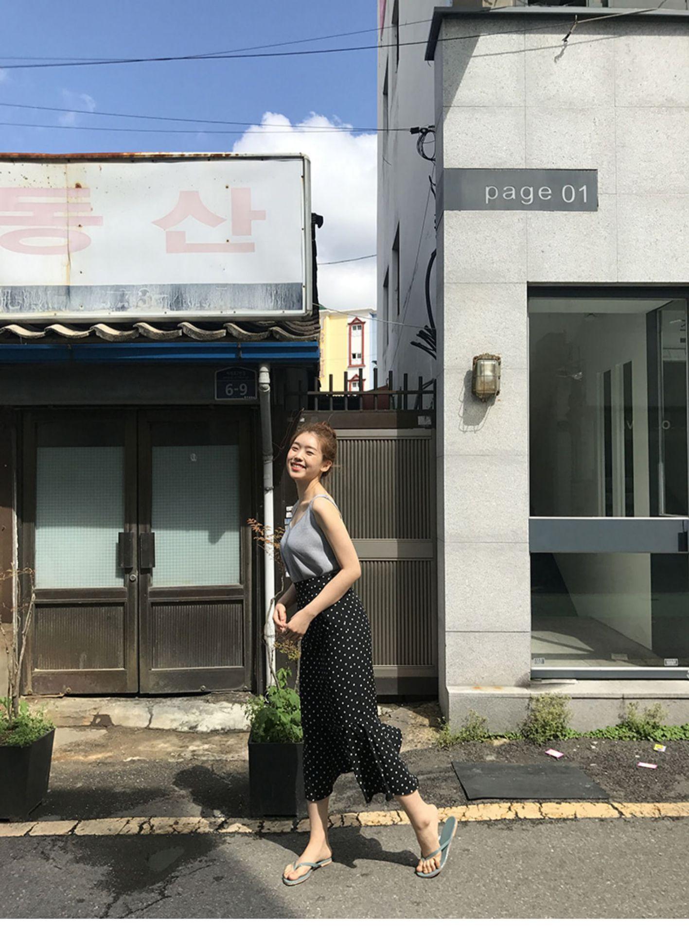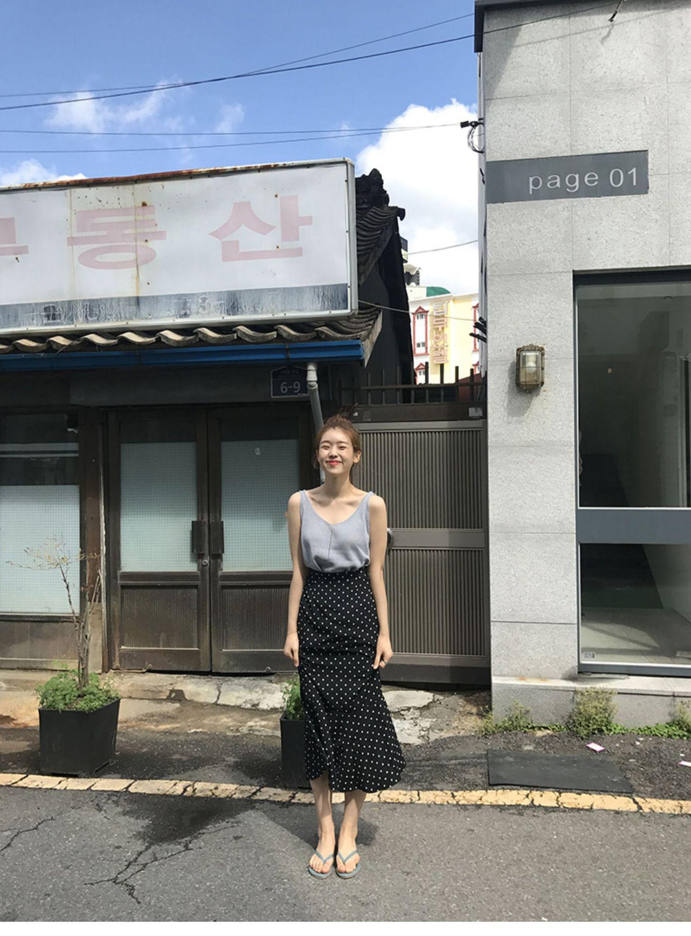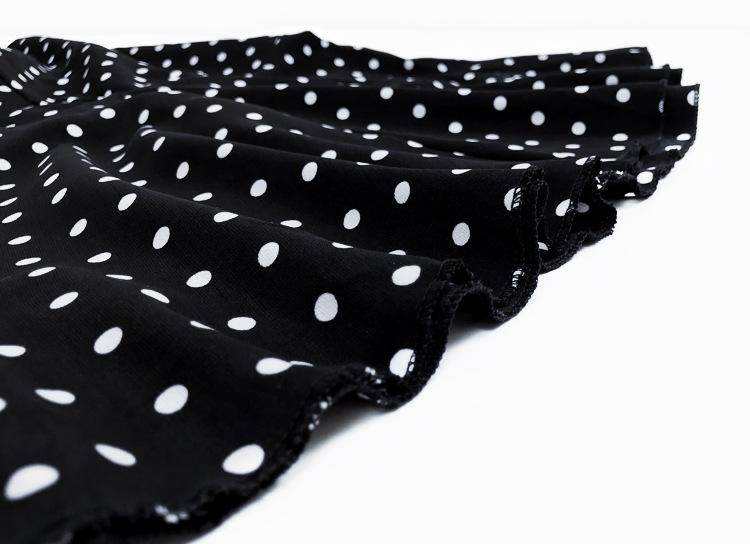 Falda Cola de Pez para Mujer Nueva Verano Largo Medio Retro Estilo Hong Kong Cubre Caderas Cintura Alta Falda Larga Negra Lunares Falda de Gasa