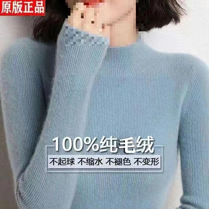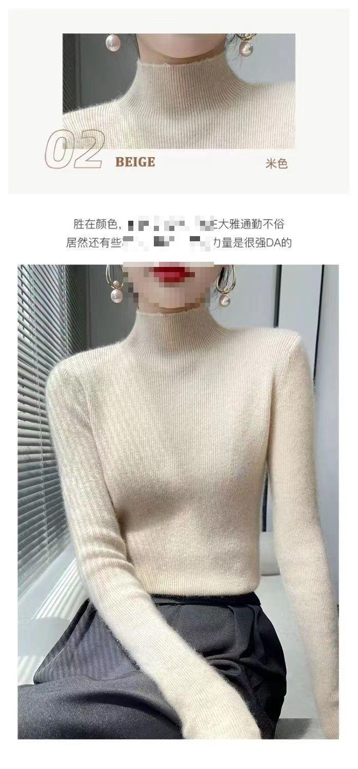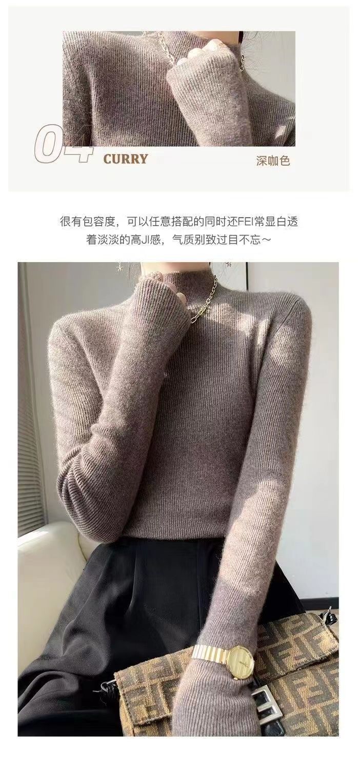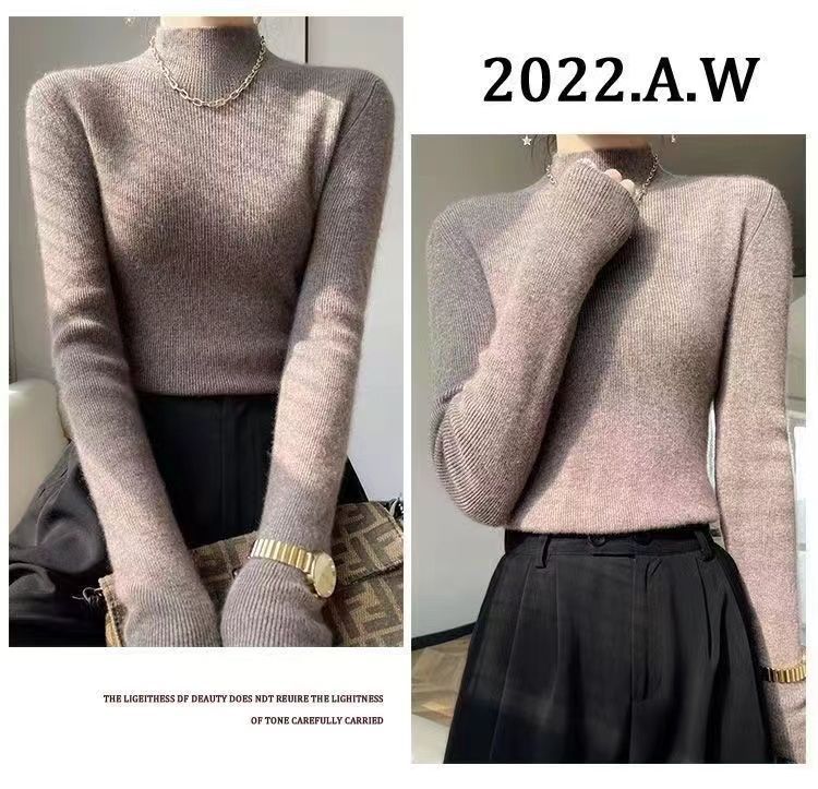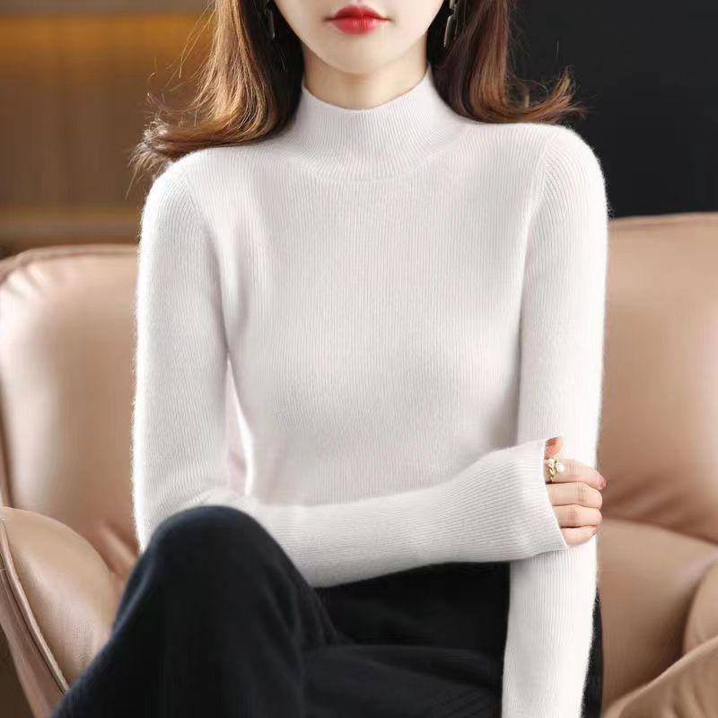 Suéter de punto de gama alta de cuello medio alto y manga larga para mujer, otoño e invierno, versátil, moderno, ajustado y adelgazante, top interior de invierno