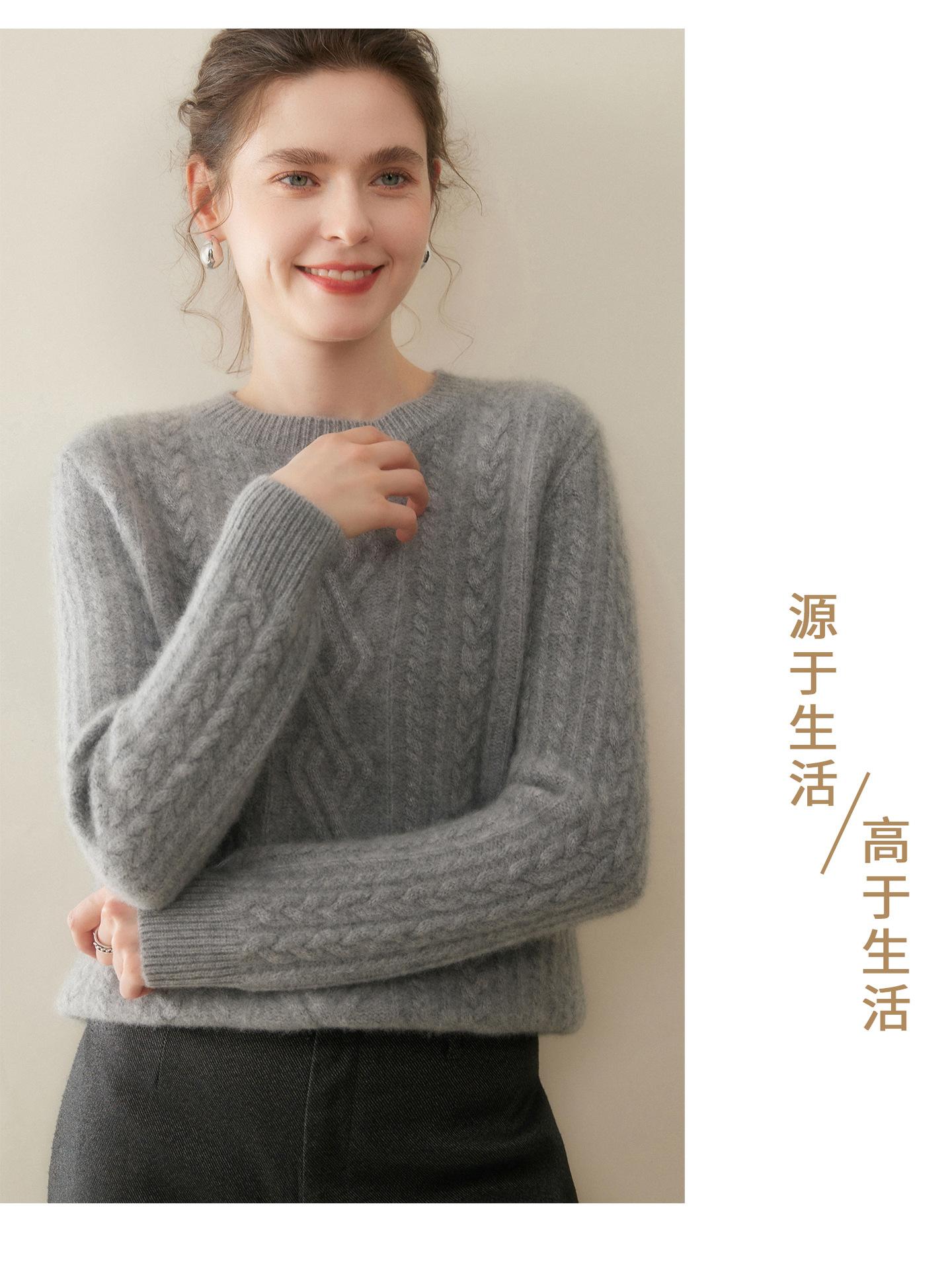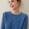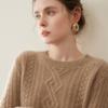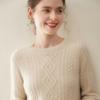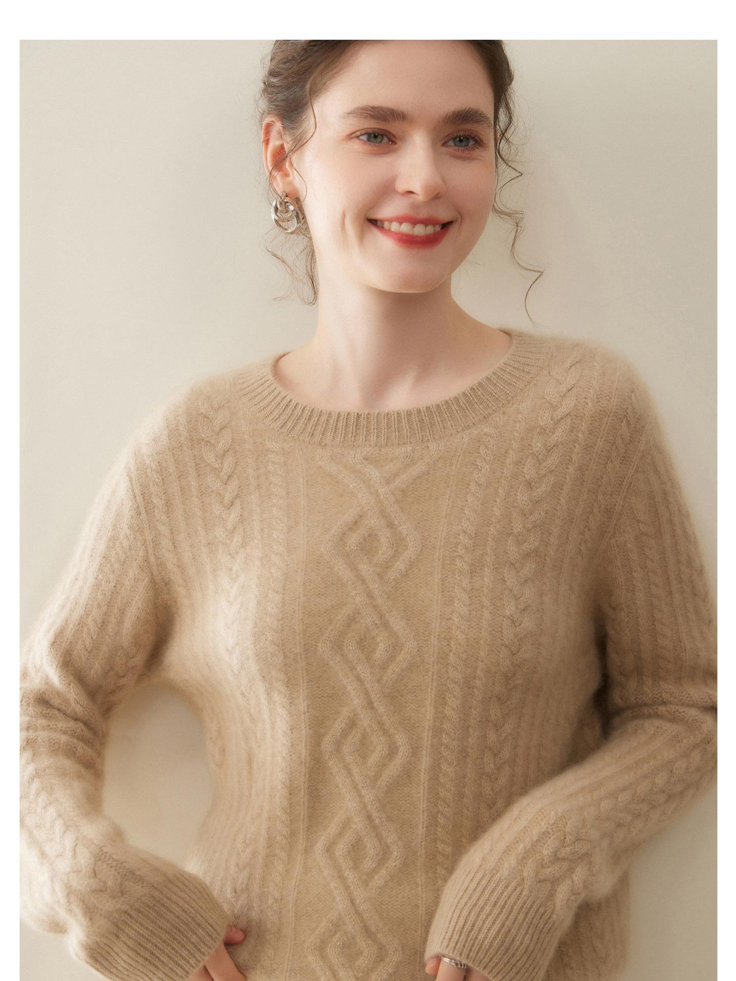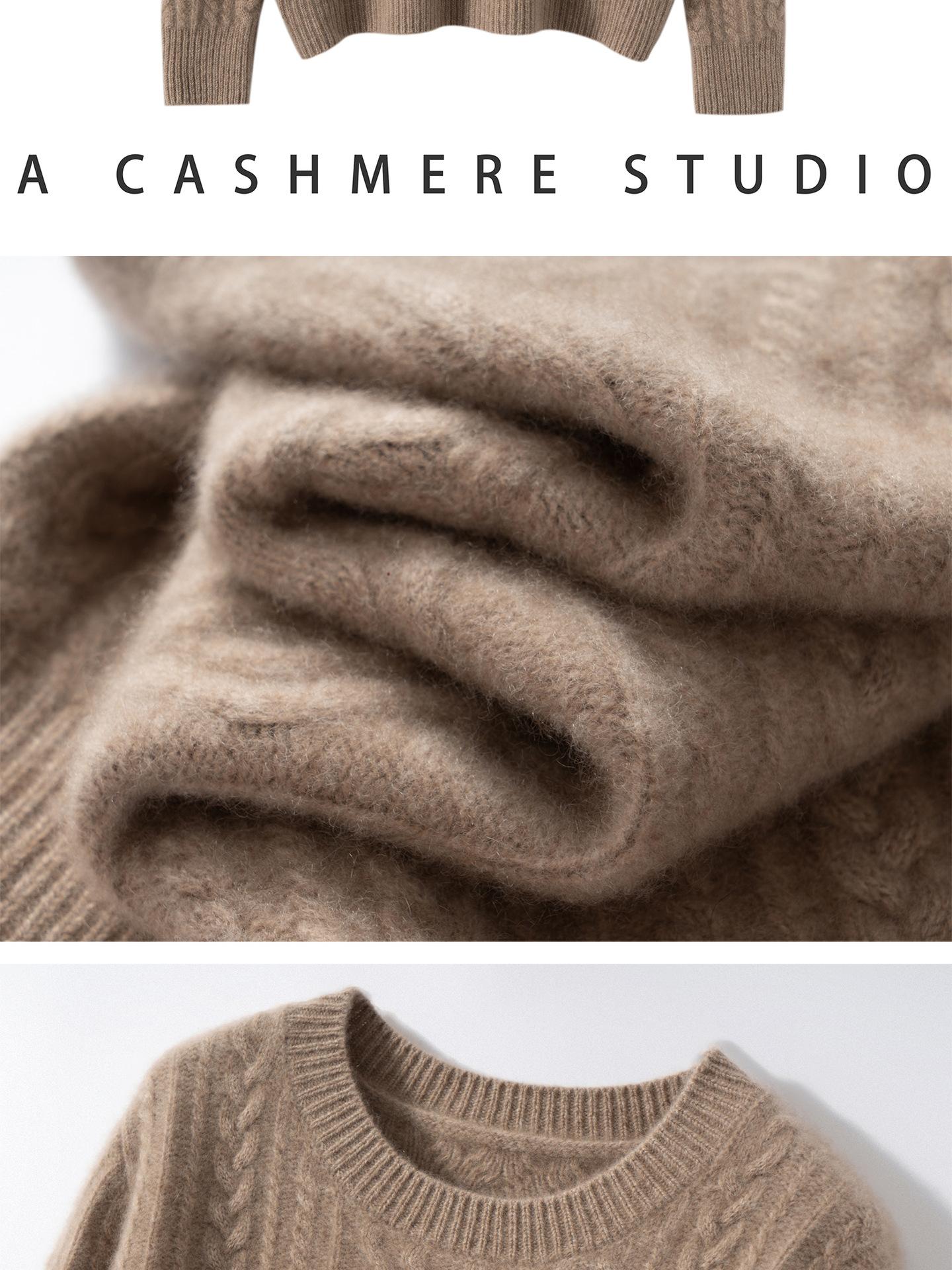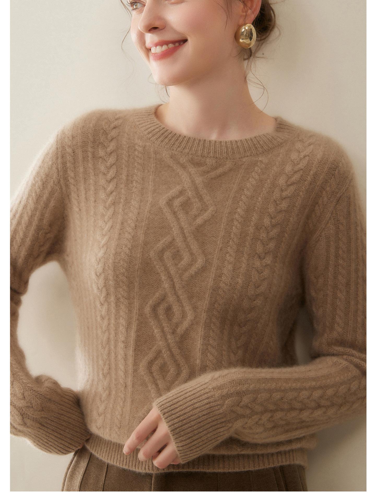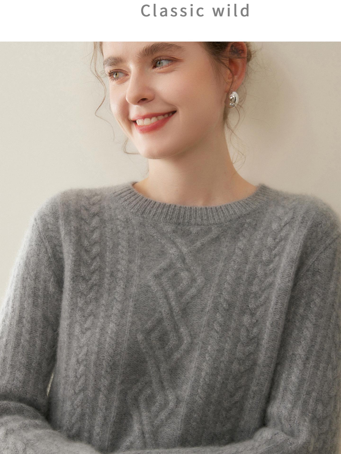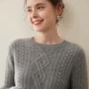 Suéter de Cachemira de Punto Trenzado de Cuello Redondo para Otoño e Invierno para Mujer, Jersey Holgado, Suéter Grueso Básico de Punto