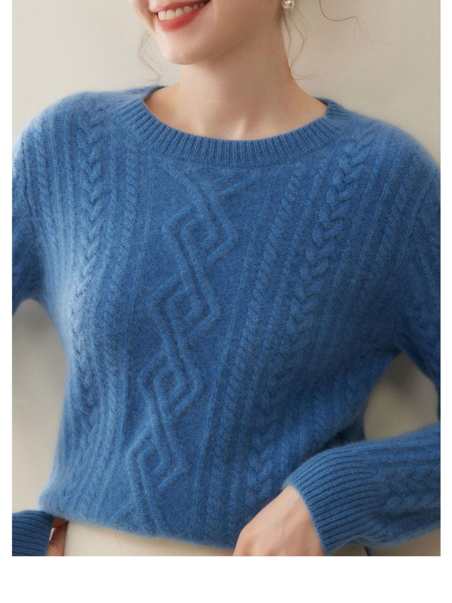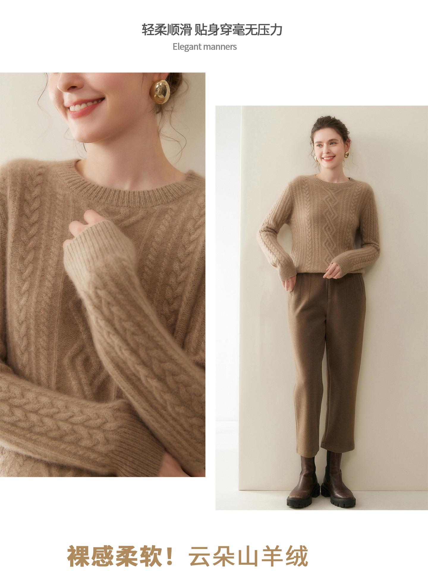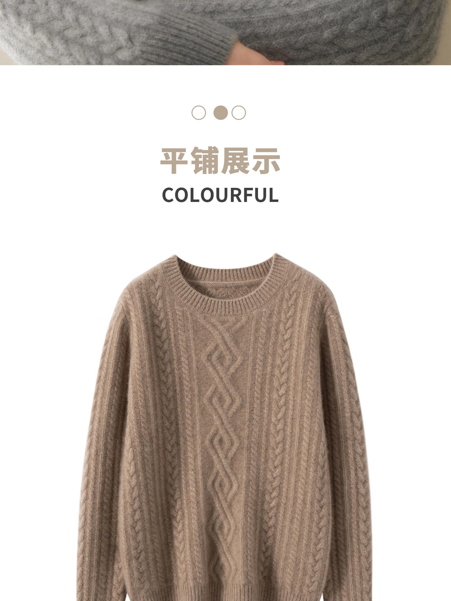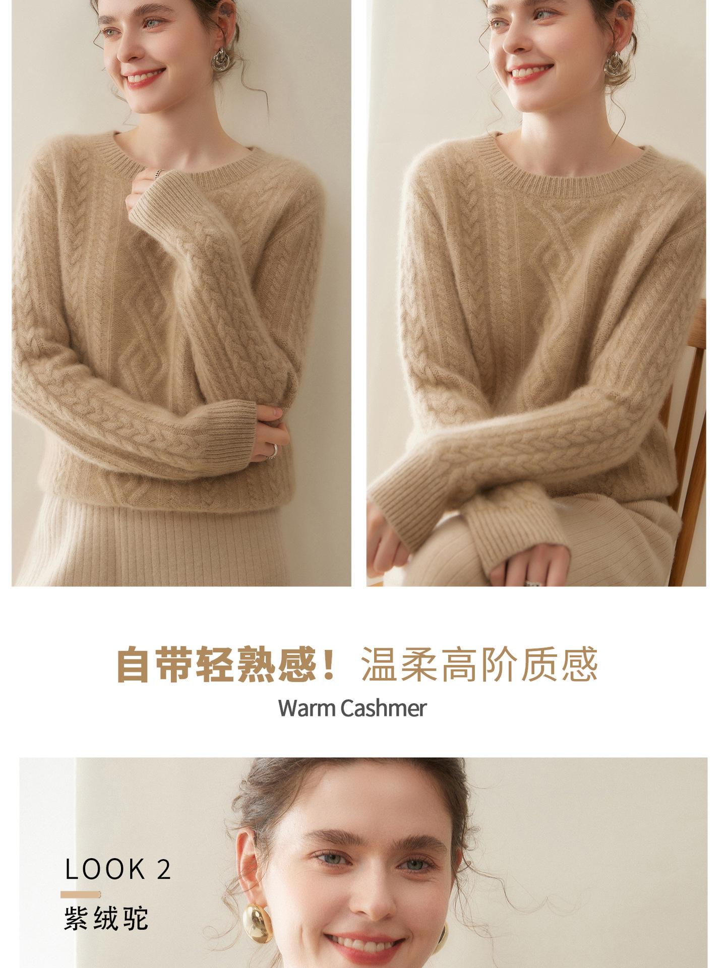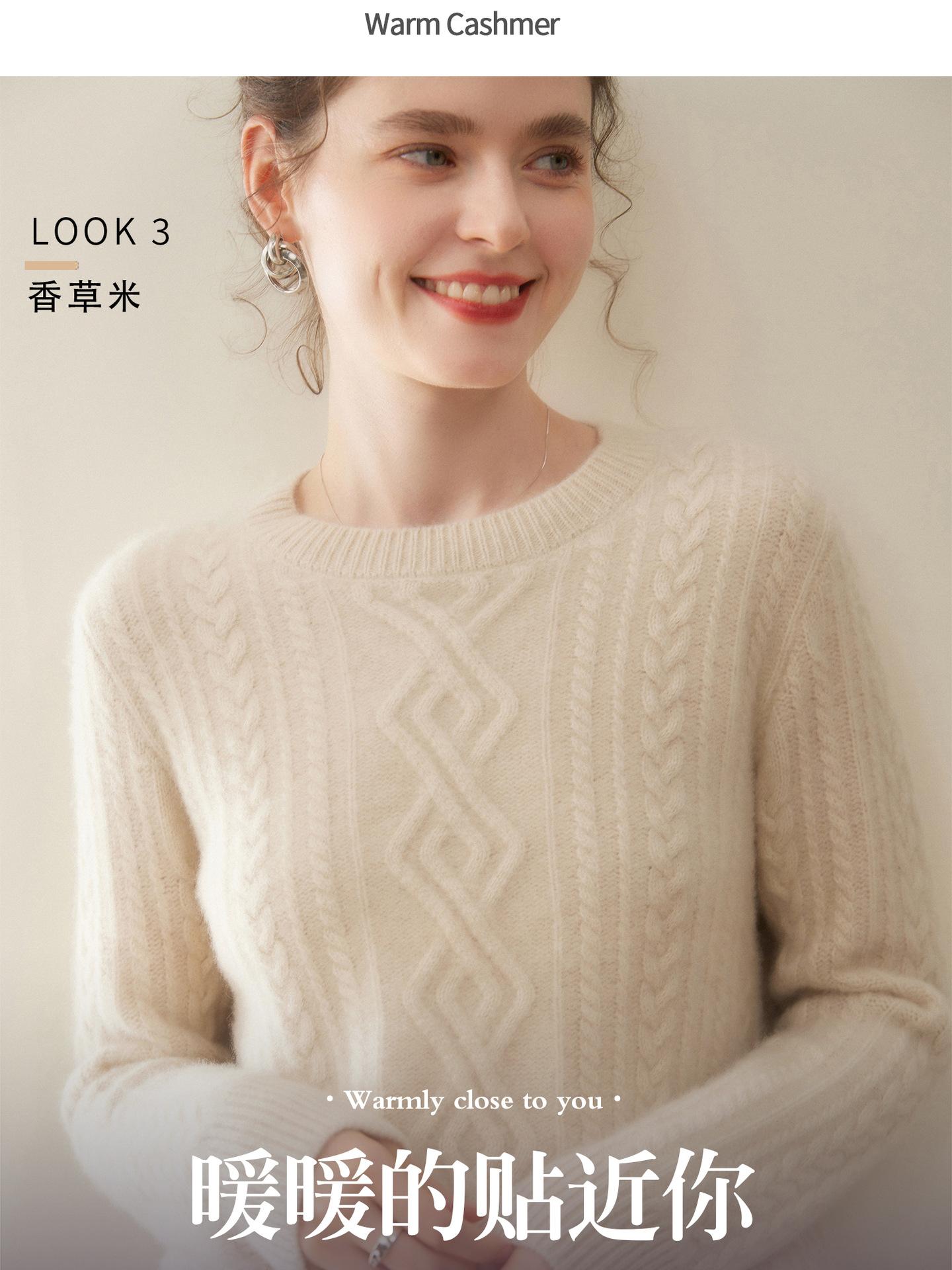 Suéter de Cachemira de Punto Trenzado de Cuello Redondo para Otoño e Invierno para Mujer, Jersey Holgado, Suéter Grueso Básico de Punto