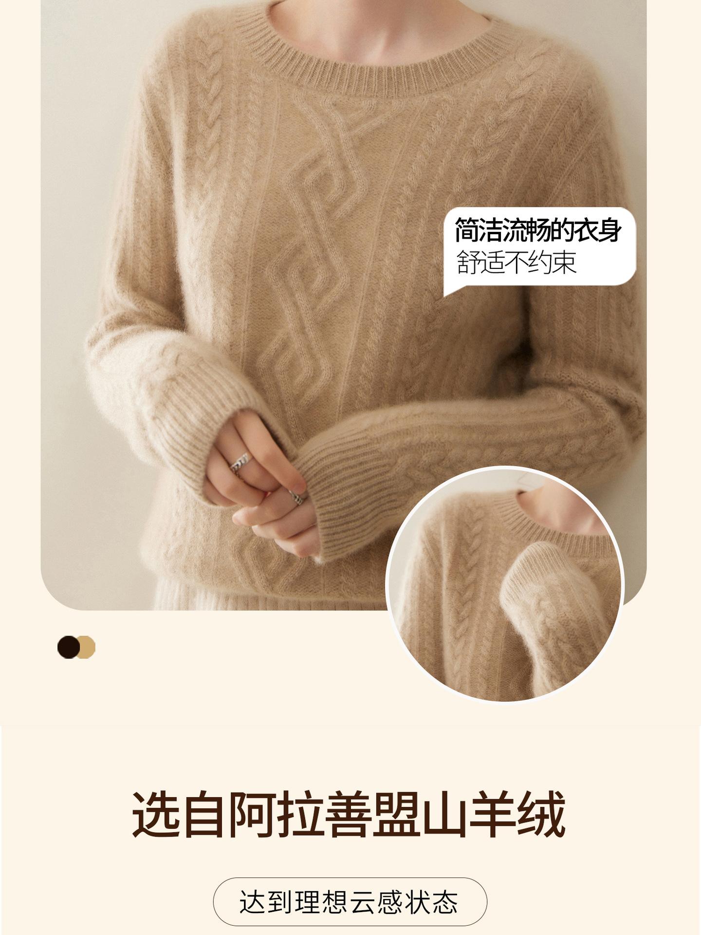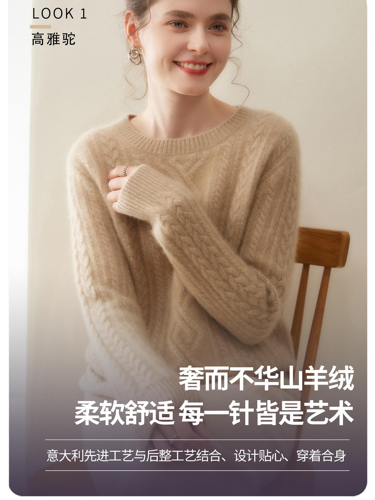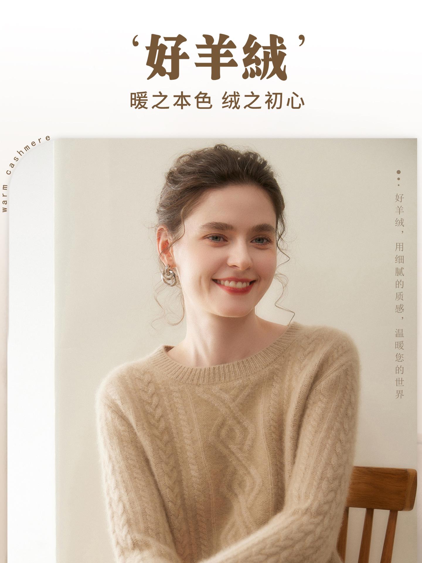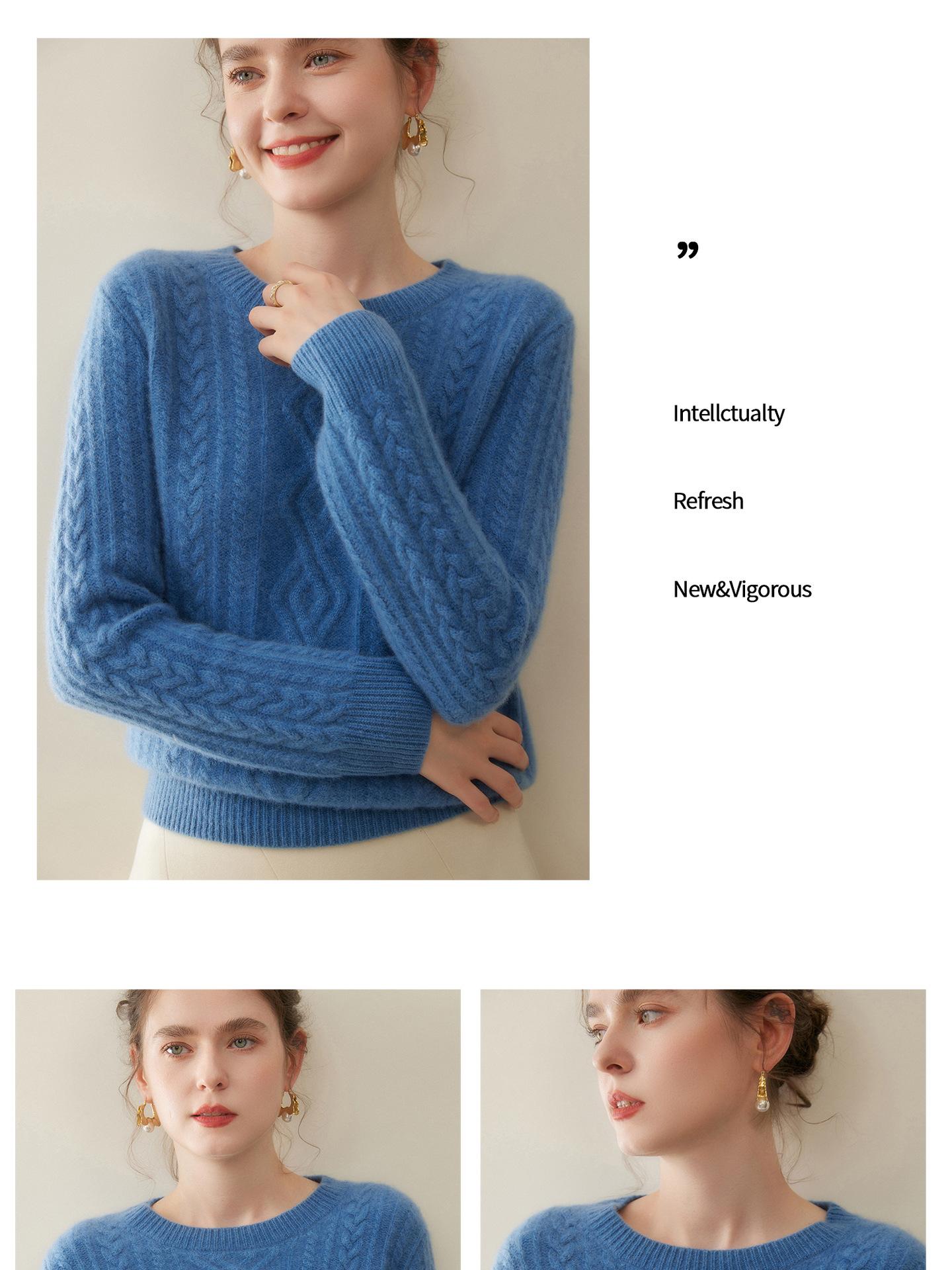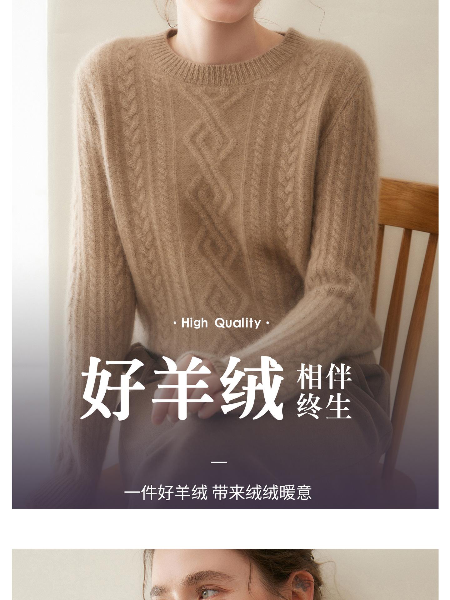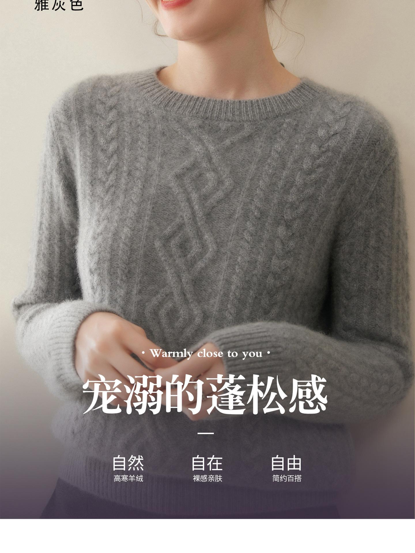 Suéter de Cachemira de Punto Trenzado de Cuello Redondo para Otoño e Invierno para Mujer, Jersey Holgado, Suéter Grueso Básico de Punto