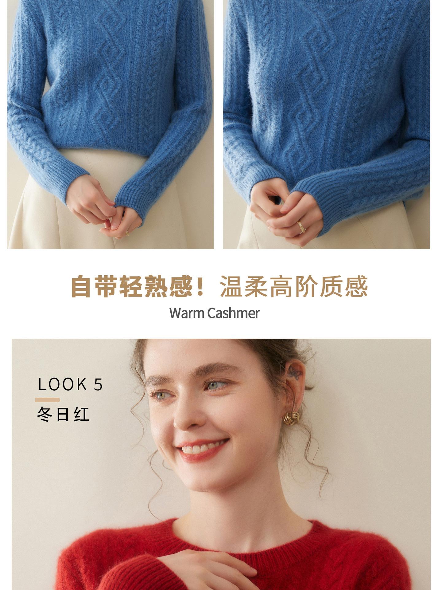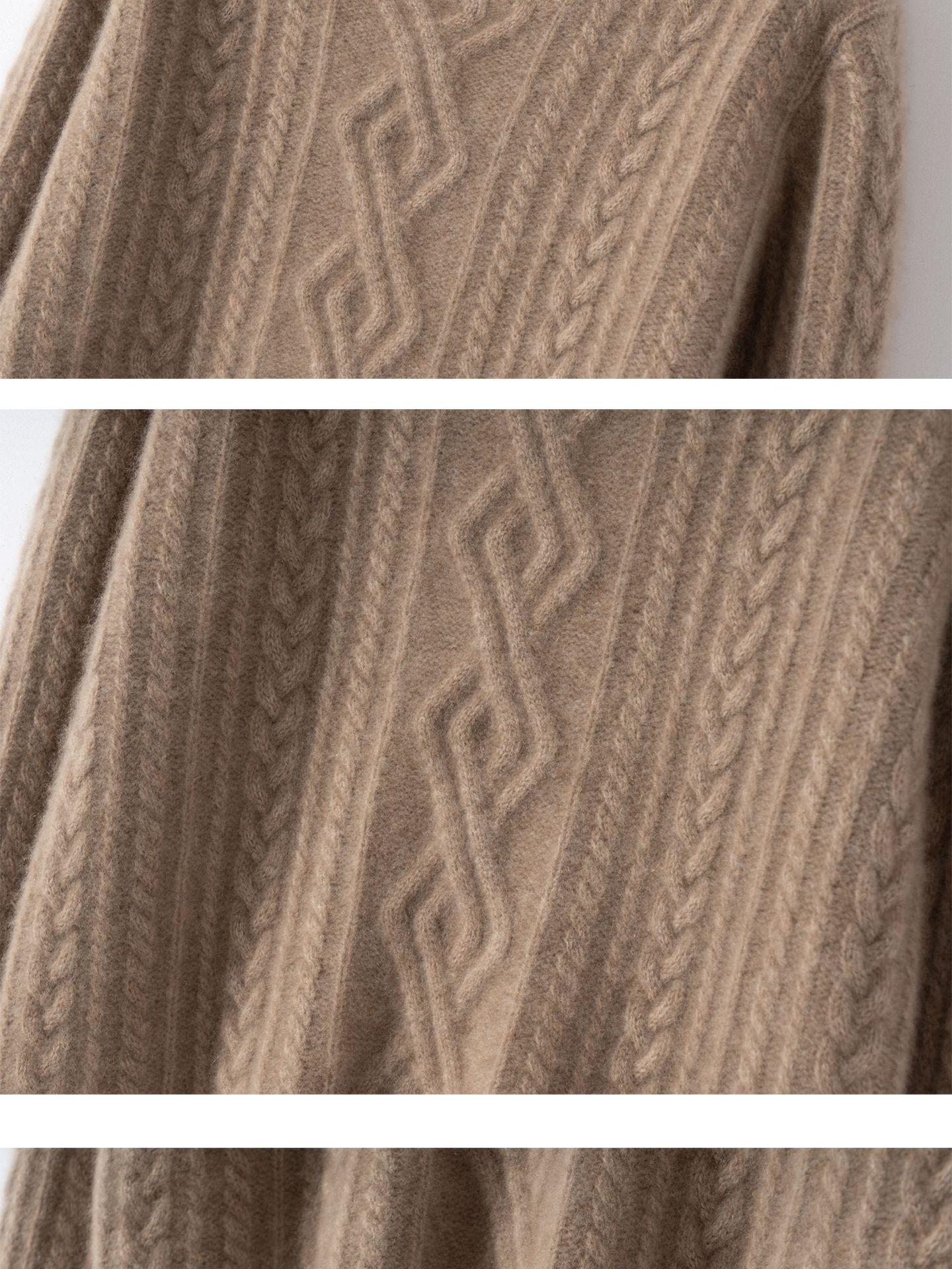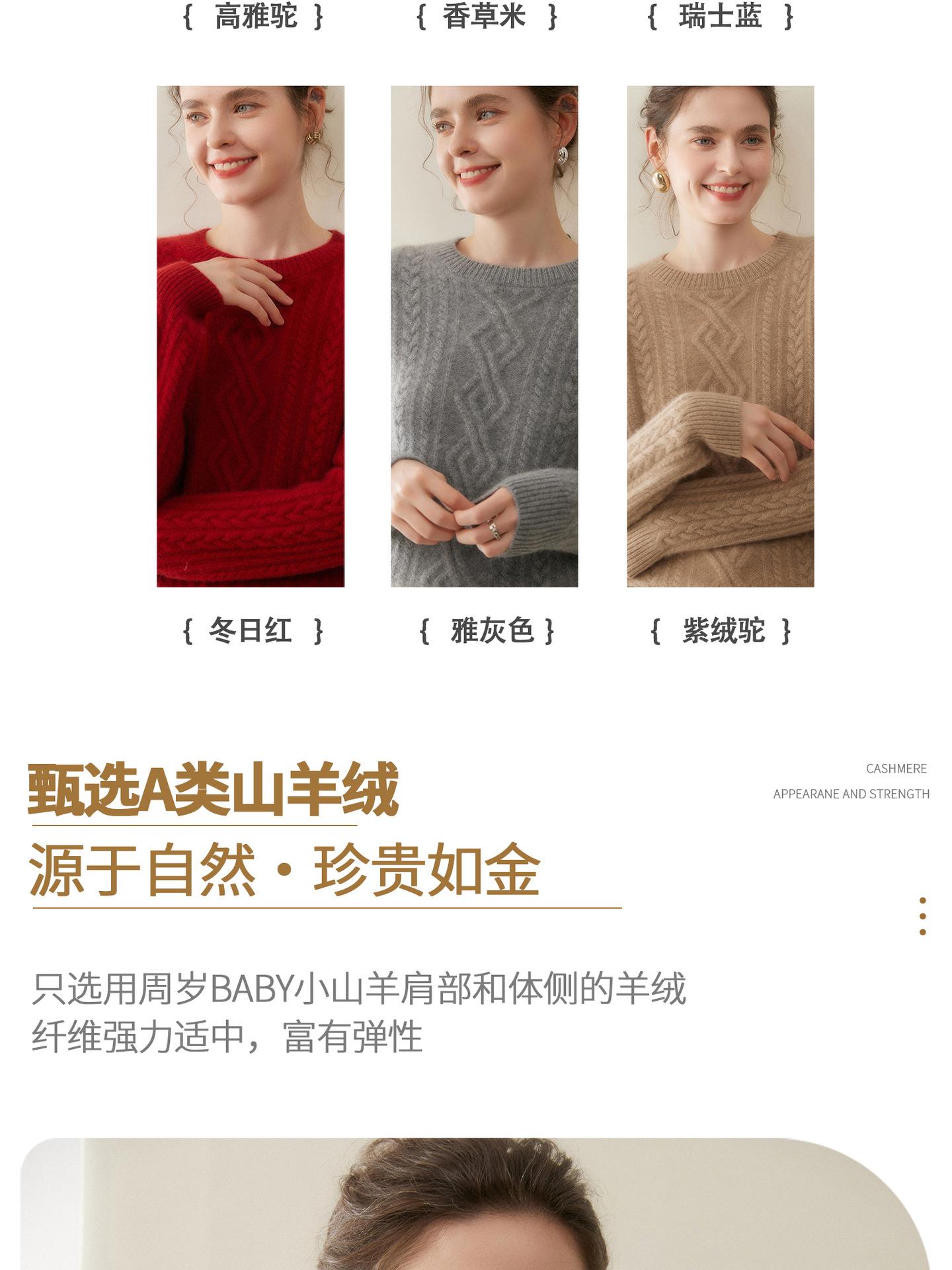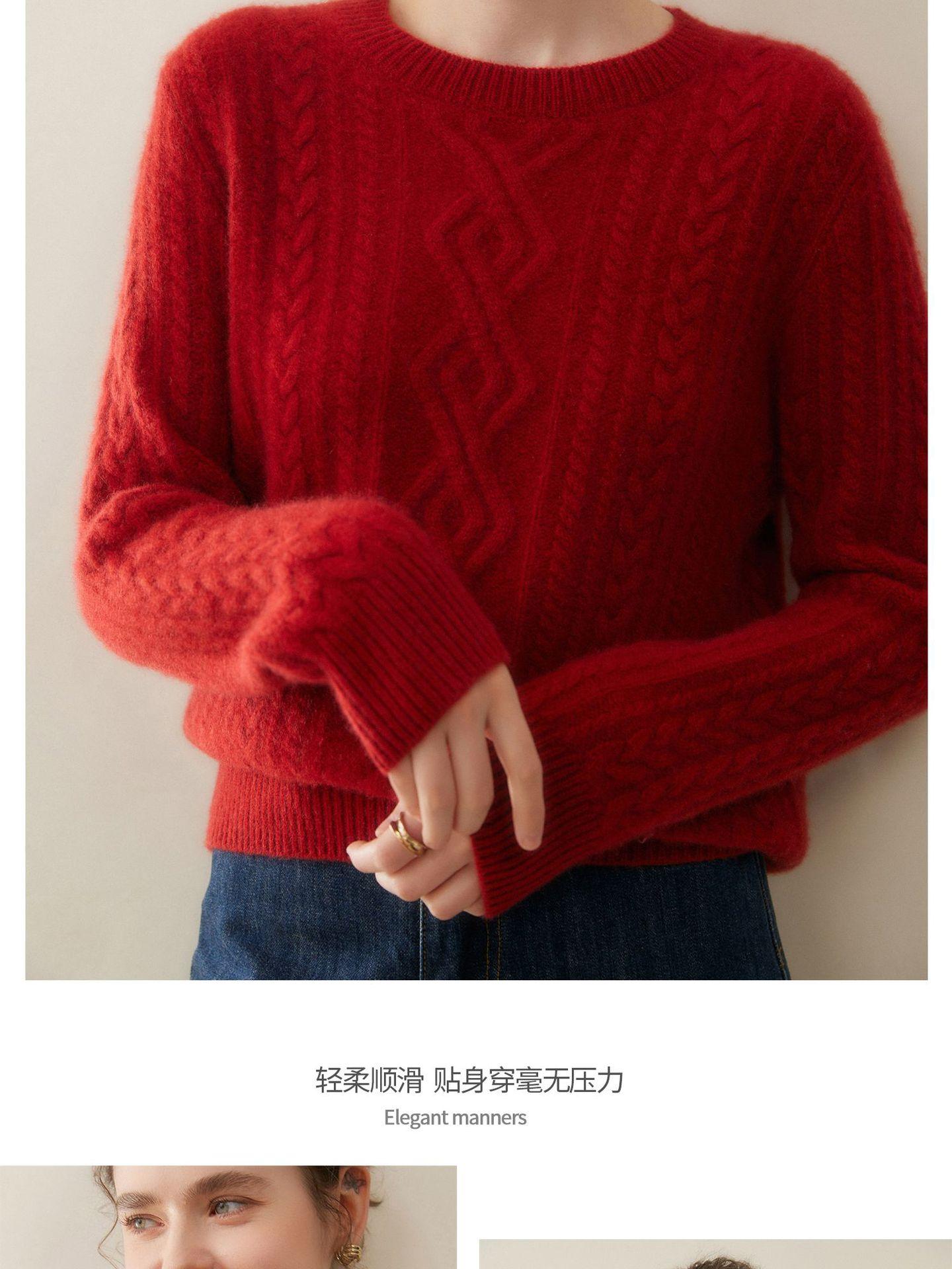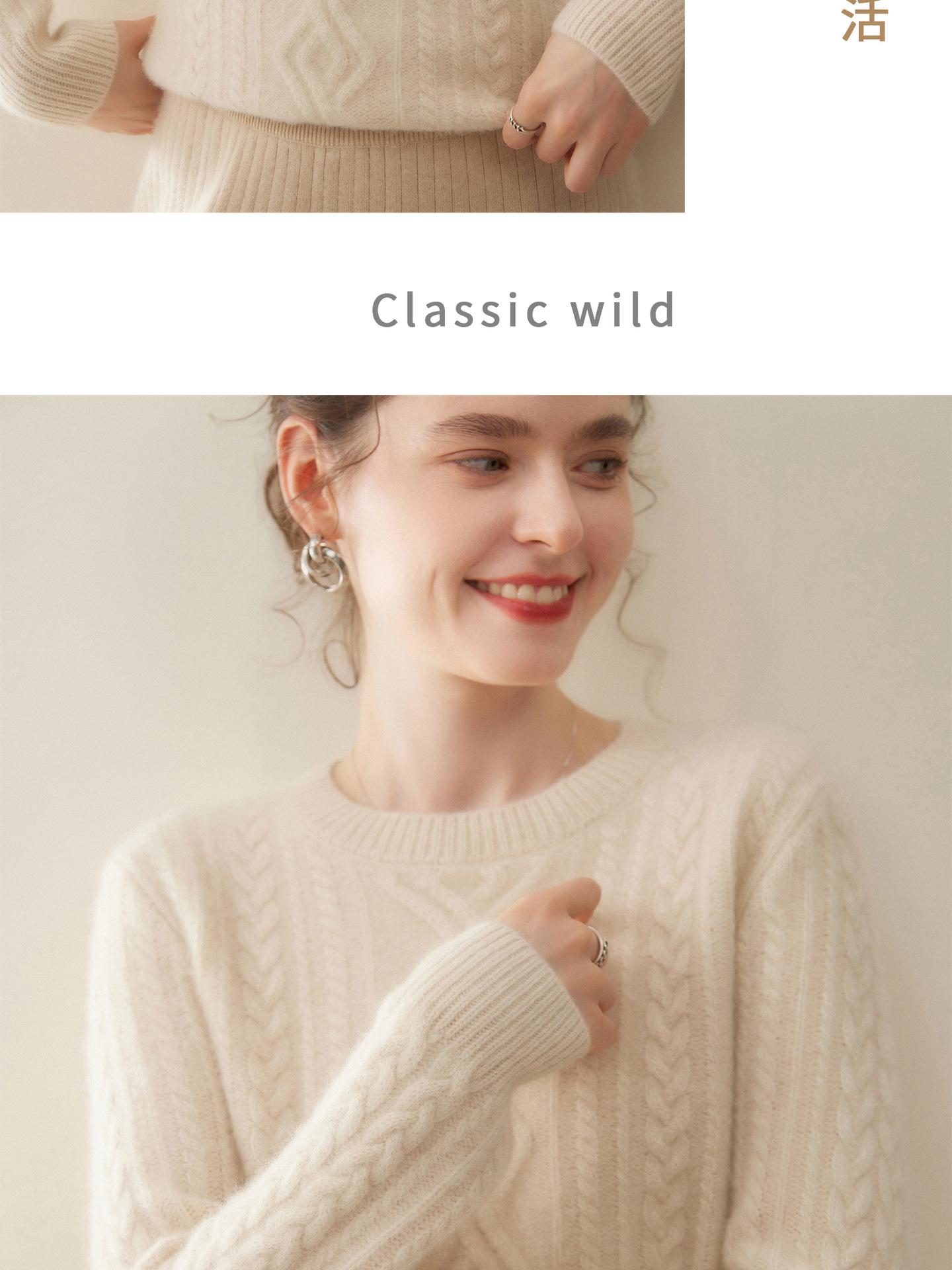 Suéter de Cachemira de Punto Trenzado de Cuello Redondo para Otoño e Invierno para Mujer, Jersey Holgado, Suéter Grueso Básico de Punto