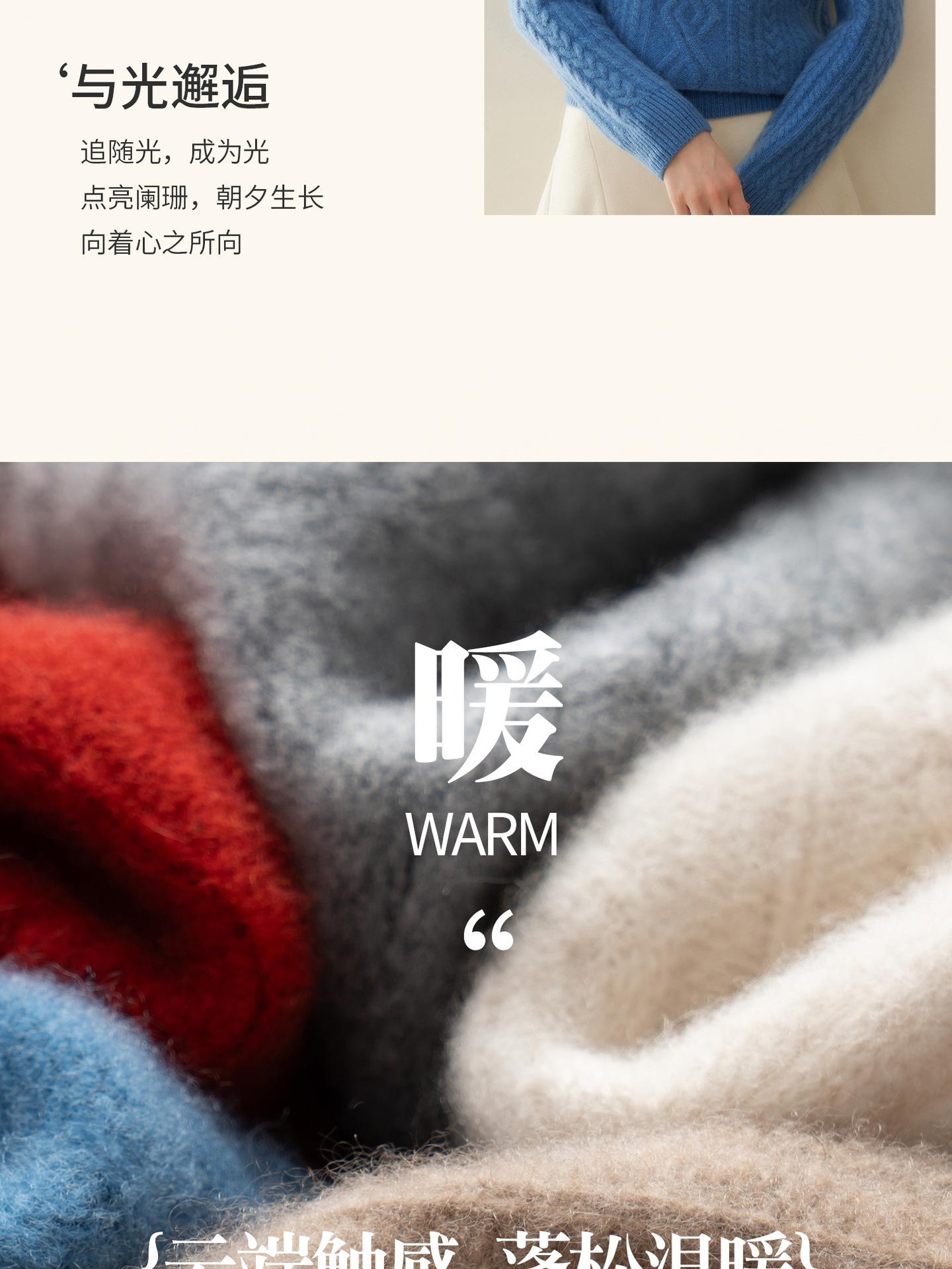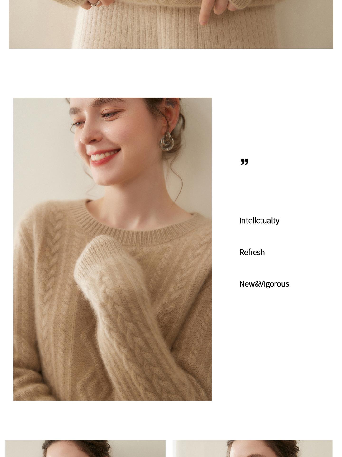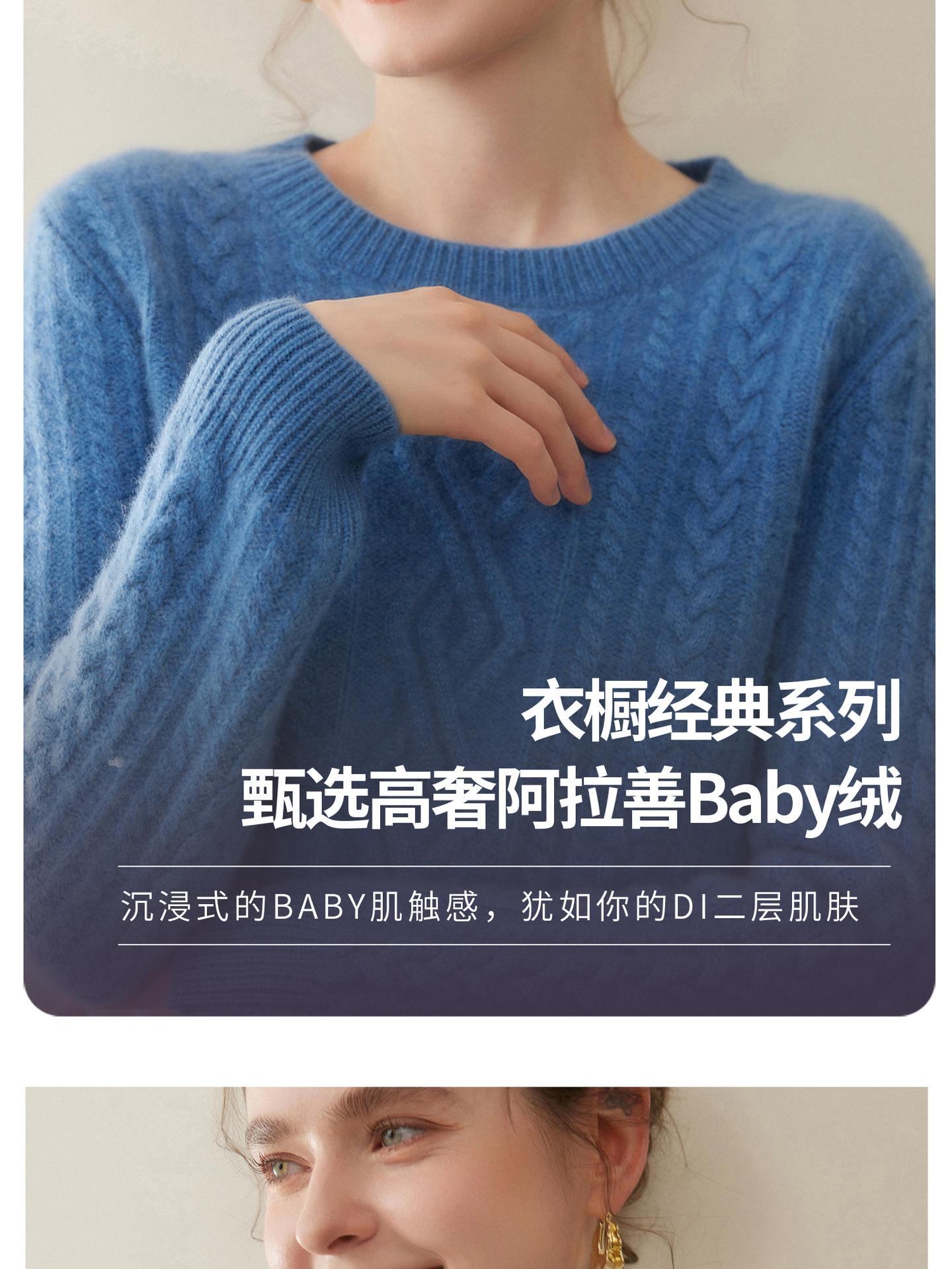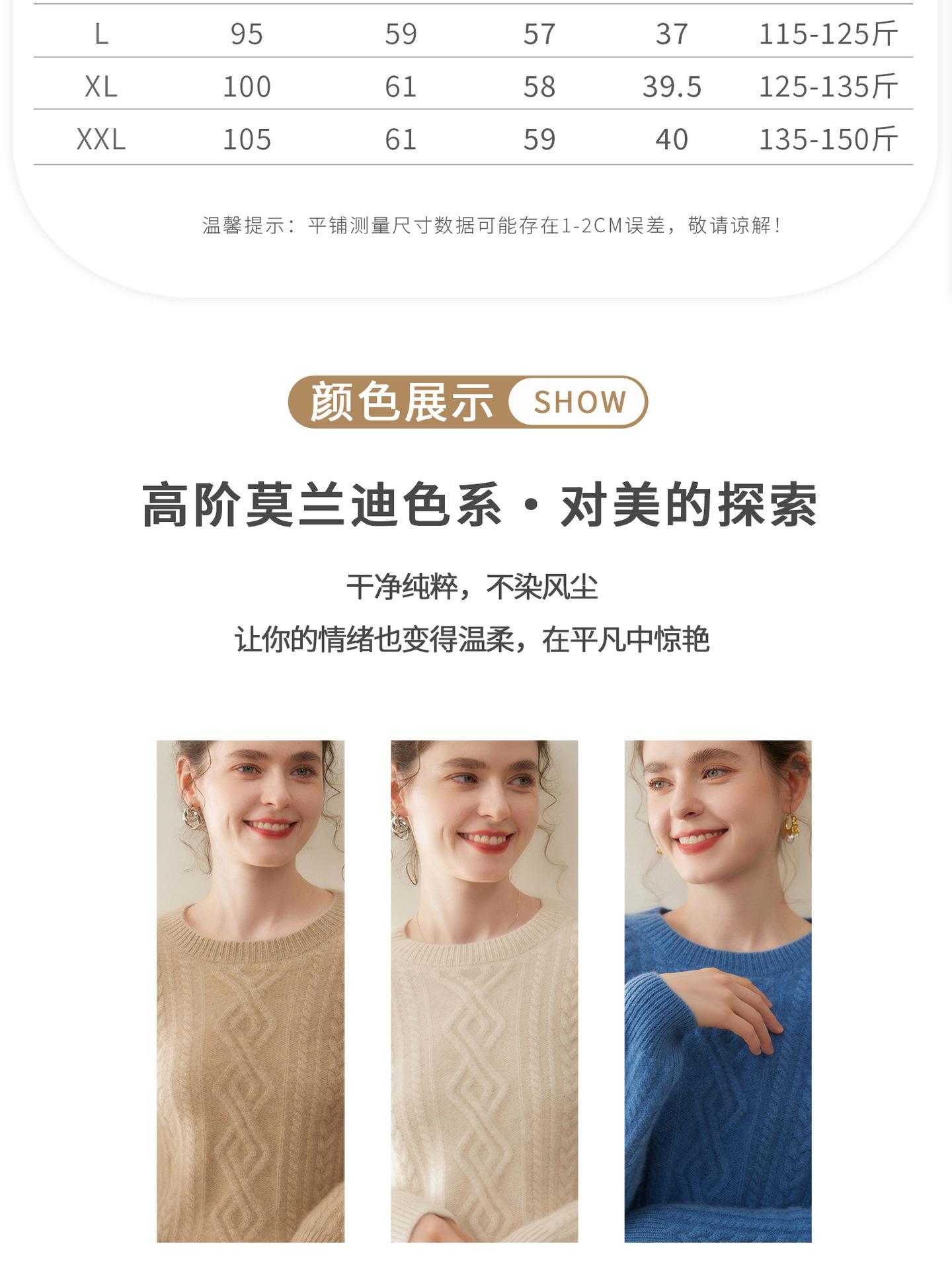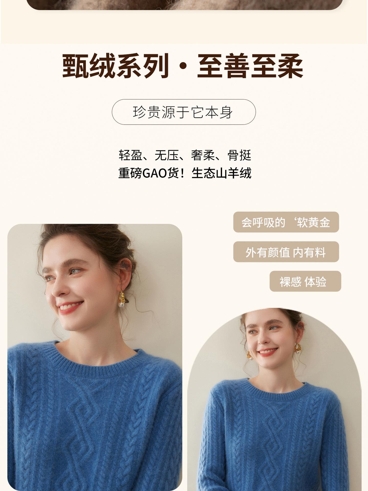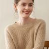 Suéter de Cachemira de Punto Trenzado de Cuello Redondo para Otoño e Invierno para Mujer, Jersey Holgado, Suéter Grueso Básico de Punto