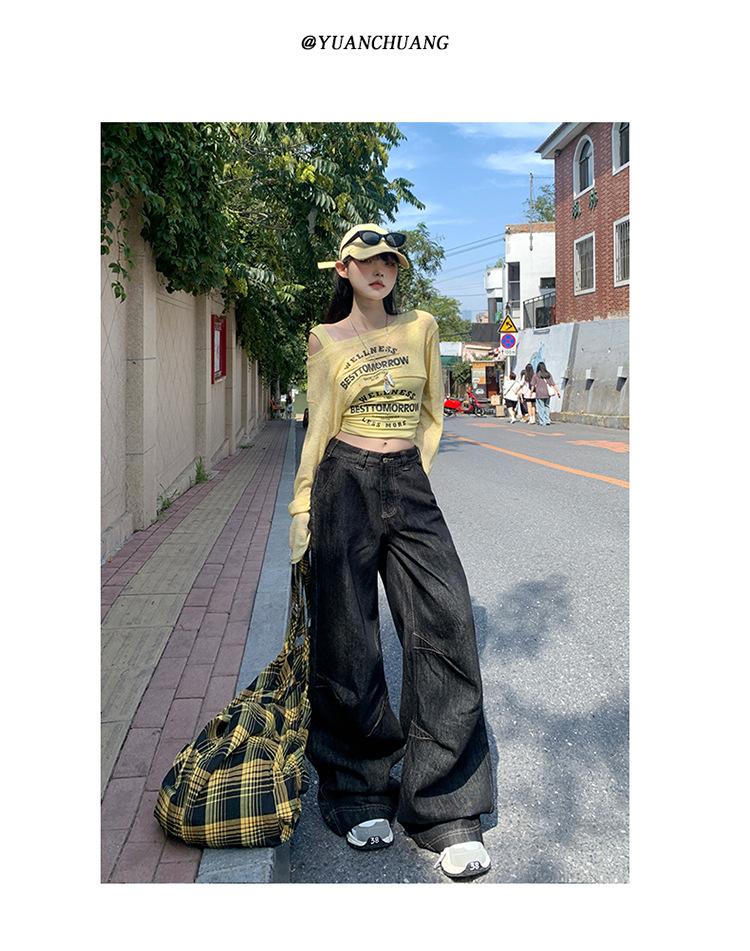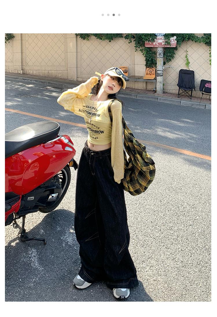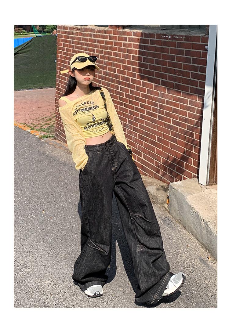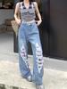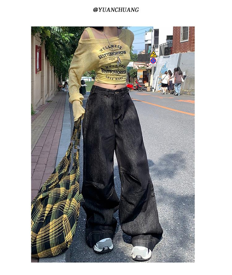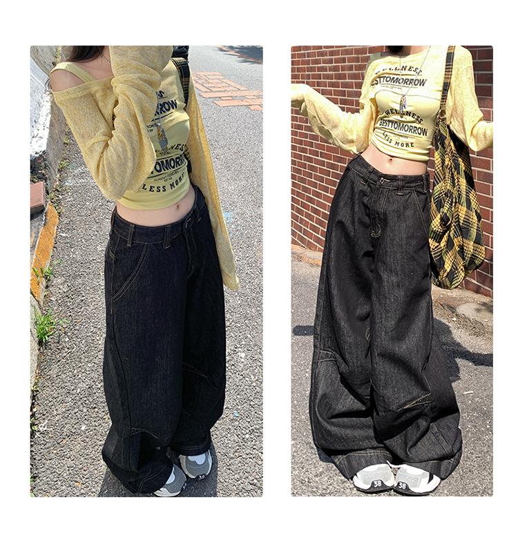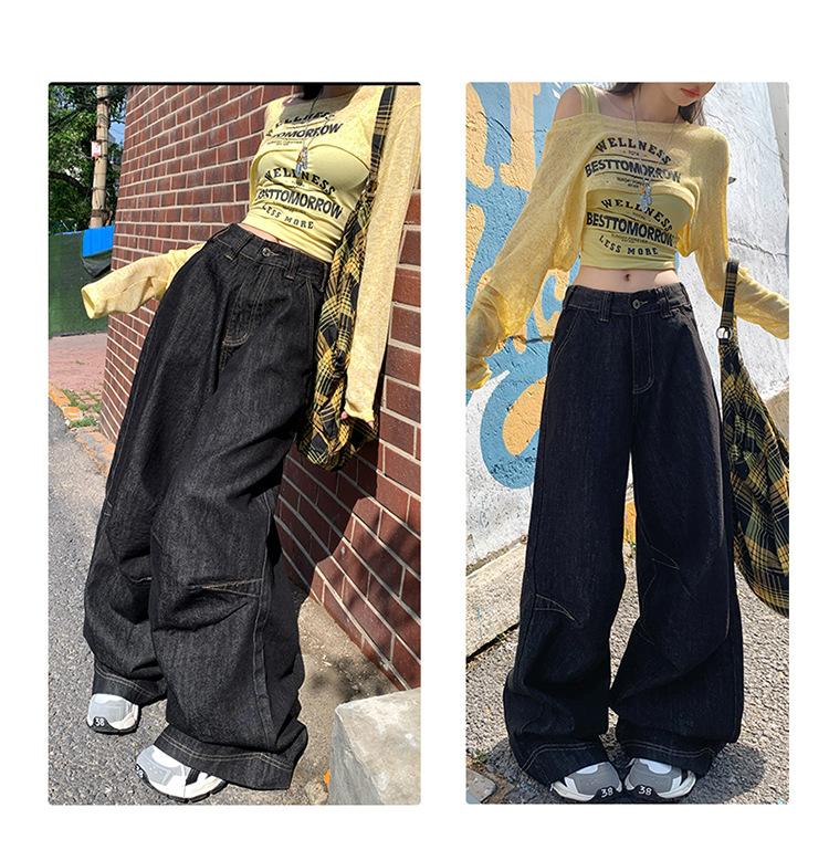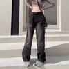 Pantalones de Pierna Ancha Holgados Cómodos de Cintura Baja Estilo Americano para la Calle Jeans Rectos de Nicho Alto Casual para Mujer Pantalones Largos