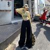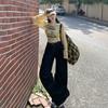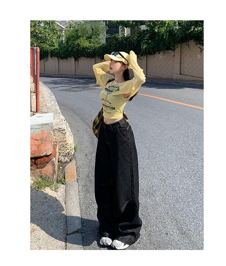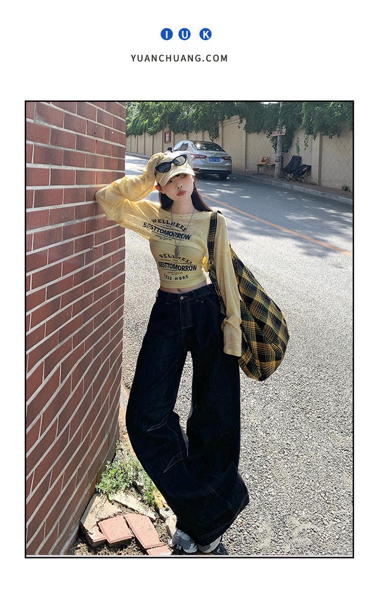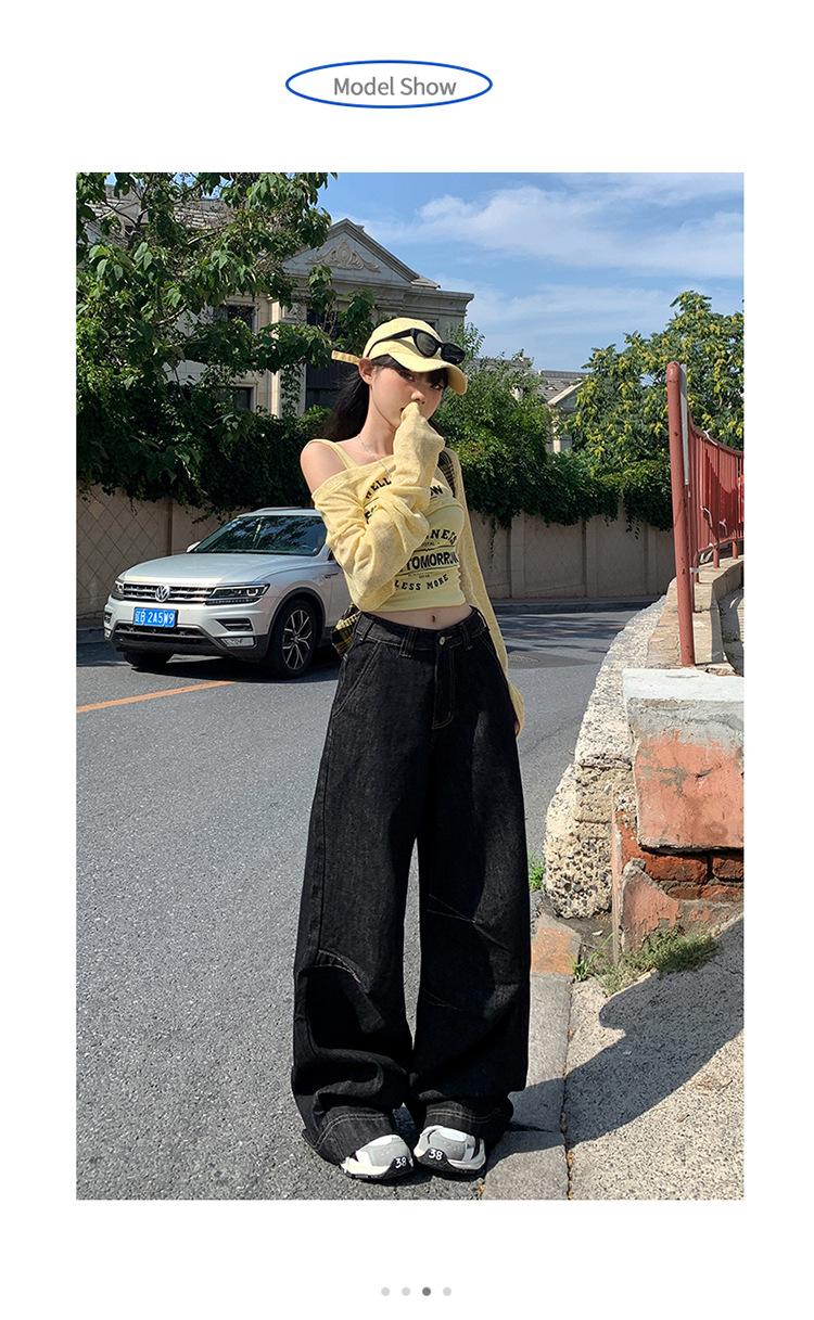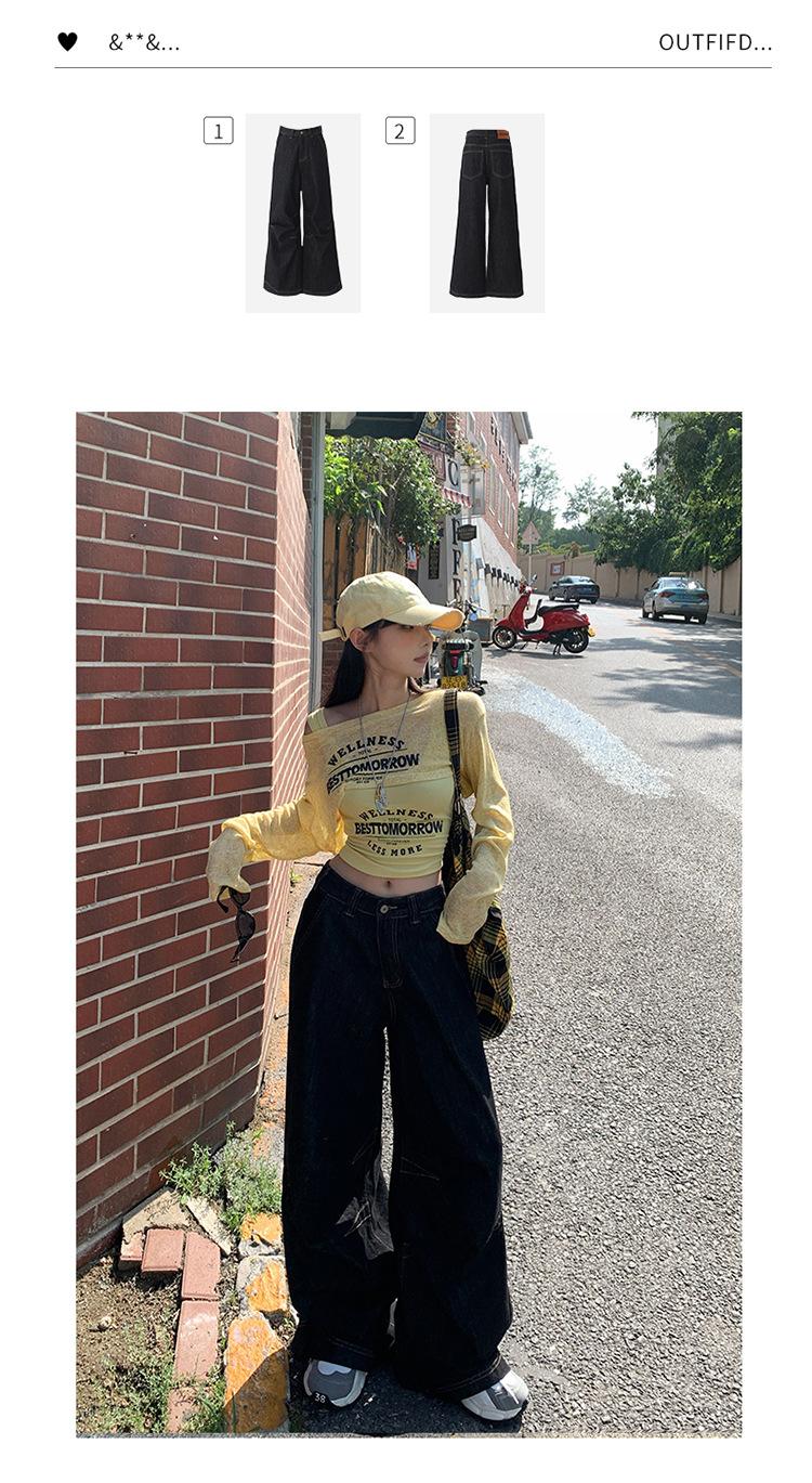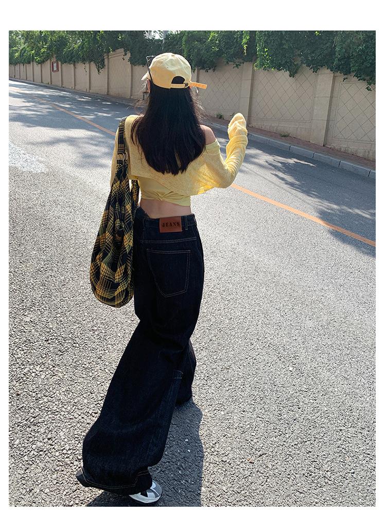 Pantalones de Pierna Ancha Holgados Cómodos de Cintura Baja Estilo Americano para la Calle Jeans Rectos de Nicho Alto Casual para Mujer Pantalones Largos
