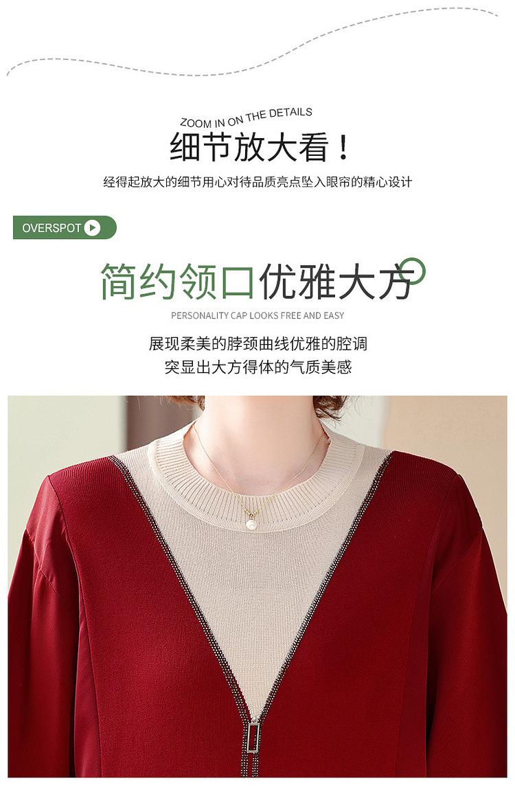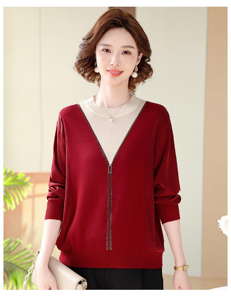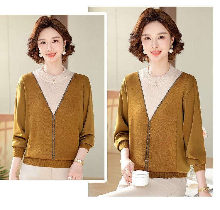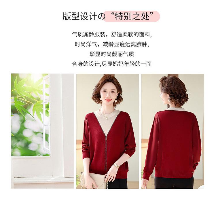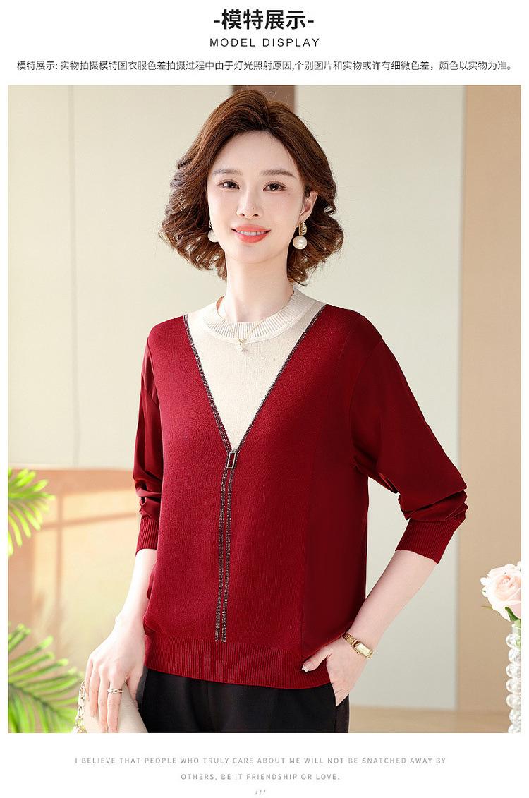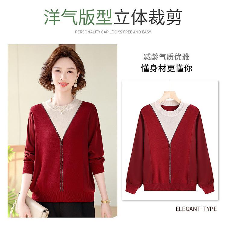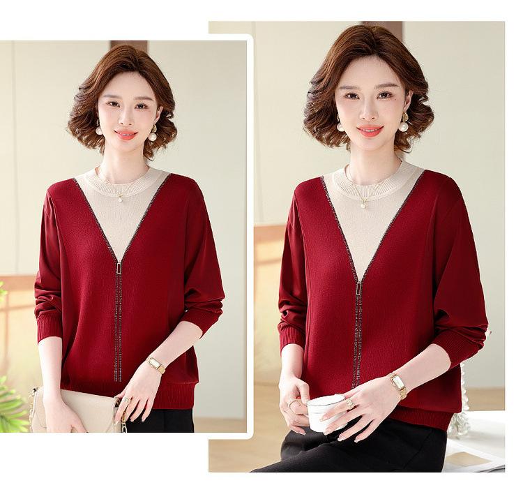 Camiseta de Primavera para Mamá Nueva Suéter de Punto para Mujeres de Mediana Edad y Mayores Cuello Redondo Delgado Manga Larga Suéter Suelto Top para Suegra