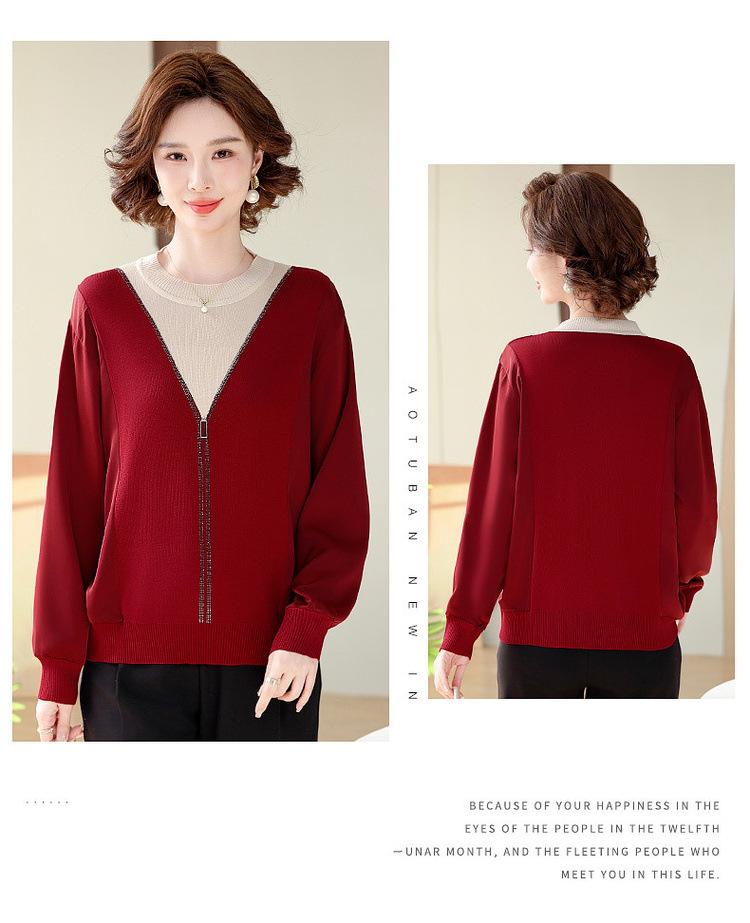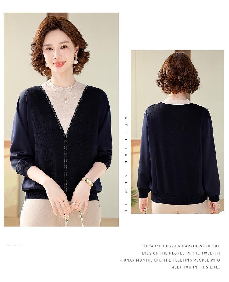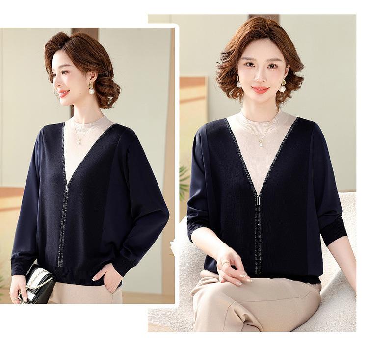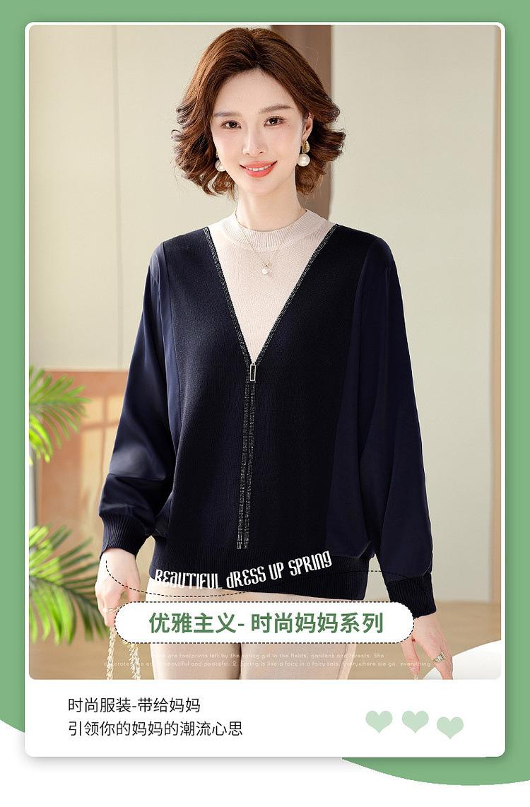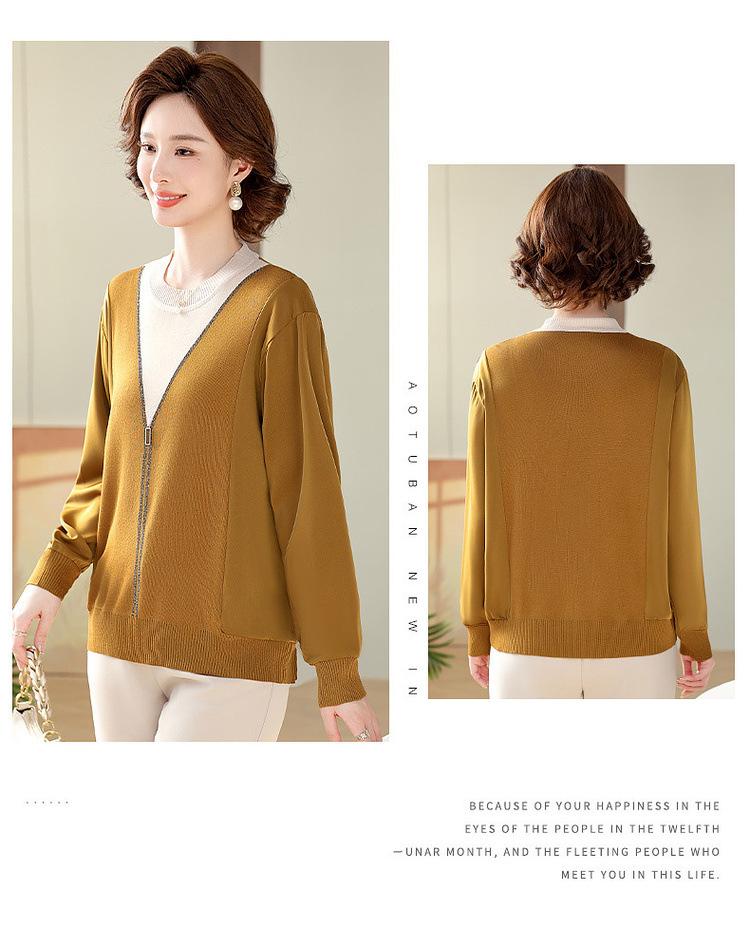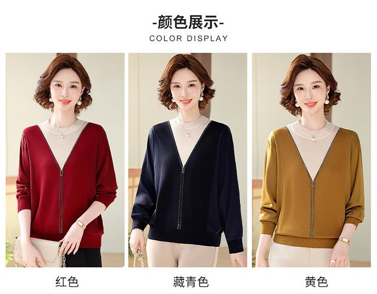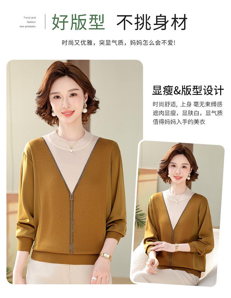 Camiseta de Primavera para Mamá Nueva Suéter de Punto para Mujeres de Mediana Edad y Mayores Cuello Redondo Delgado Manga Larga Suéter Suelto Top para Suegra