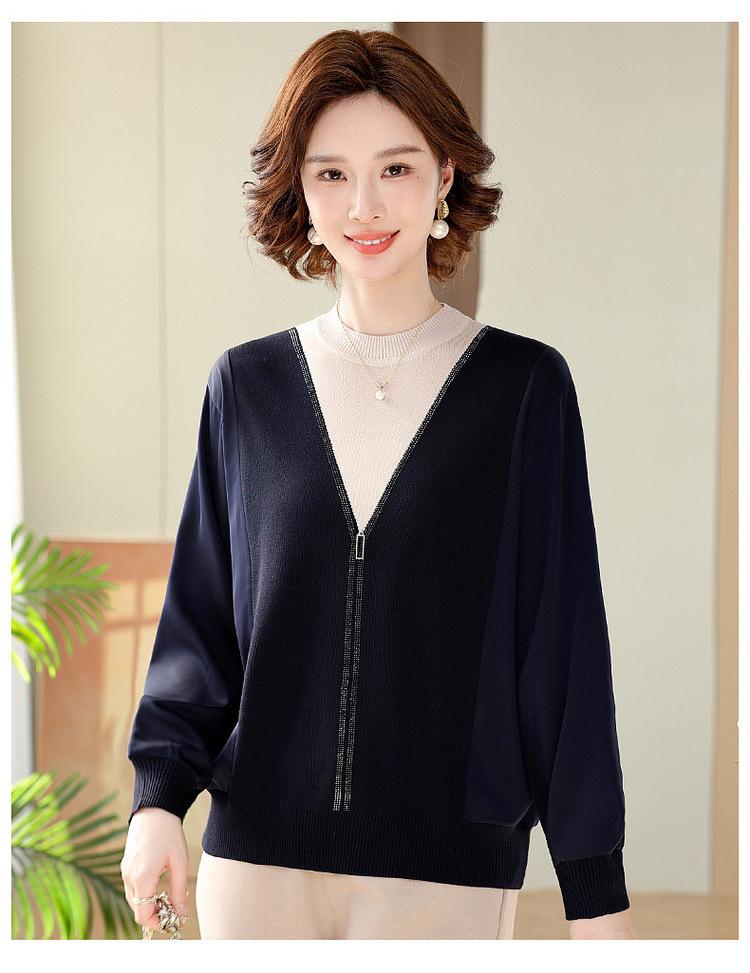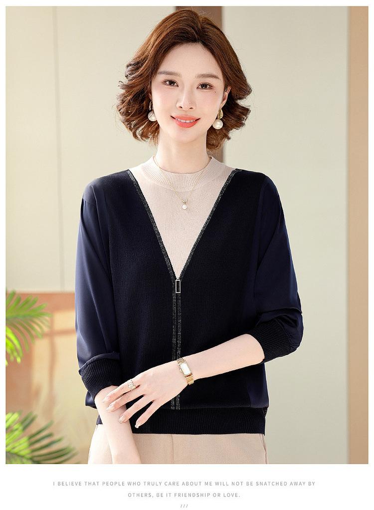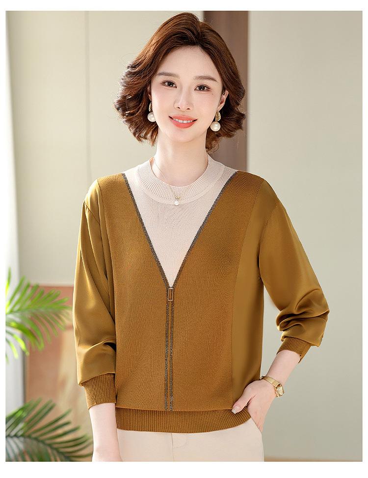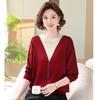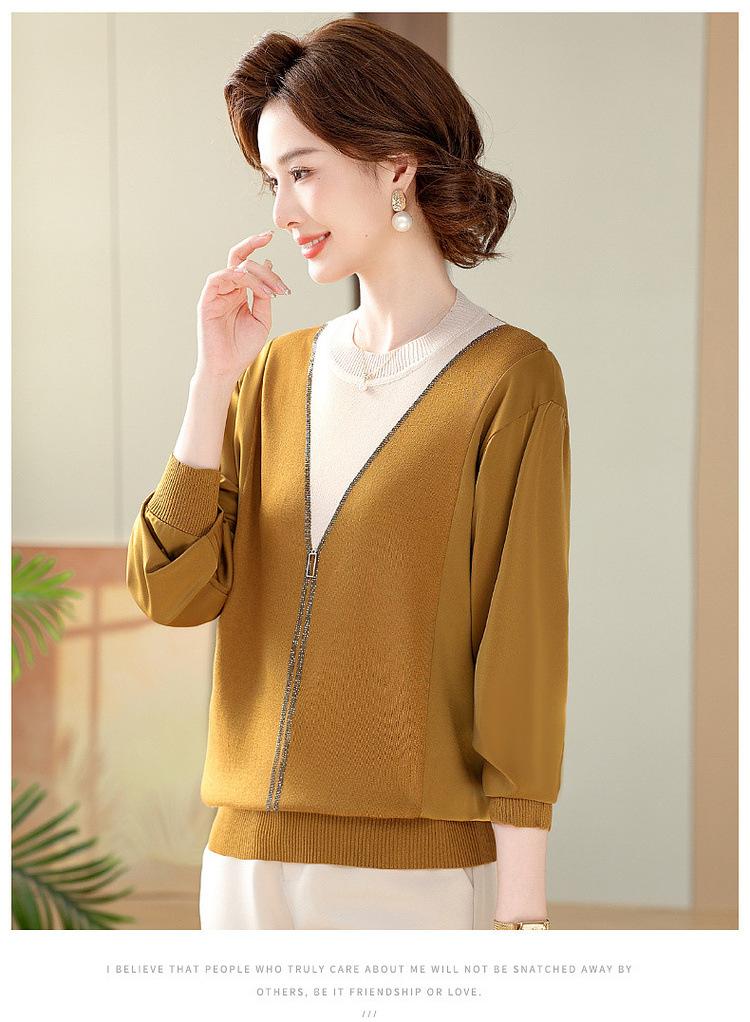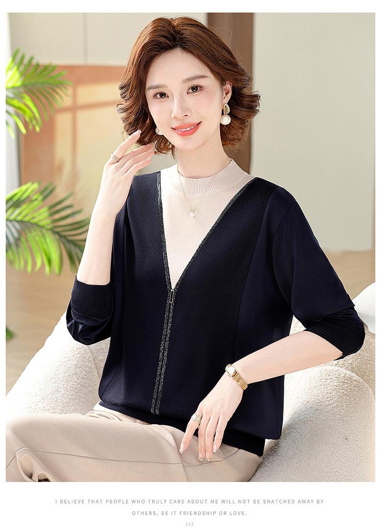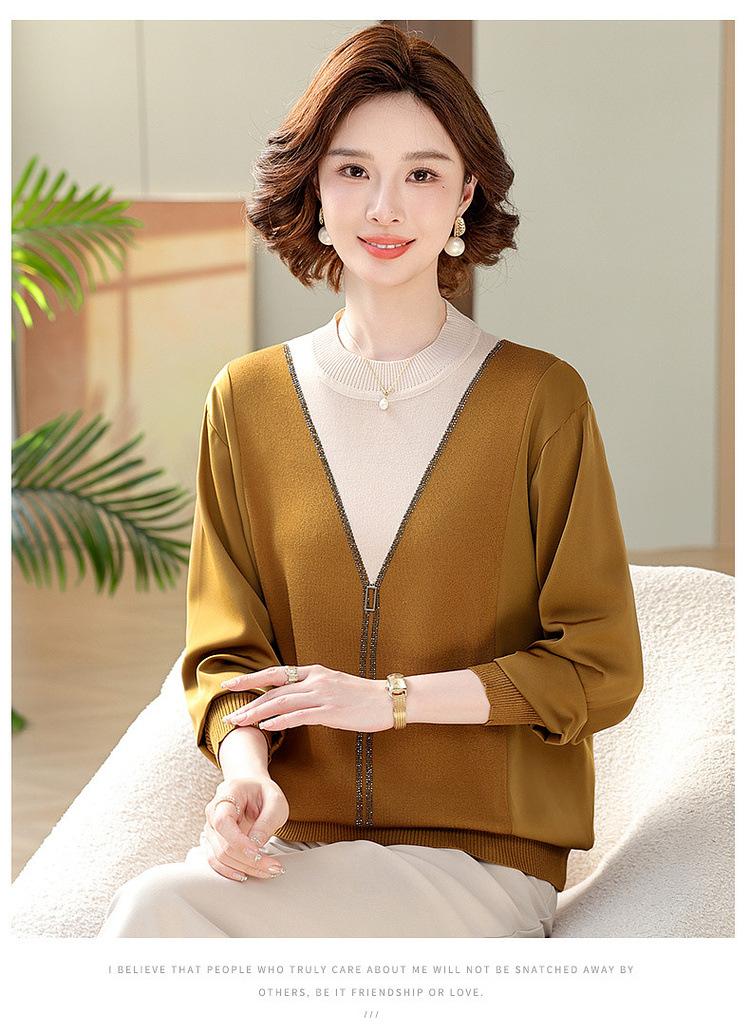 Camiseta de Primavera para Mamá Nueva Suéter de Punto para Mujeres de Mediana Edad y Mayores Cuello Redondo Delgado Manga Larga Suéter Suelto Top para Suegra