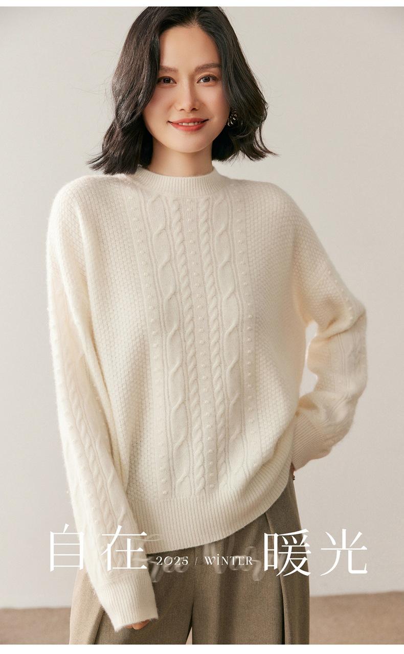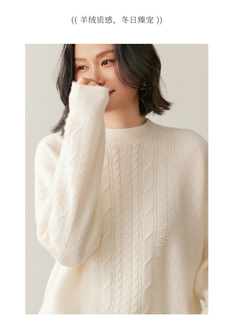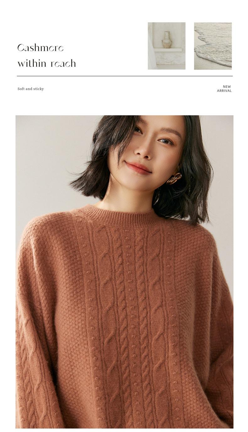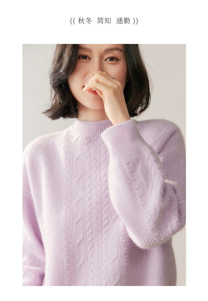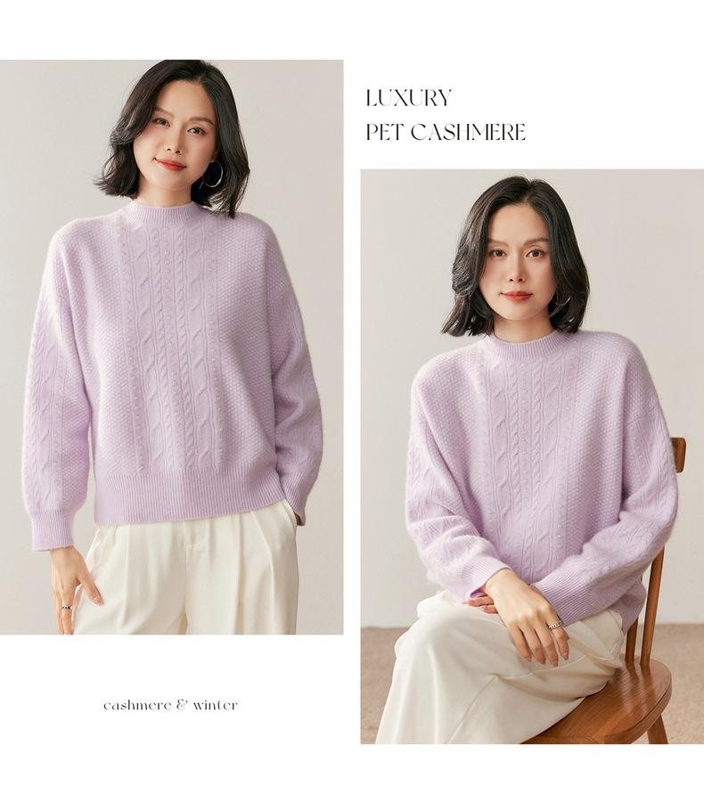 Nuevo Suéter de Cachemira de Otoño e Invierno para Mujer Cuello Medio Alto Tejido de Cable Suéter Grueso Estilo Elegante Suelto Adelgazante Camisa Base Corta