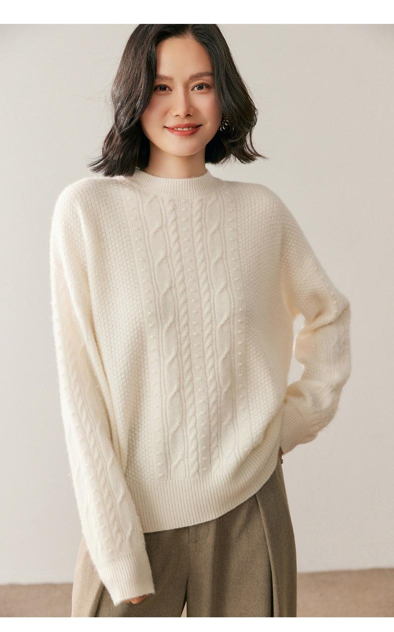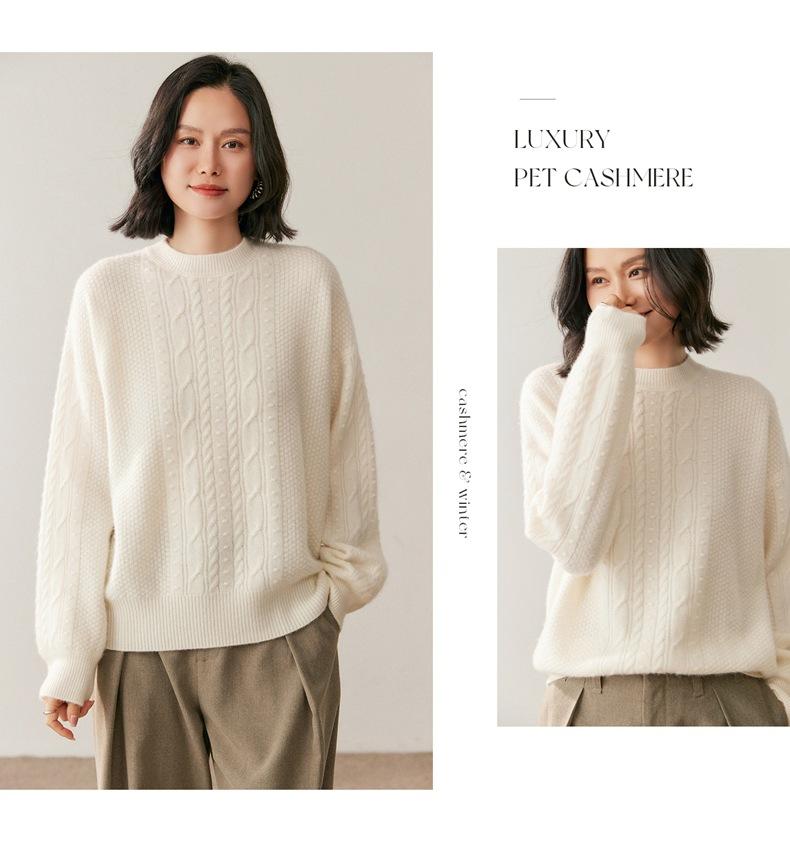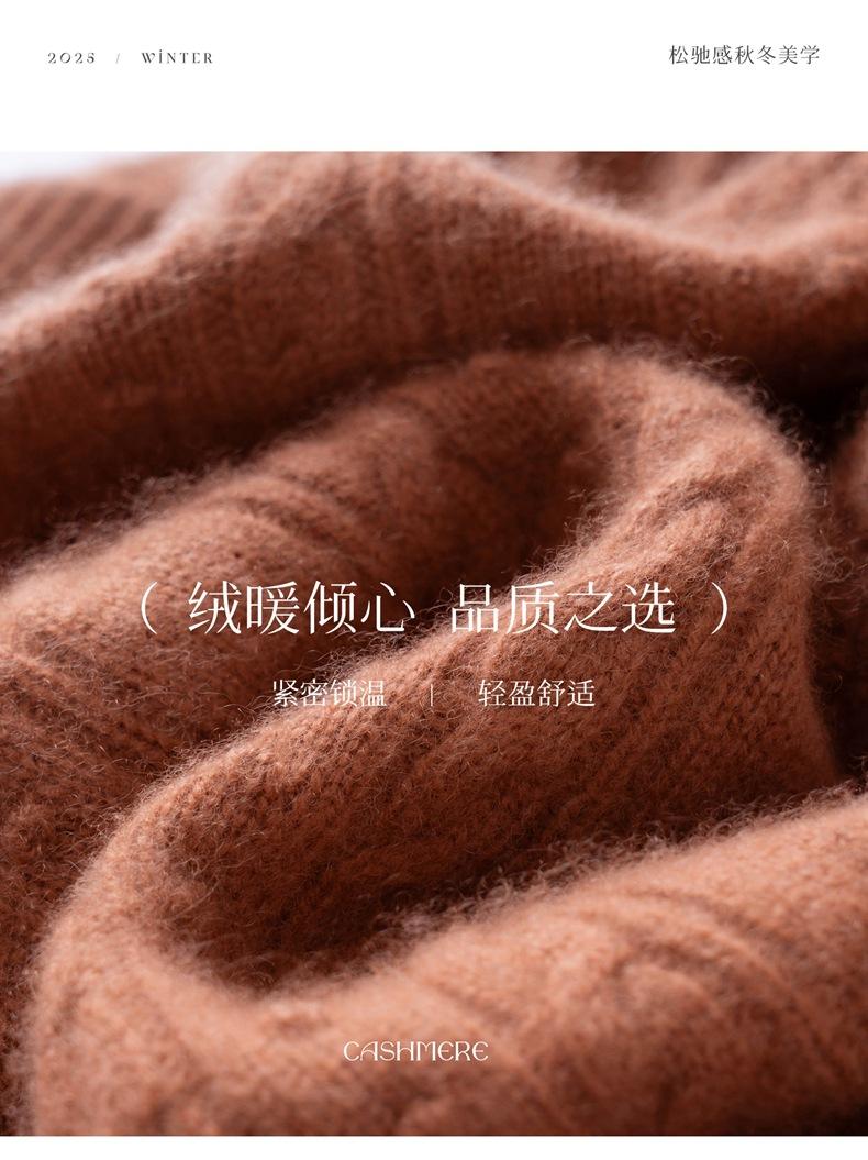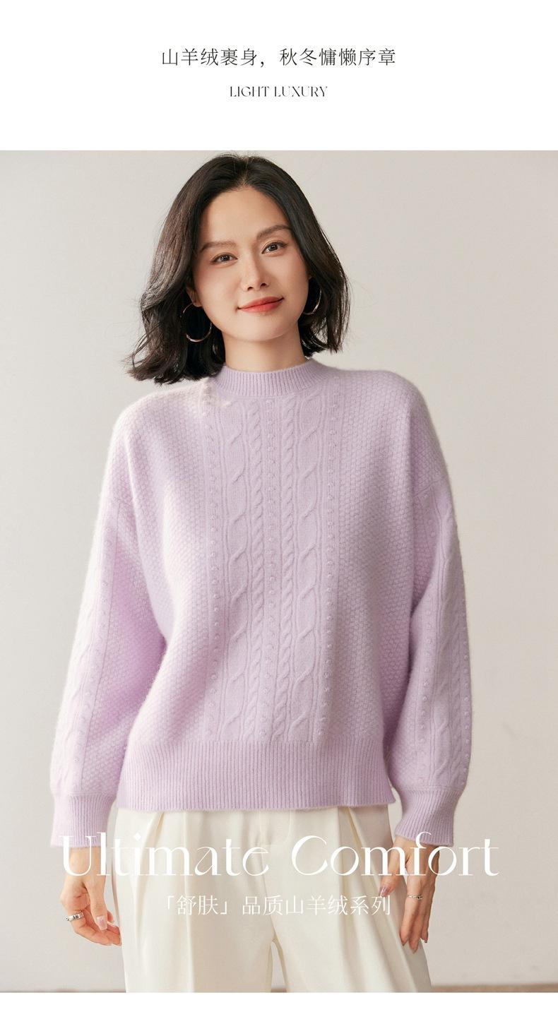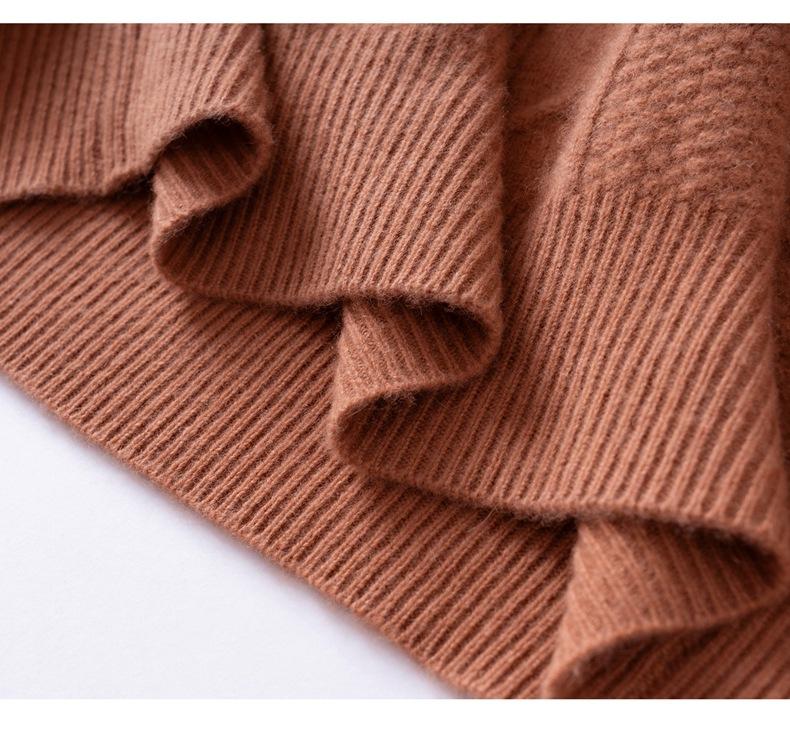 Nuevo Suéter de Cachemira de Otoño e Invierno para Mujer Cuello Medio Alto Tejido de Cable Suéter Grueso Estilo Elegante Suelto Adelgazante Camisa Base Corta