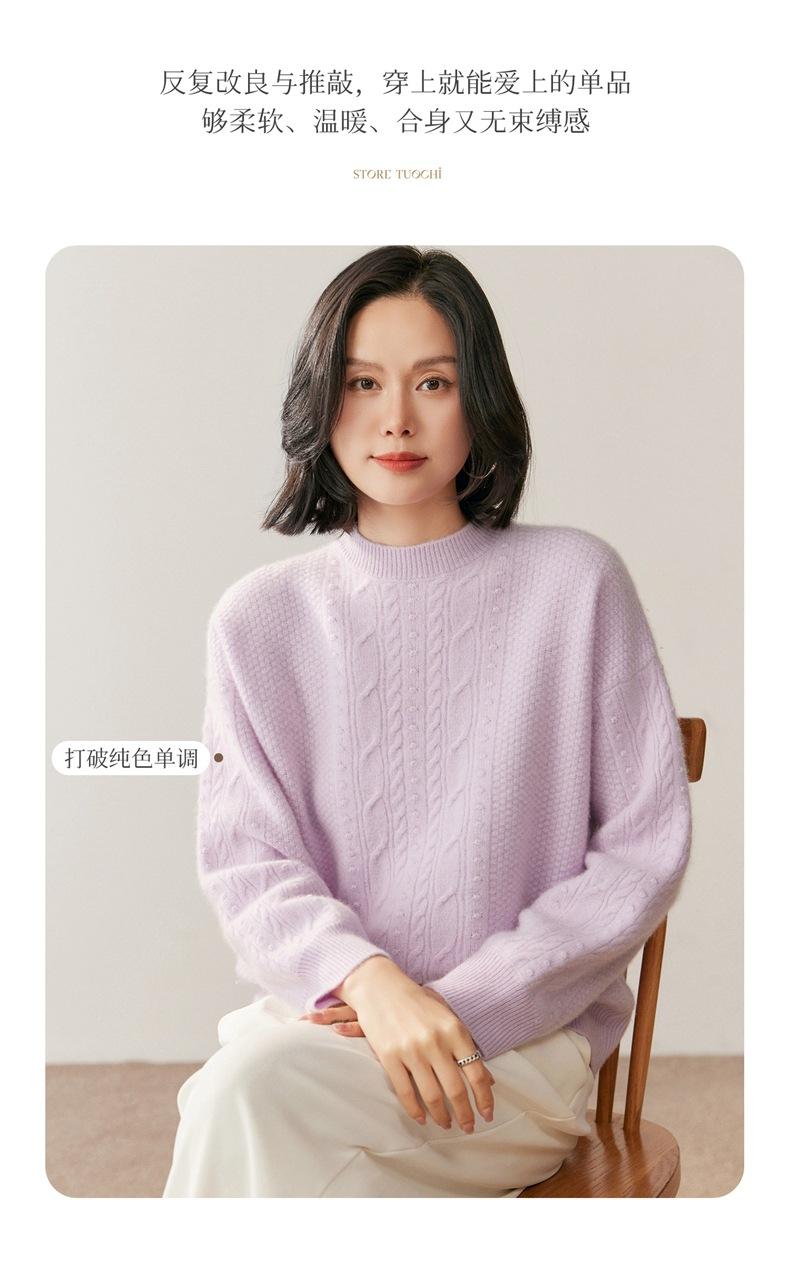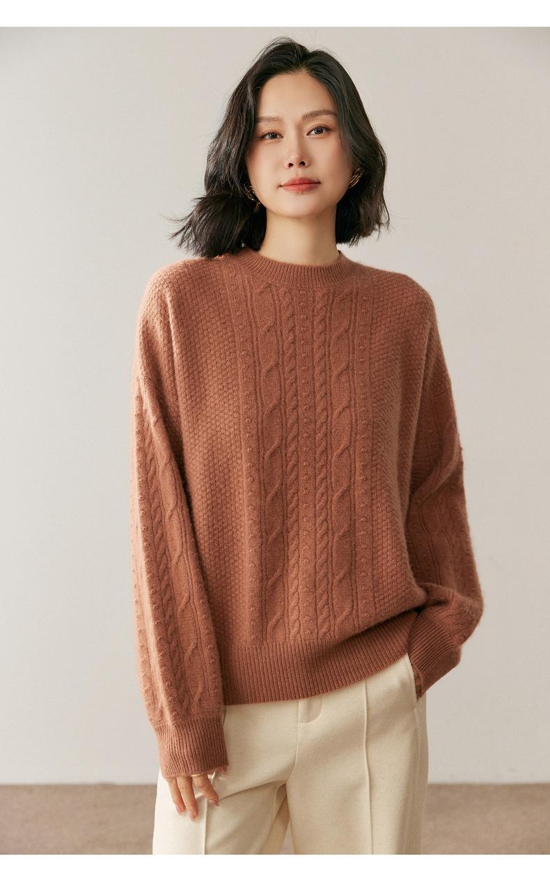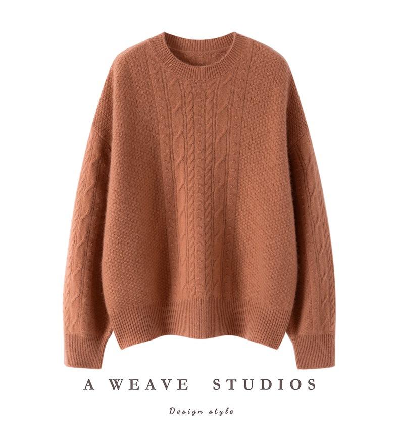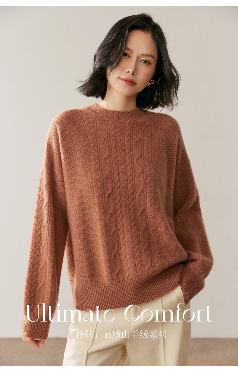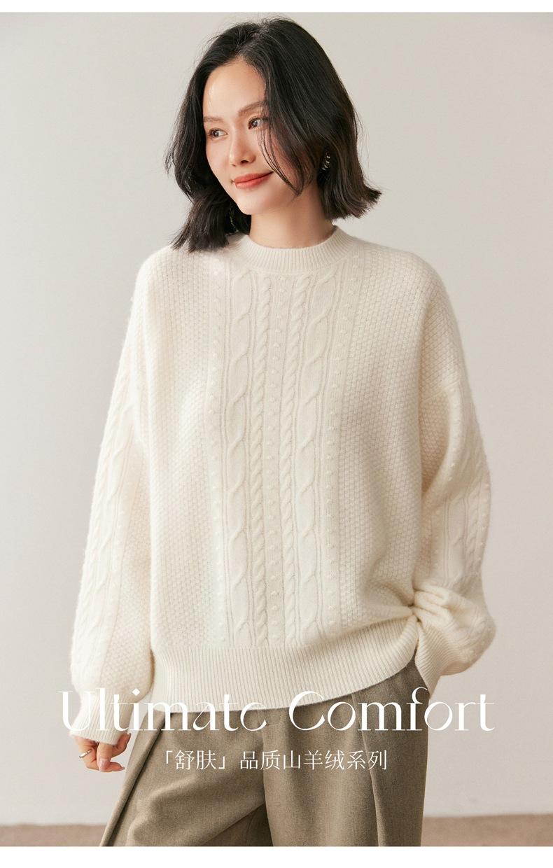Nuevo Suéter de Cachemira de Otoño e Invierno para Mujer Cuello Medio Alto Tejido de Cable Suéter Grueso Estilo Elegante Suelto Adelgazante Camisa Base Corta